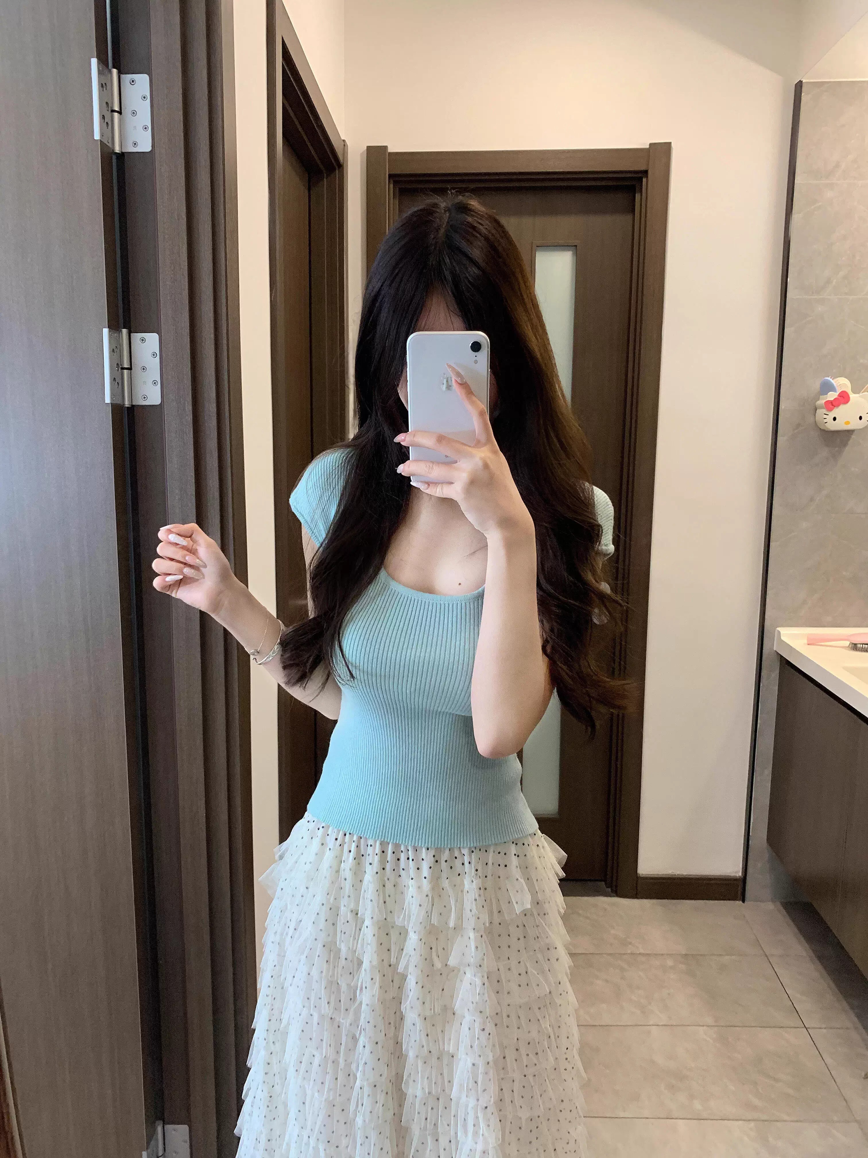 실사 정가 새로운 프랑스식 부드러운 바람 고급 계층의 감각 도트 무늬 대 치마 반신 롱 스커트