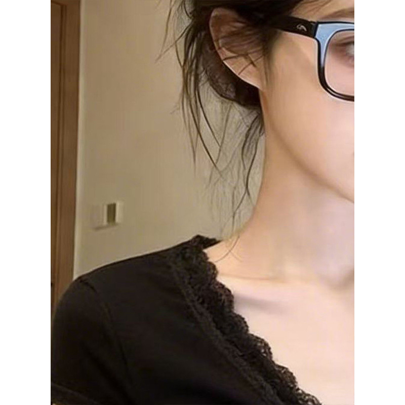 실사 소녀 블루 알파벳 자수 반팔 니트 새로운 긍정적 인 어깨 V넥 고유 한 아름다운 그레이트 봐. 의류 chic