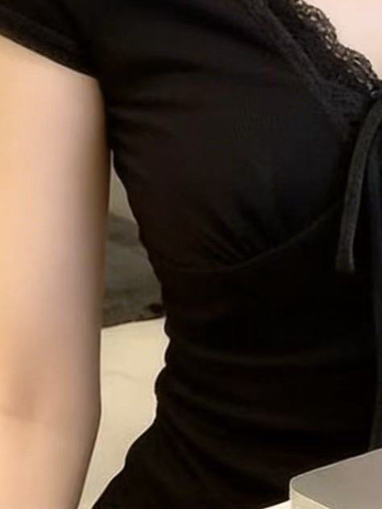 눈꽃 면 복합 레이스 2026 여름 새로운 한국 스타일 반팔 티셔츠 여성 디자인