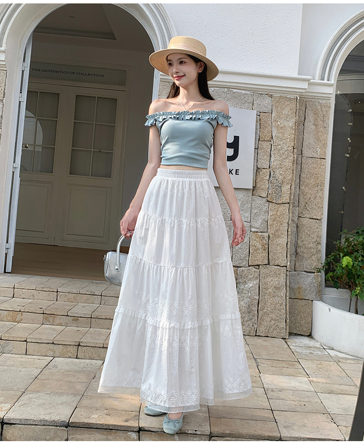 우아한 큰 진자 주름 질감 센스 망사 반신 스커트 여성 여름 얇은 스타일 패션 한 마디 프릴 케이크 드레스
