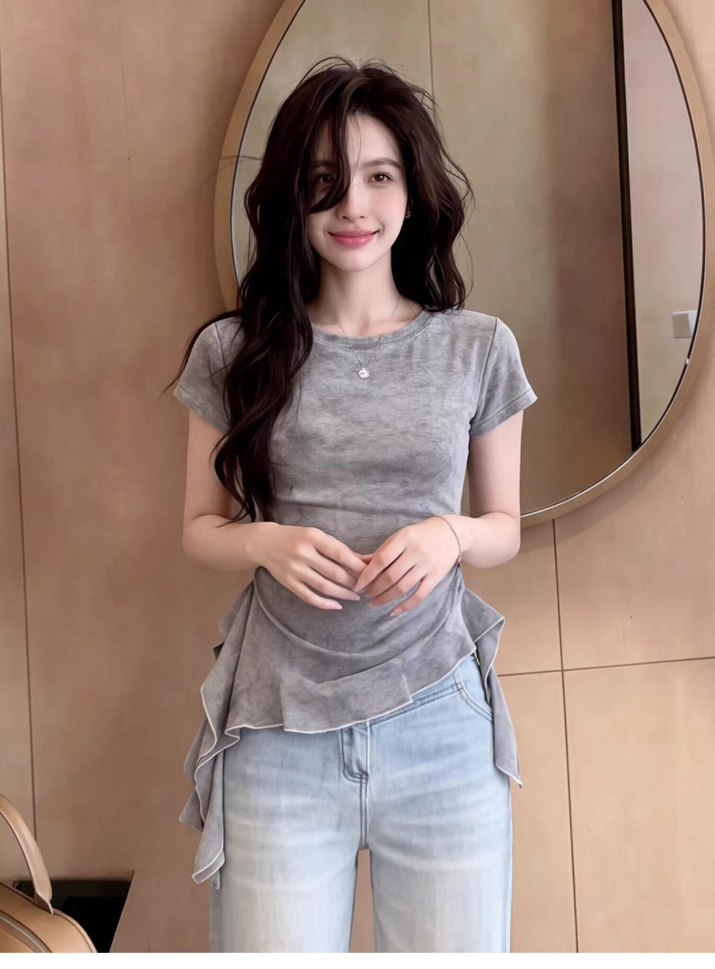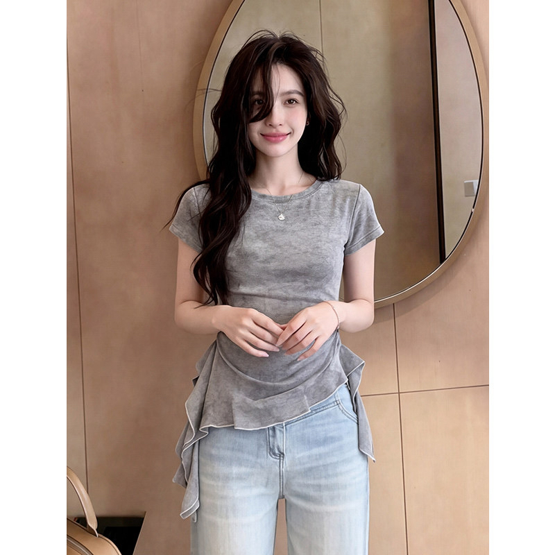 눈꽃 면 복합 레이스 2026 여름 새로운 한국 스타일 반팔 티셔츠 여성 디자인