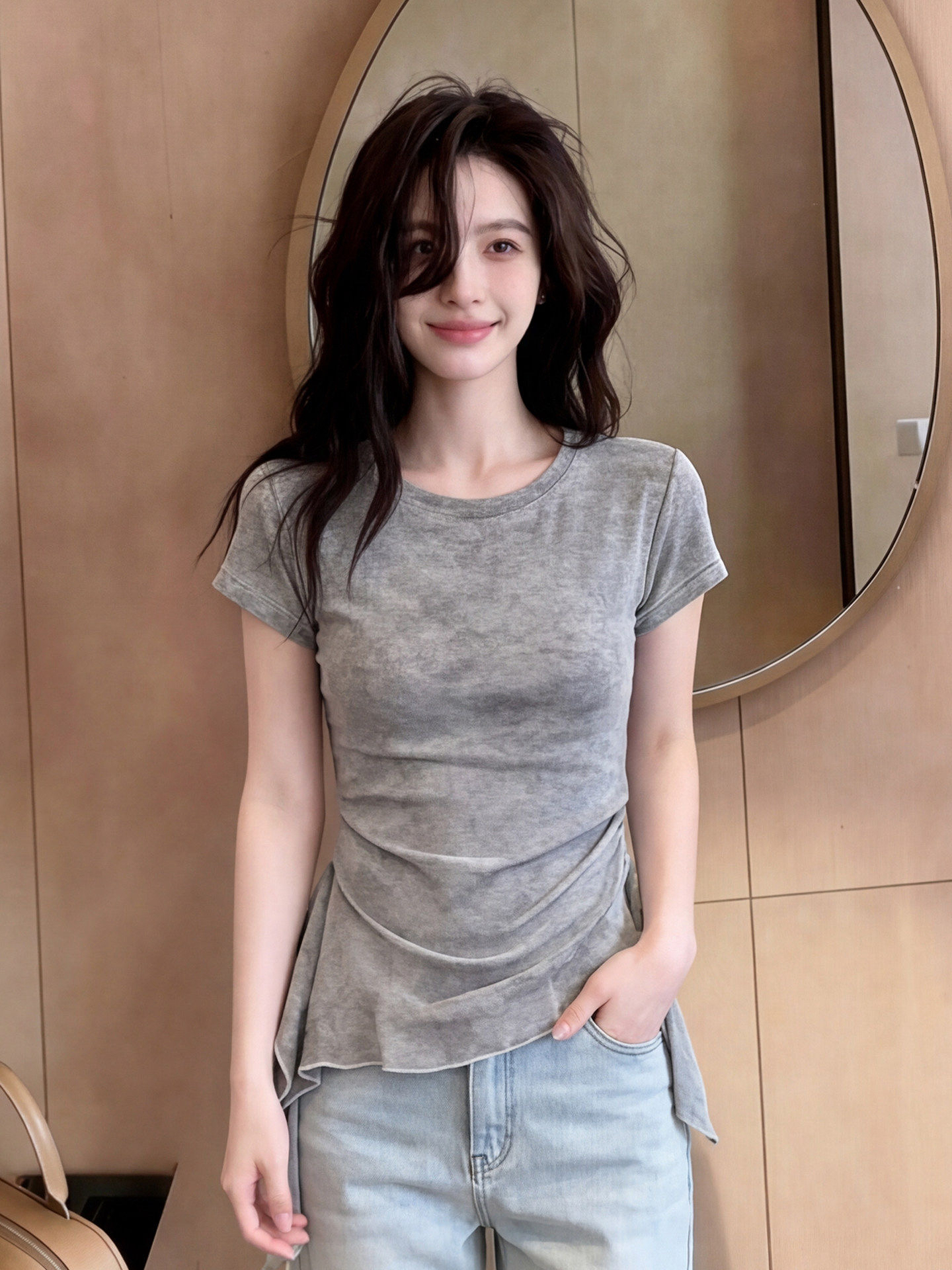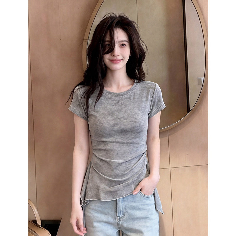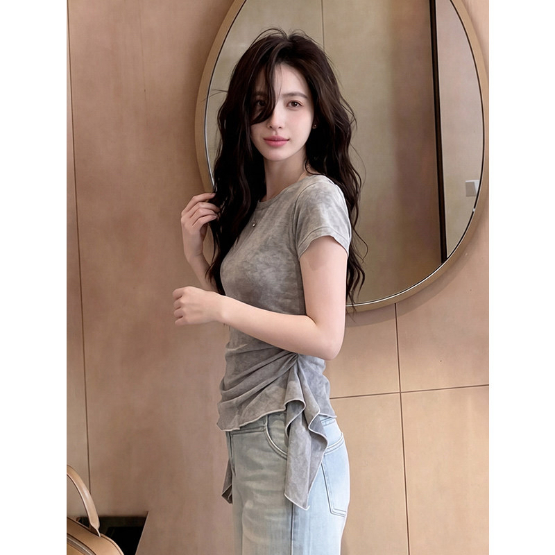 200그램 95 면 5 암모니아 Lun 2026 여름 새로운 한국 스타일 반팔 티셔츠 여성 디자인 센스