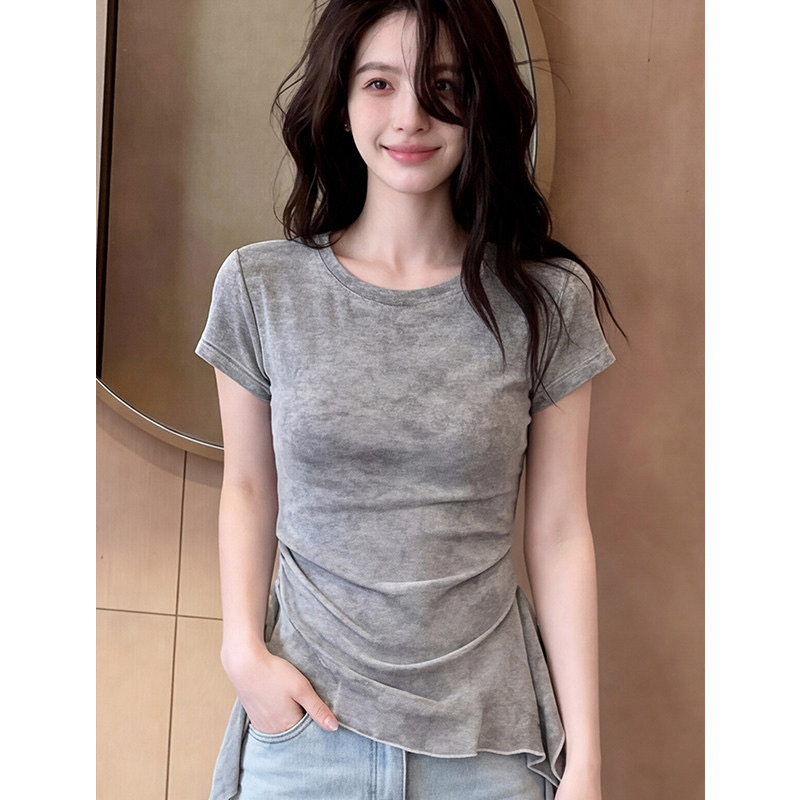 165 그램 눈꽃 면 2026 여름 새로운 한국 스타일 반팔 티셔츠 여성 디자인 센스
