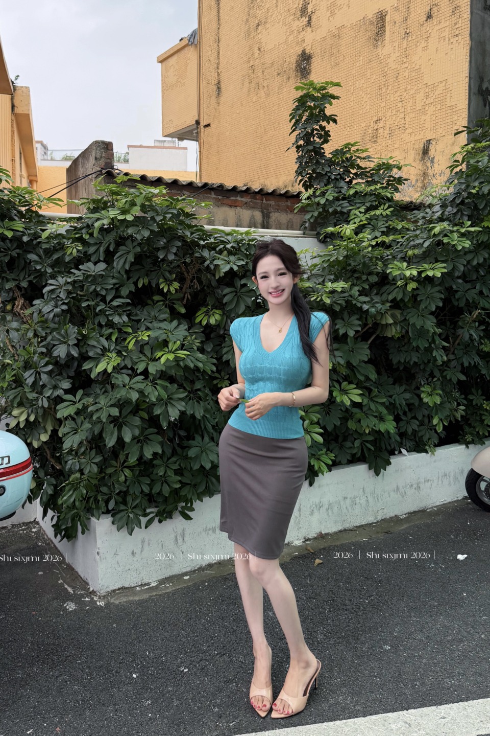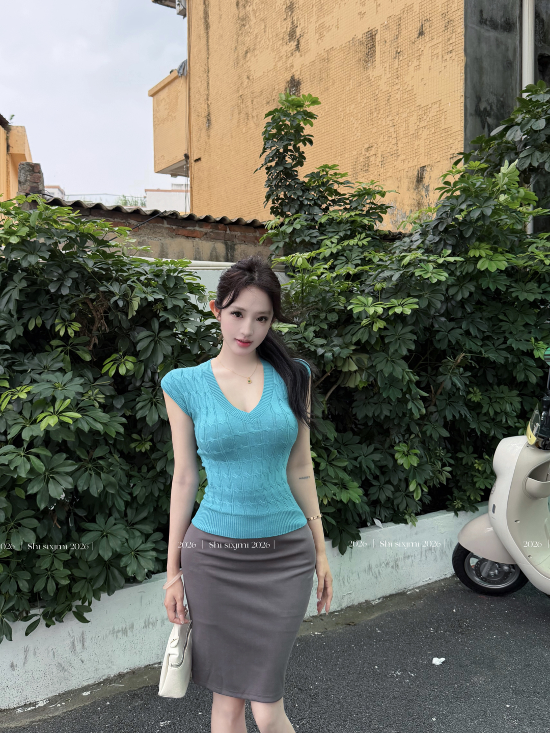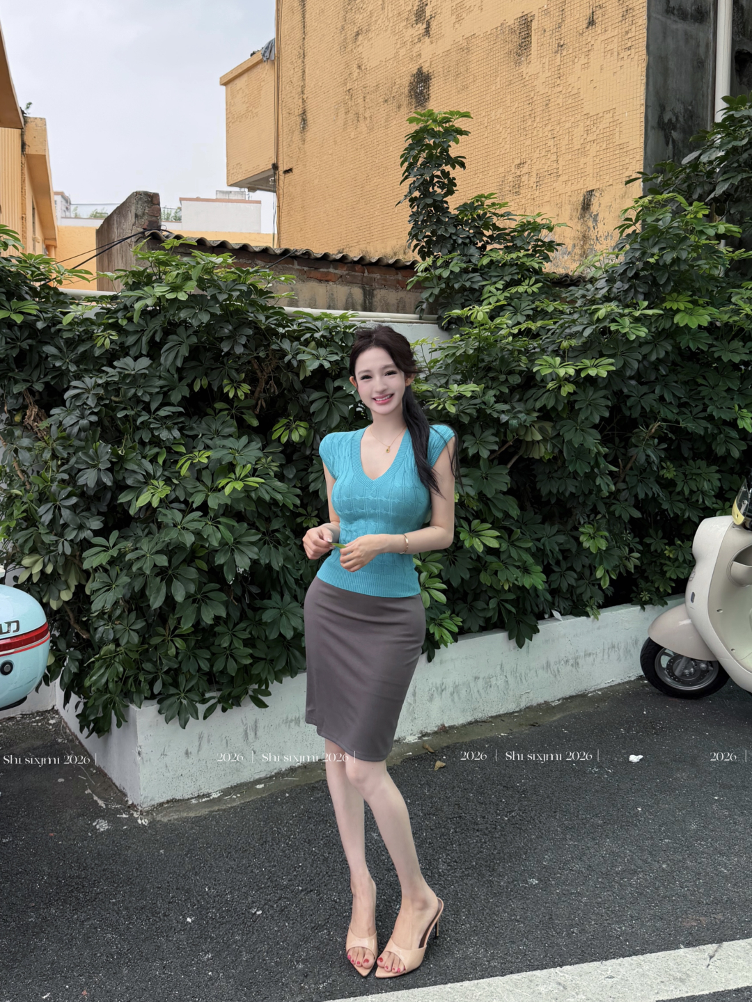 실사 정가 고전 오래된 꿈 라이 경기 서울 V넥 작은 날다 소매 여성 드레스 봄 여름 몸매 가꾸기 인어 꼬리 스커트