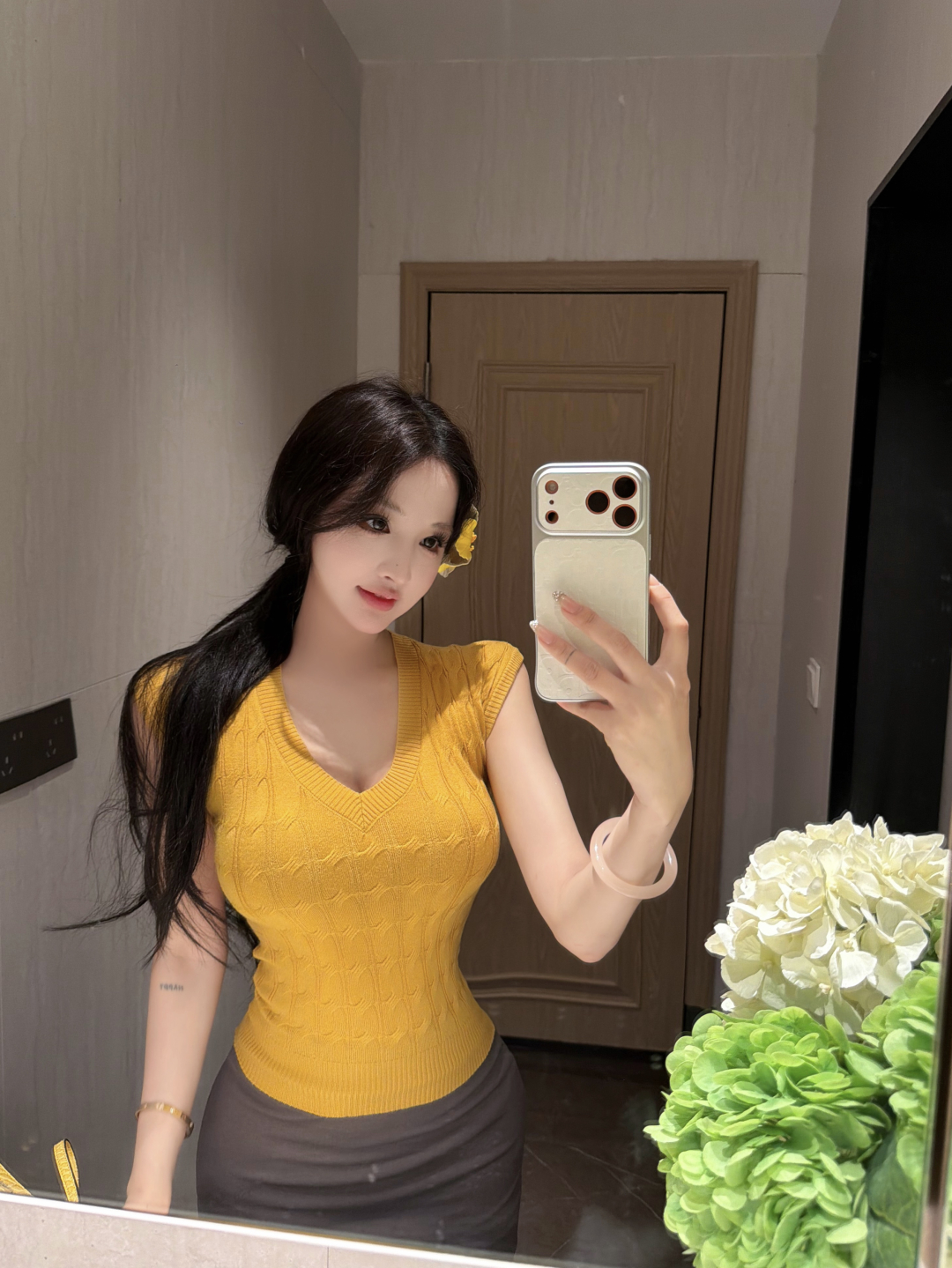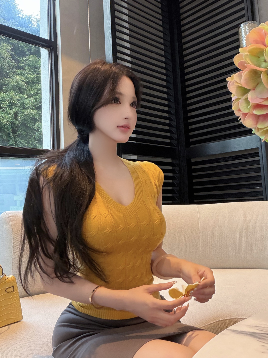 실사 정가 주간 실크 아마 자외선 차단 긴팔 여성 셔츠 라미 반신 스커트 여성 봄 여름 다용도 A라인 스커트