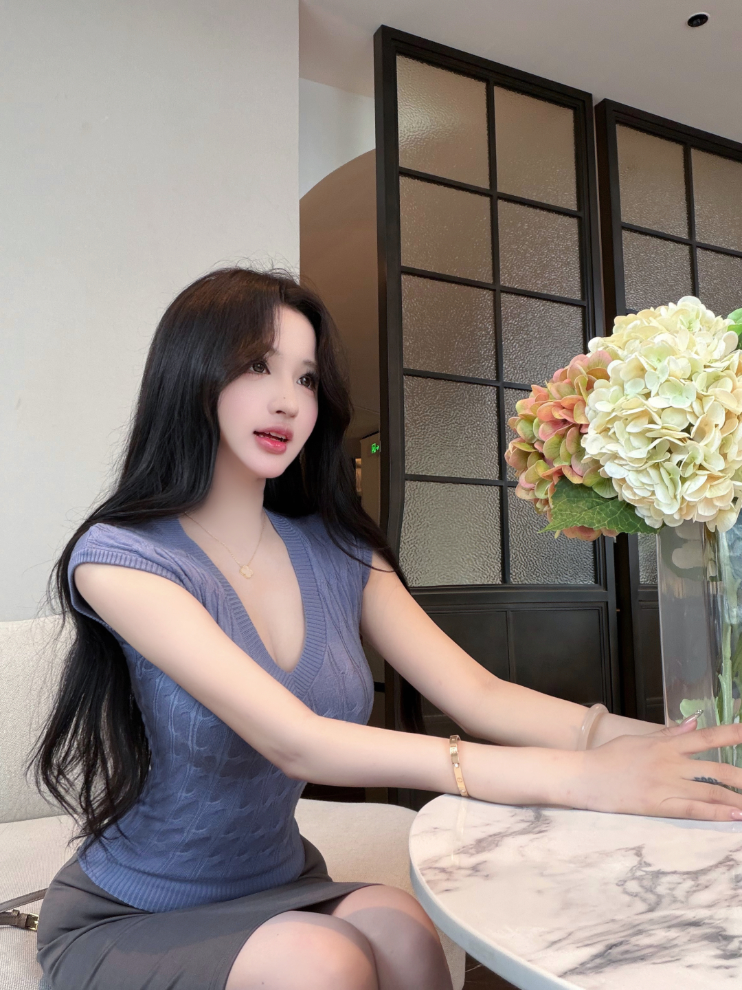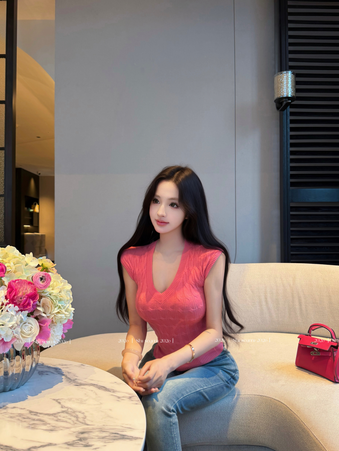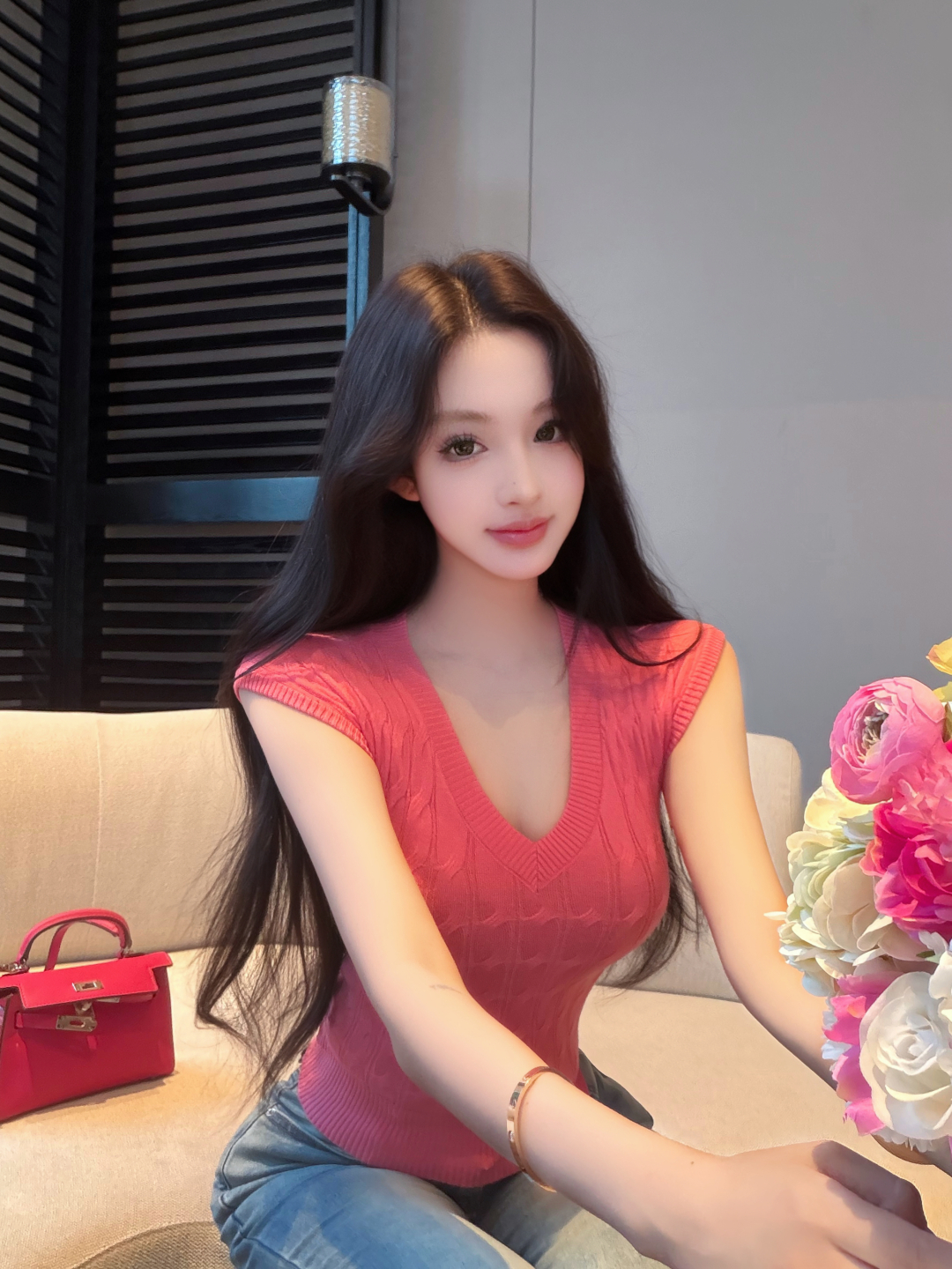 실사 정가 이슬 실크 착용 가져 가라. 시스루 홀로우 아웃 V넥 긴팔 자외선 차단 블라우스 명중 가져 가라. V넥 슬립 드레스