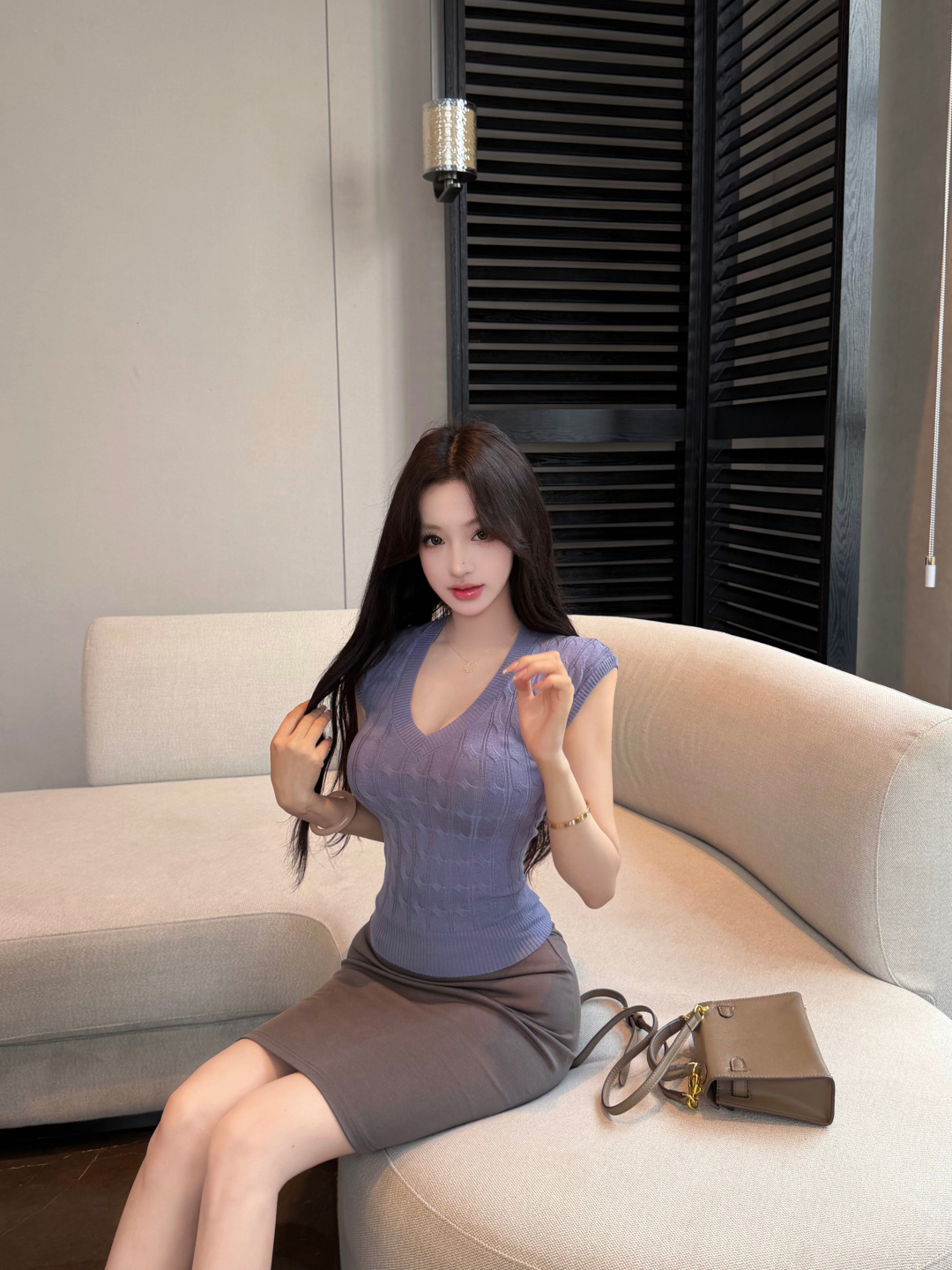 실사 정가 품격 섹시함 니트 오픈 가디건 레이스 두 조각 여성 세트 드레스