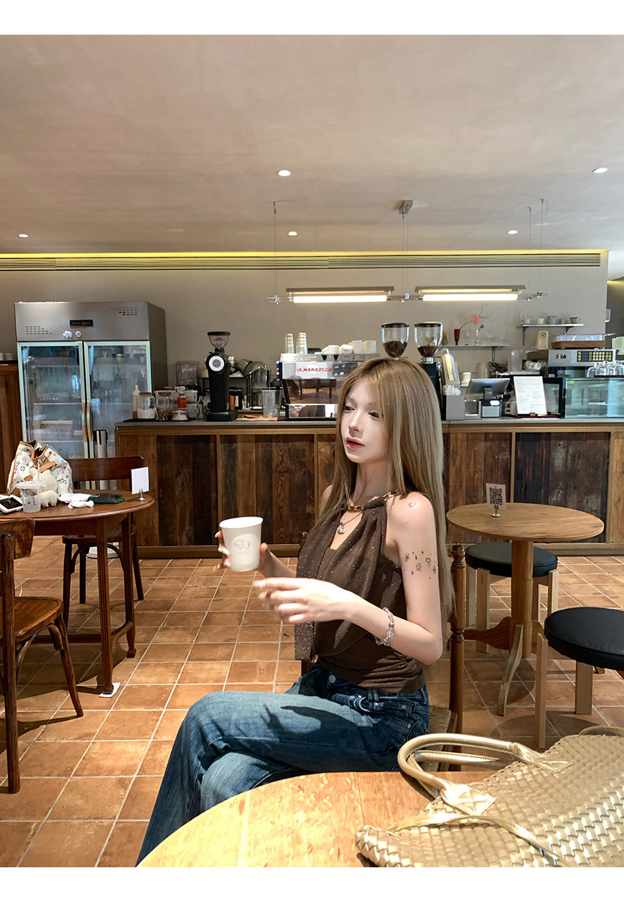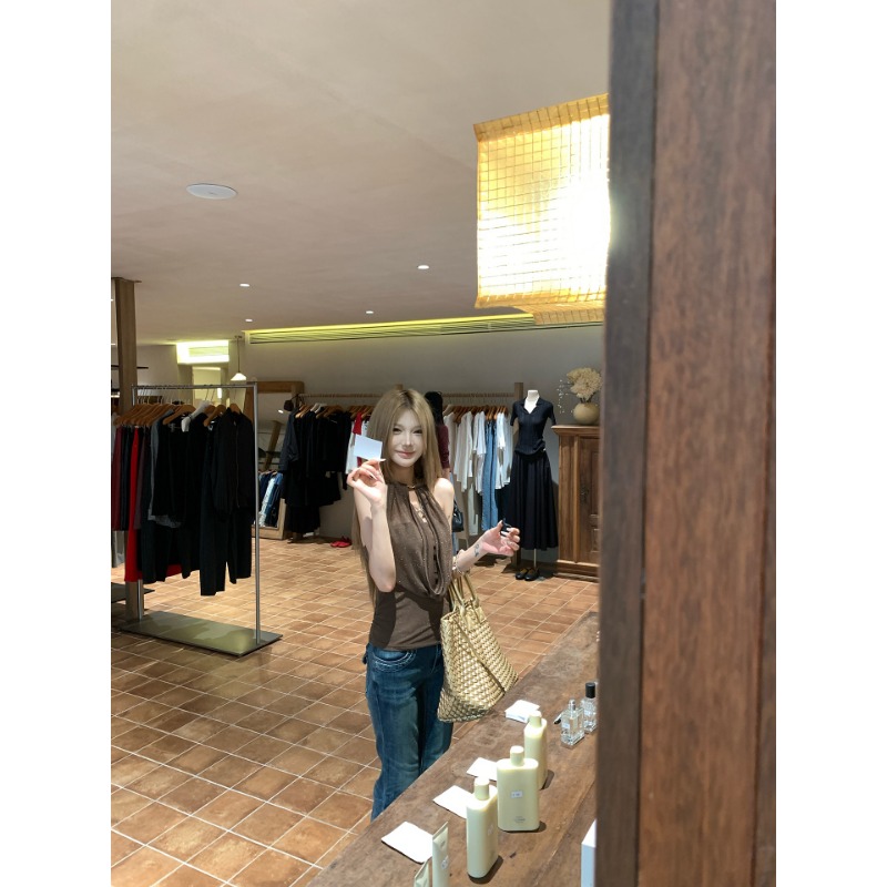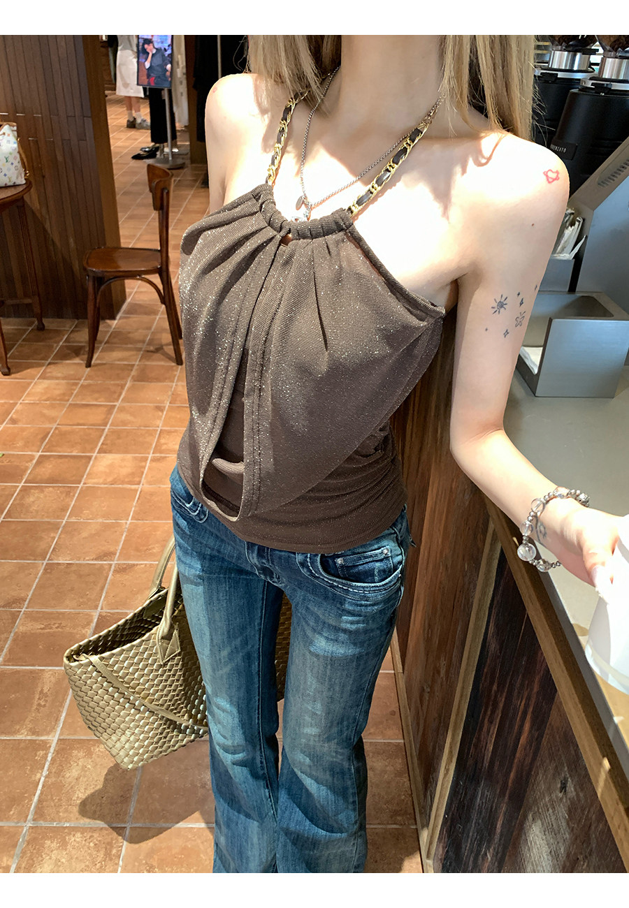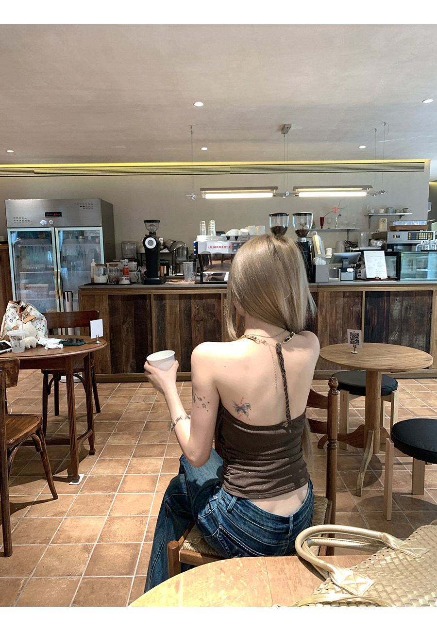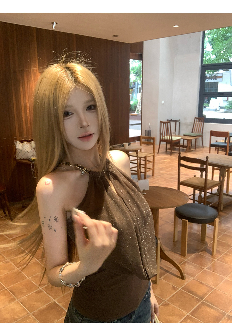 원본 솜씨 원단 캐미솔 여름 핫걸 착용 가져 가라. 백리스 민소매 흔들다 칼라 행침 목 민소매 맨위