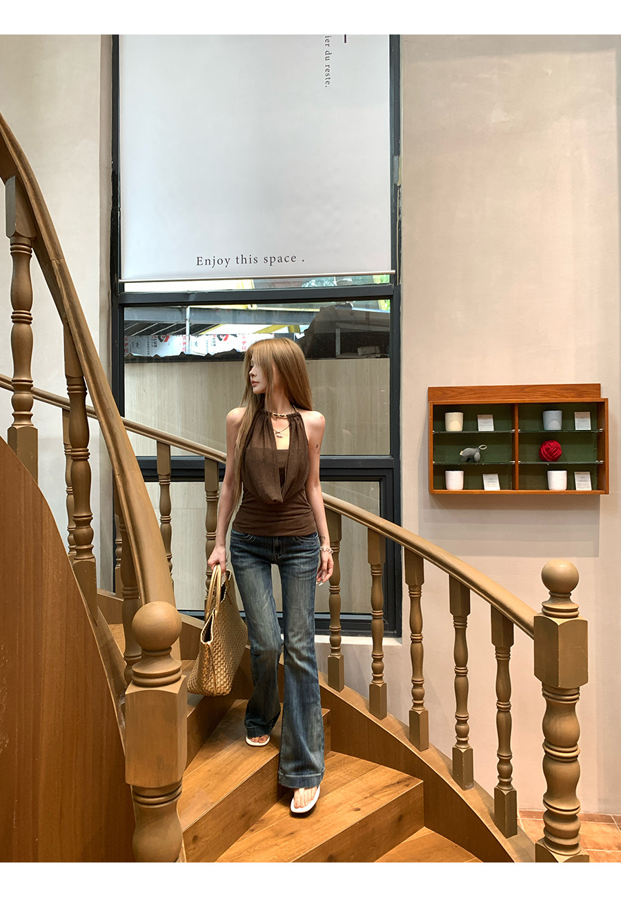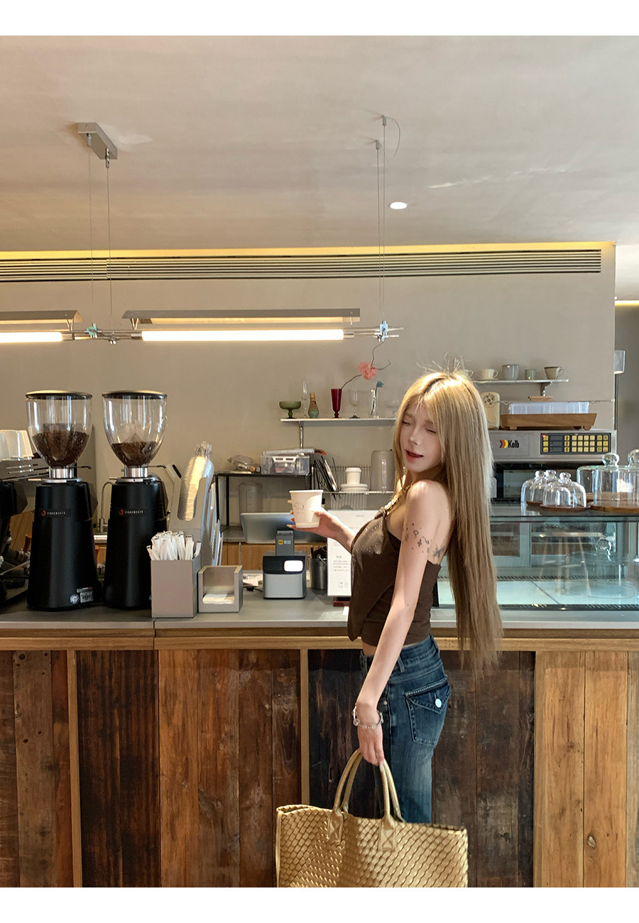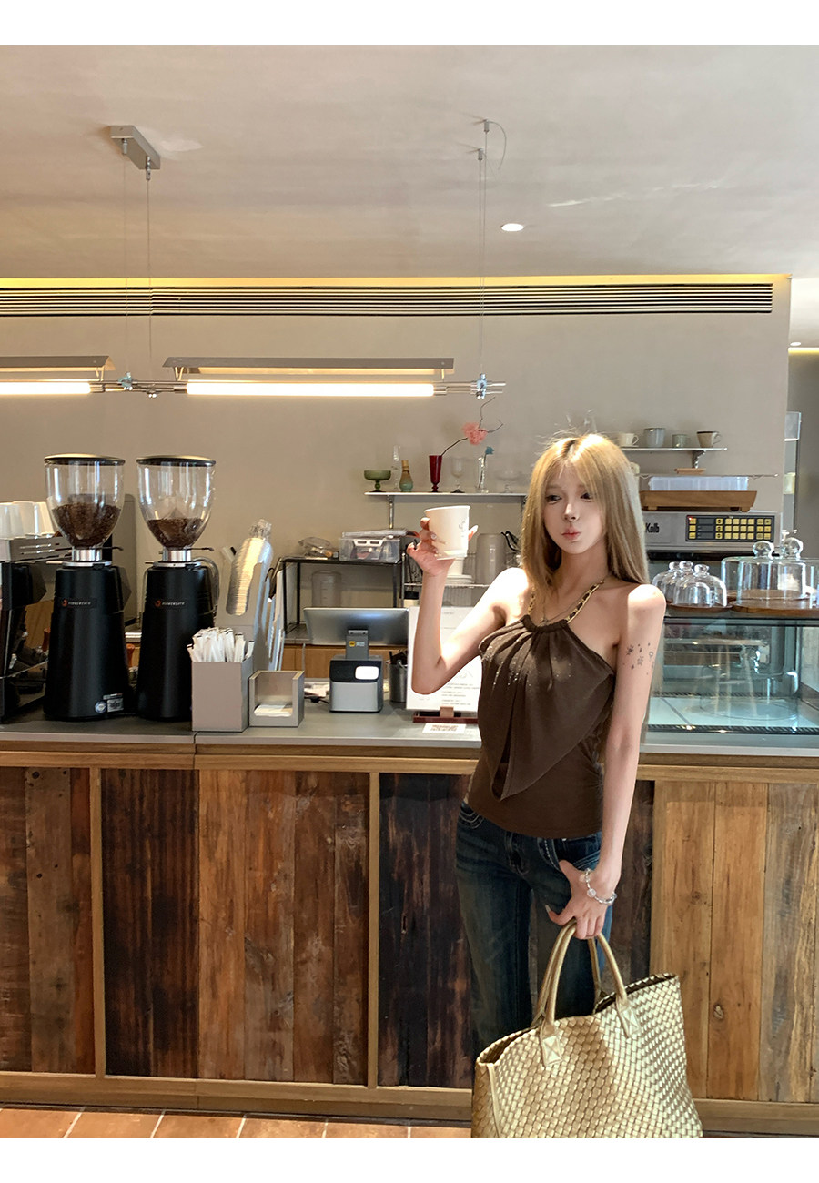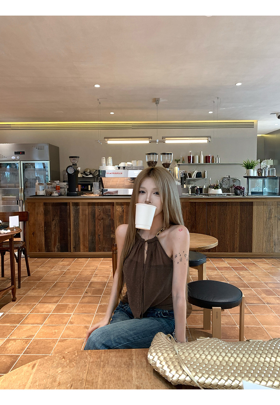 원본 솜씨 원단 캐미솔 여름 핫걸 착용 가져 가라. 백리스 민소매 흔들다 칼라 행침 목 민소매 맨위