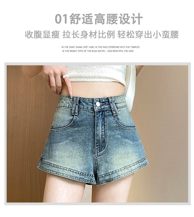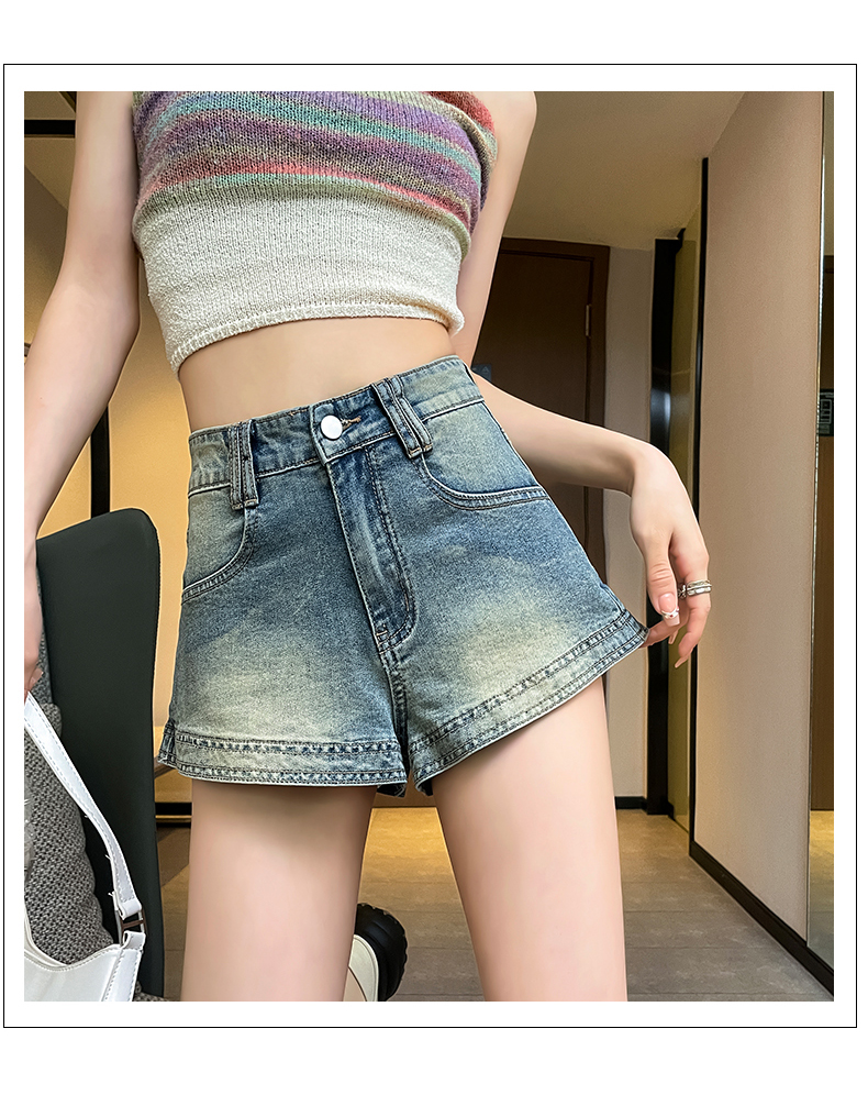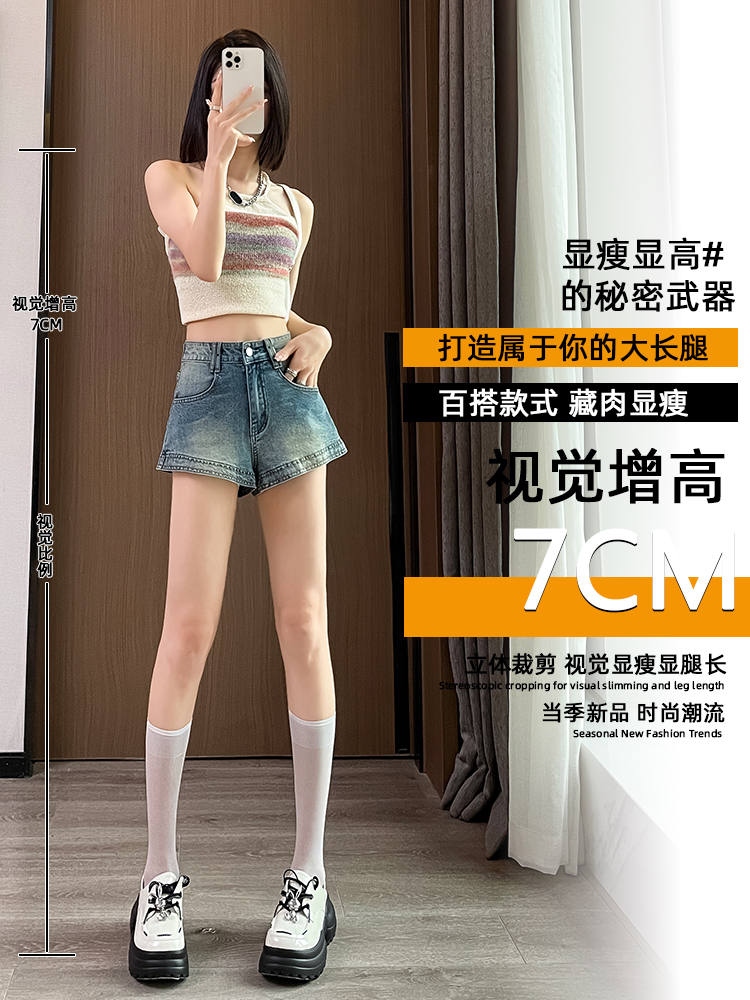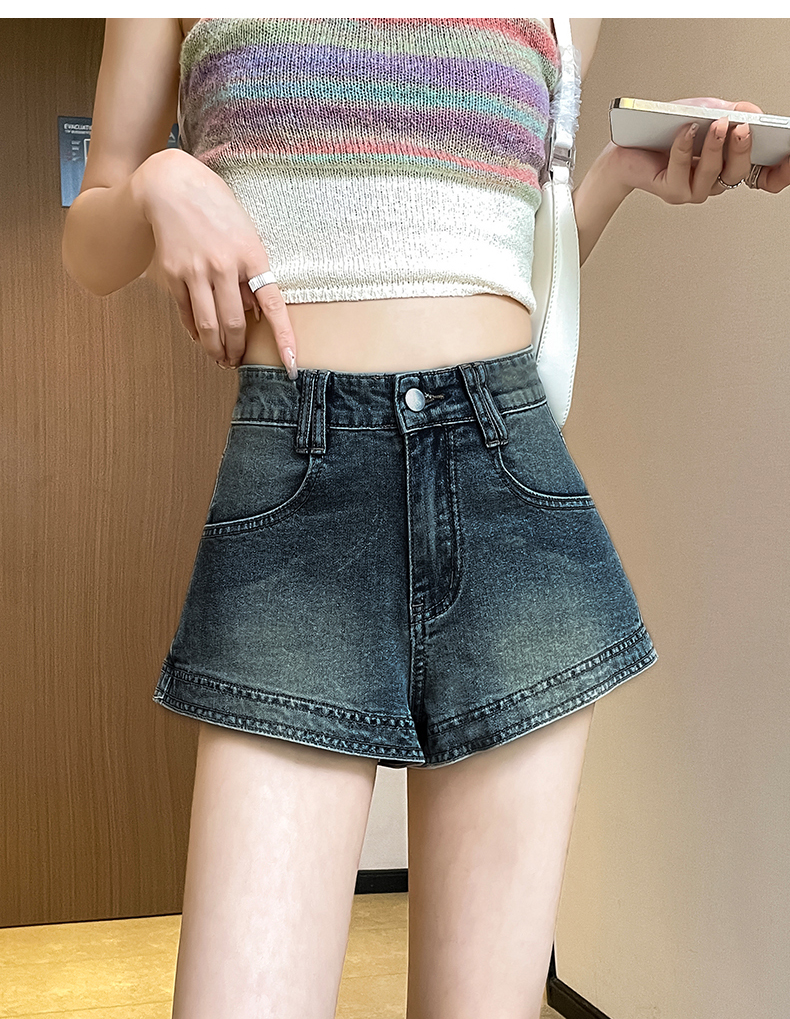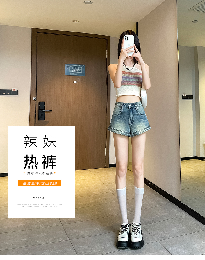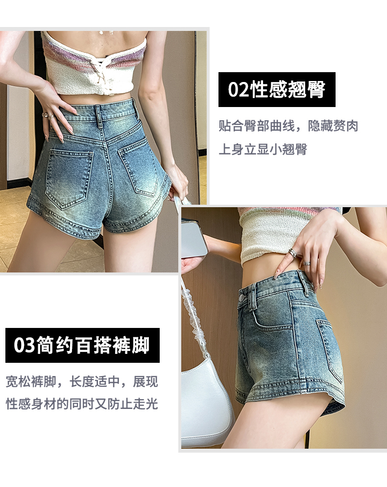 실사 아메리칸 레트로 데님 반바지 여성 여름 얇은 스타일 외출용 하이웨이스트 슬림해 보이는 한 마디 초단 핫걸 뜨거운 바지