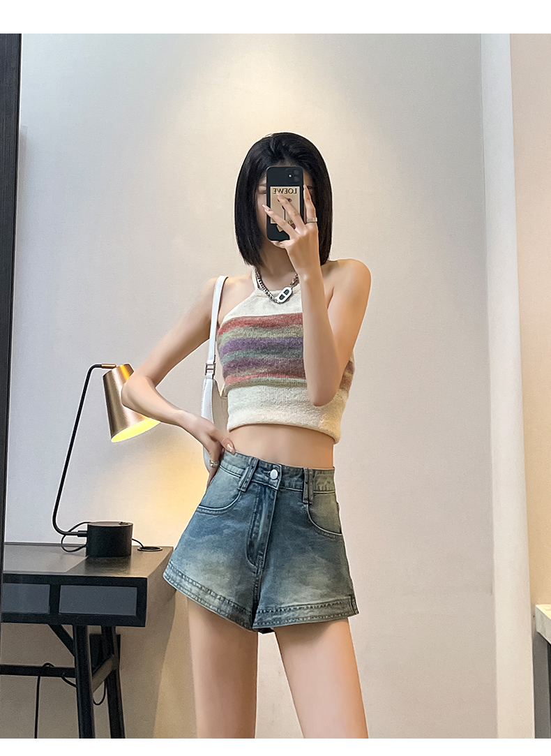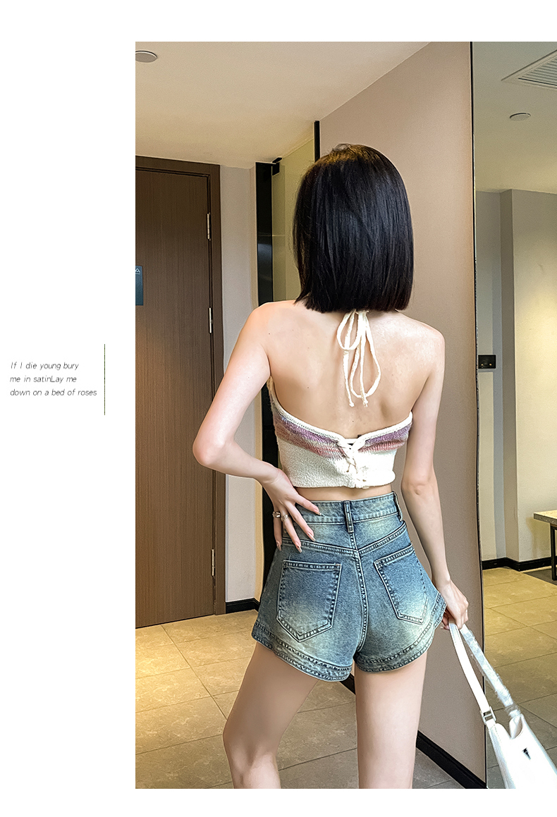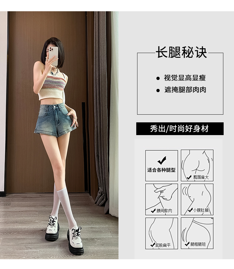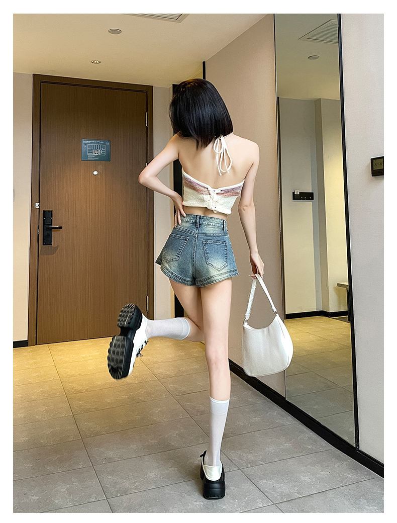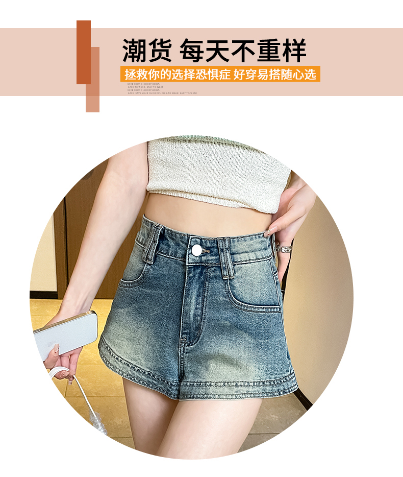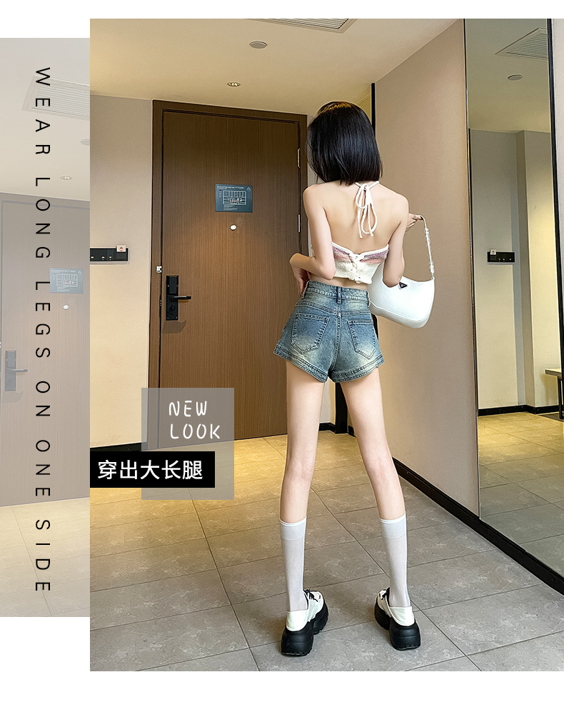 실사 아메리칸 레트로 데님 반바지 여성 여름 얇은 스타일 외출용 하이웨이스트 슬림해 보이는 한 마디 초단 핫걸 뜨거운 바지