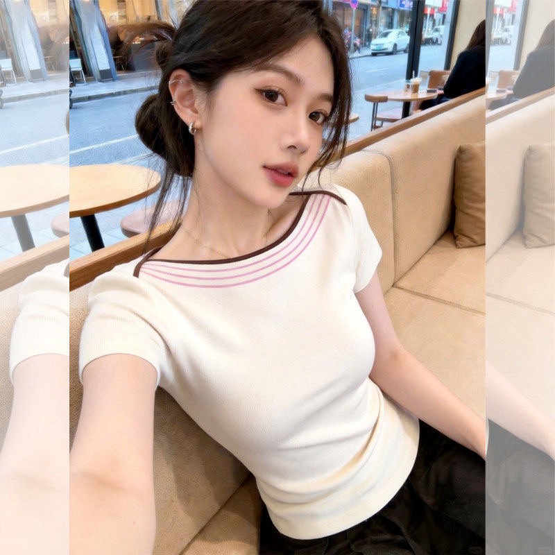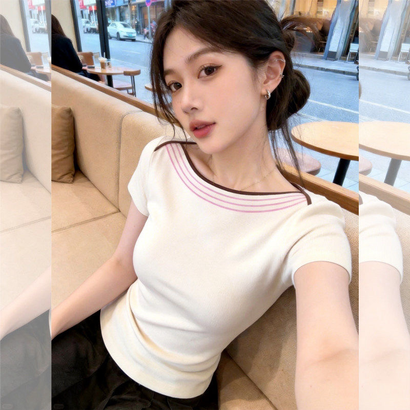 180 그램 95 면 5 암모니아 Lun 2026 여름 새로운 한국 스타일 반팔 티셔츠 여성 디자인 센스