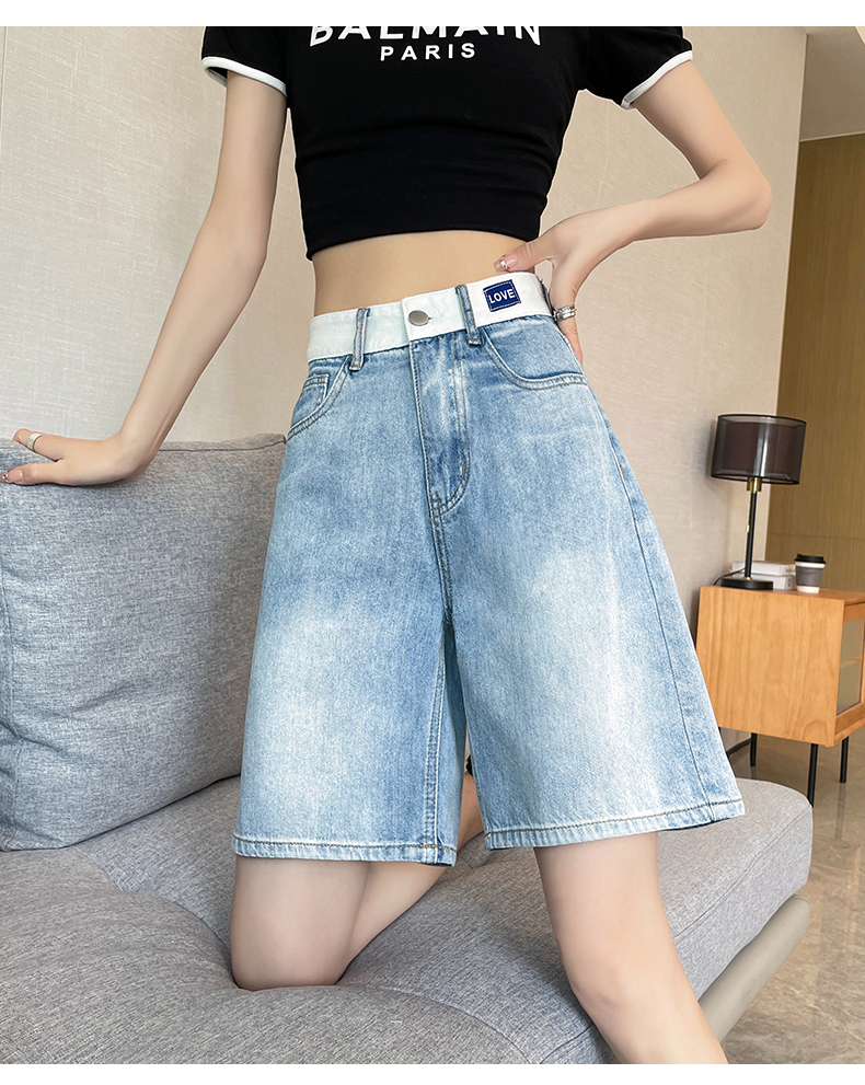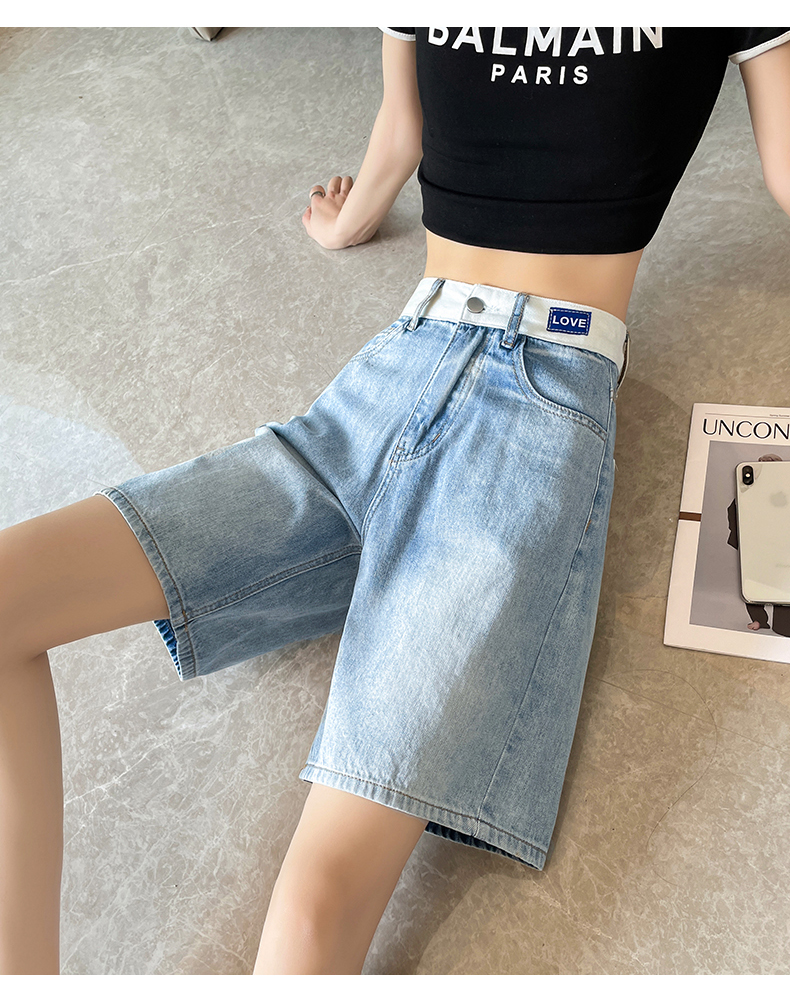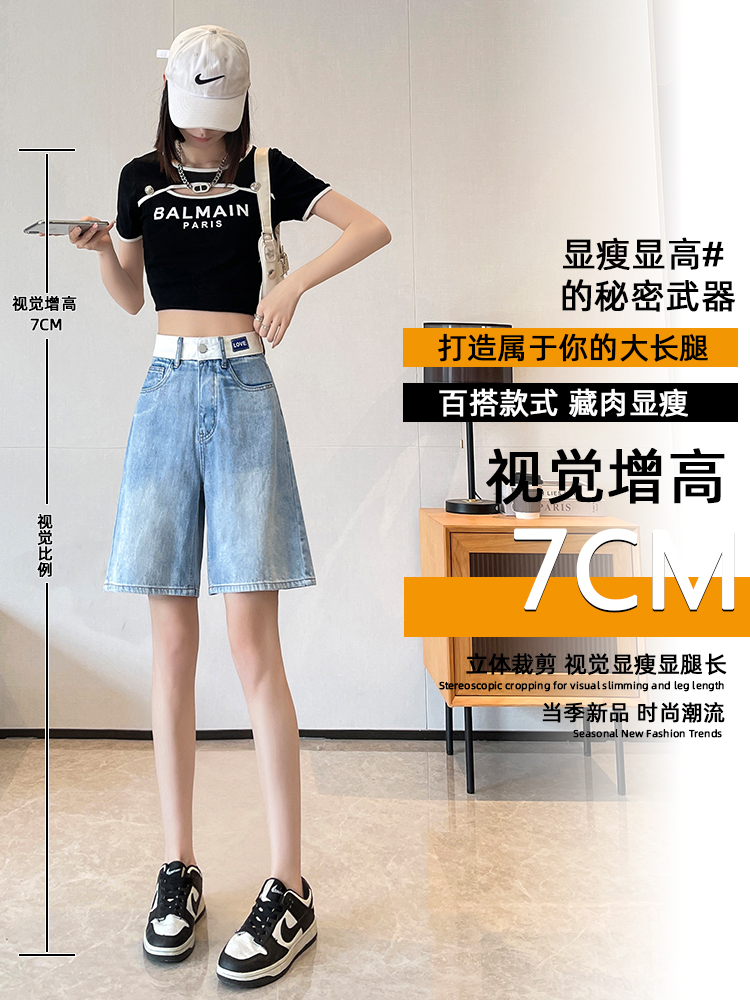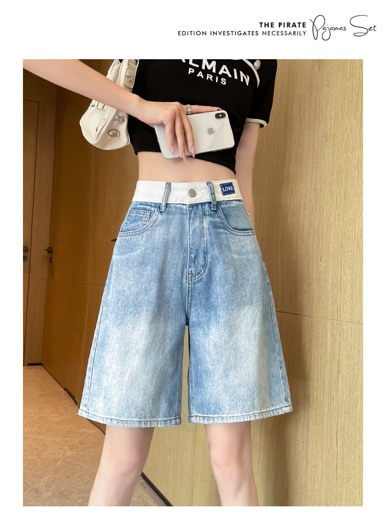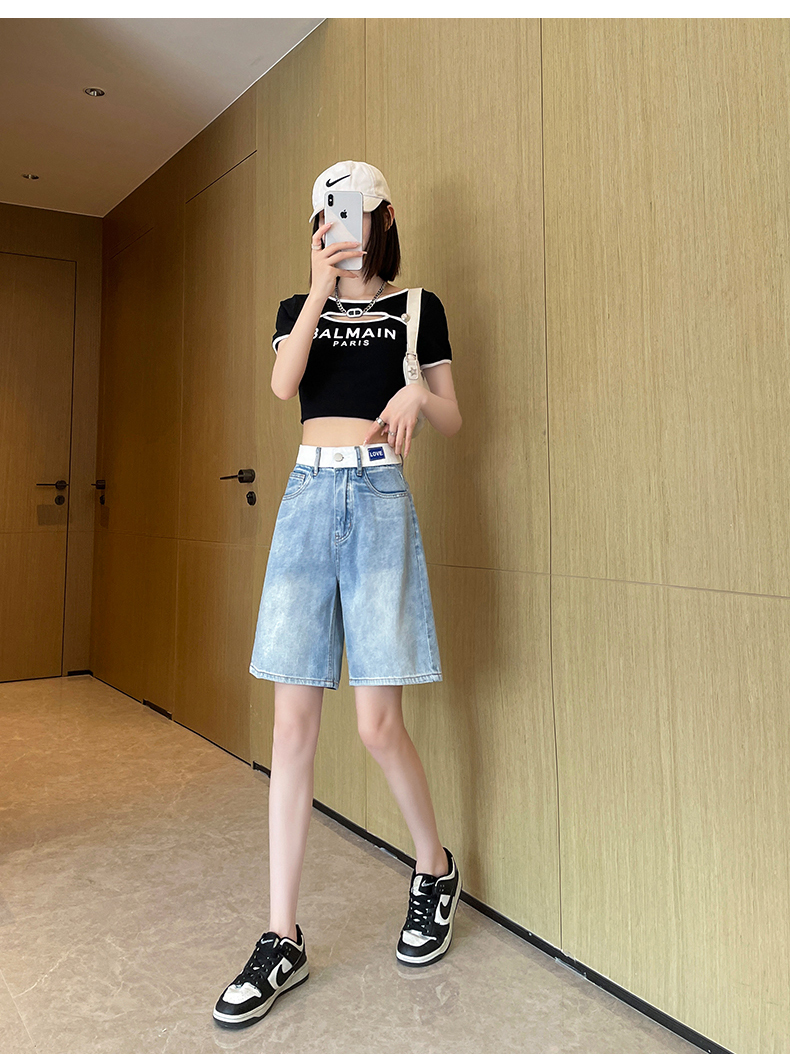 실사 하늘색 데님 반바지 여성 여름 얇은 스타일 2026 년 새로운 하이웨이스트 슬림해 보이는 스트레이트 5 점 중 바지