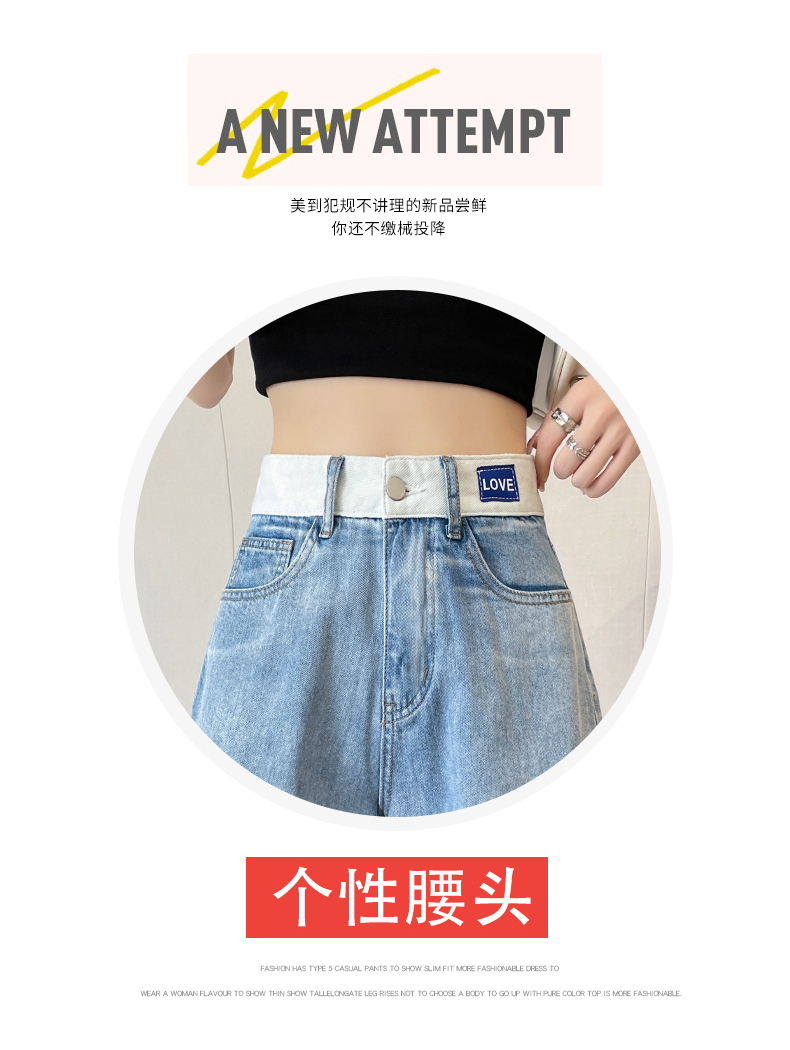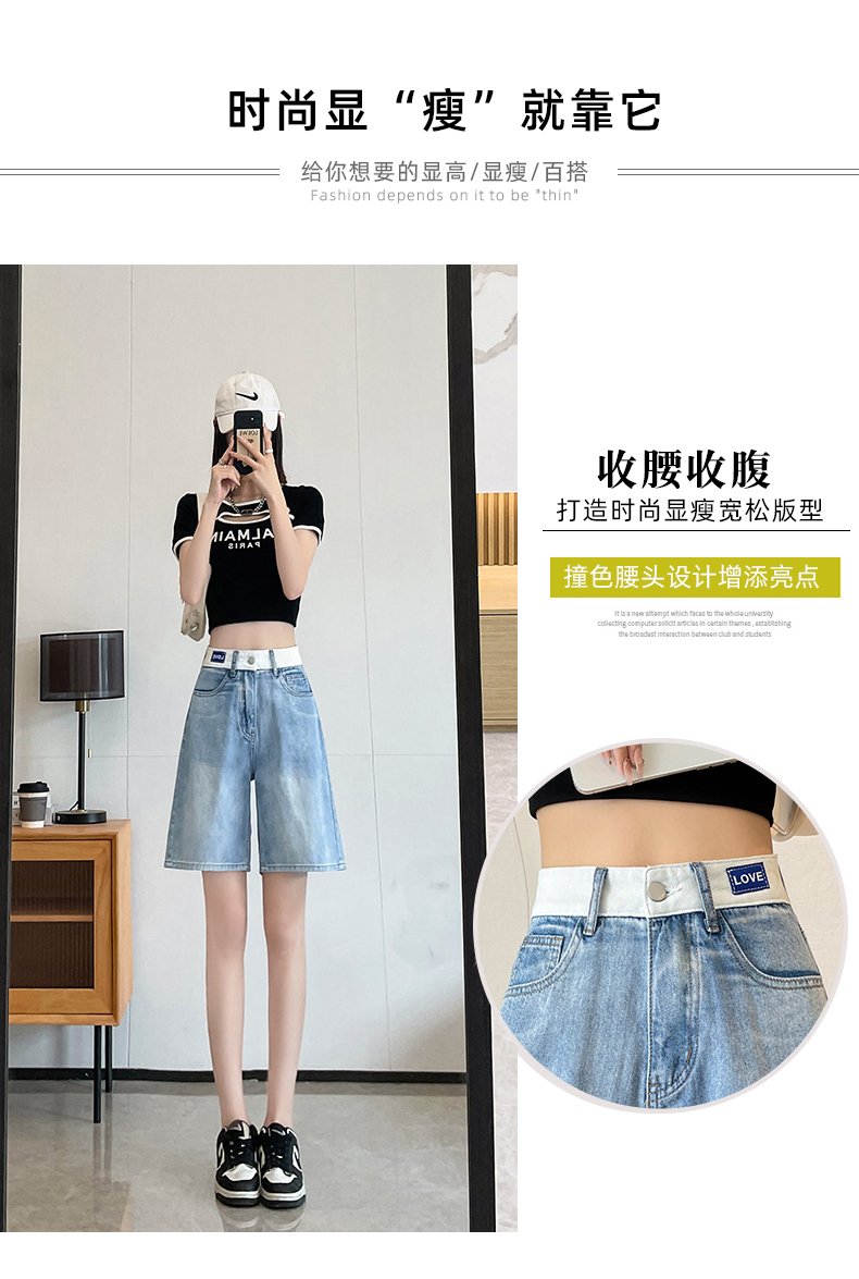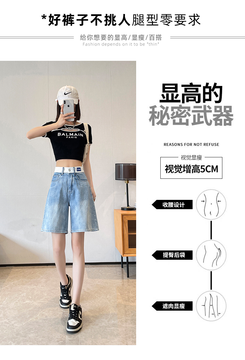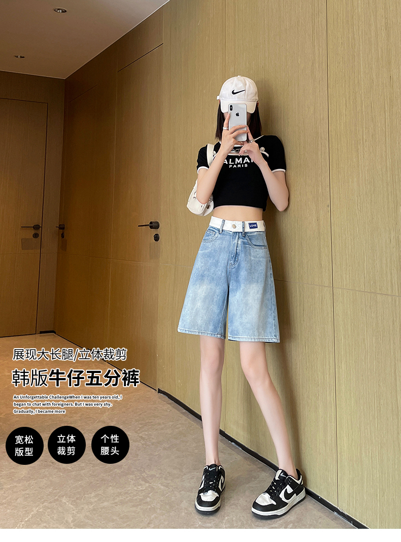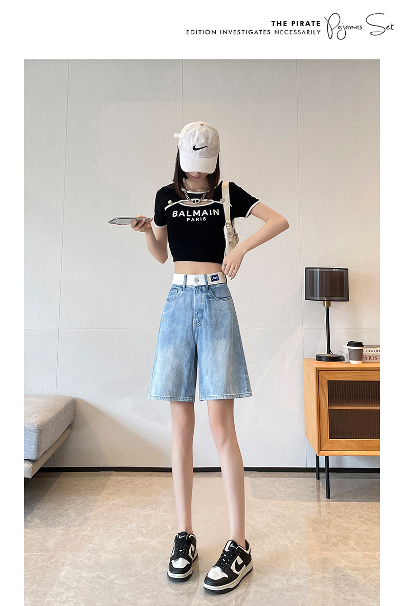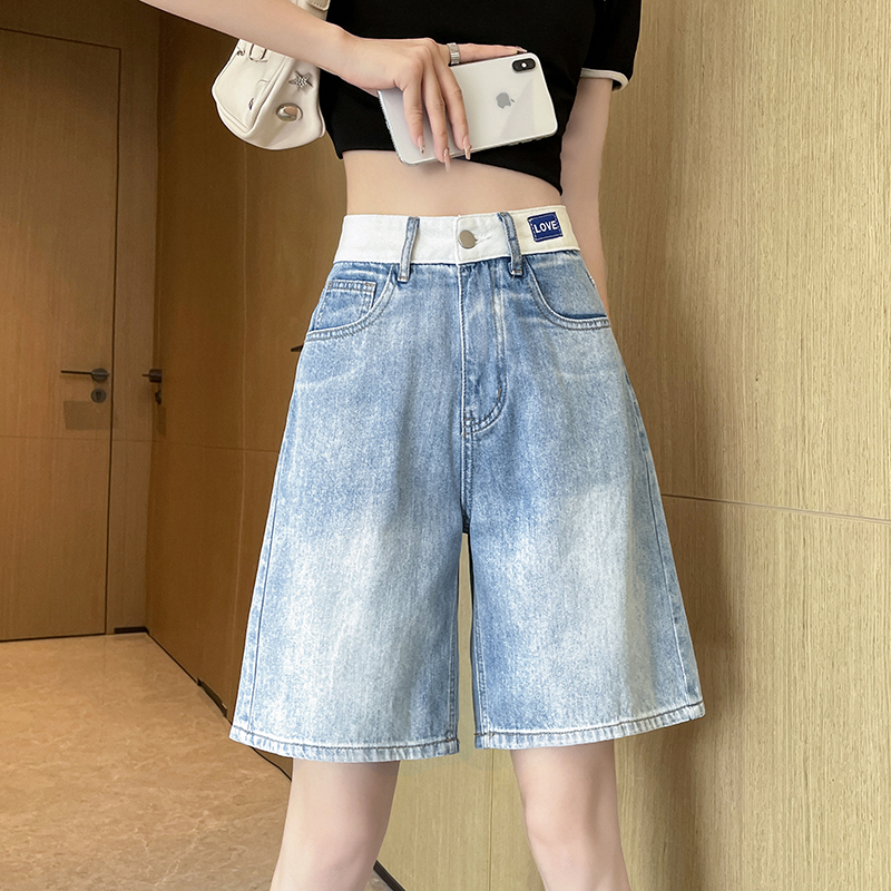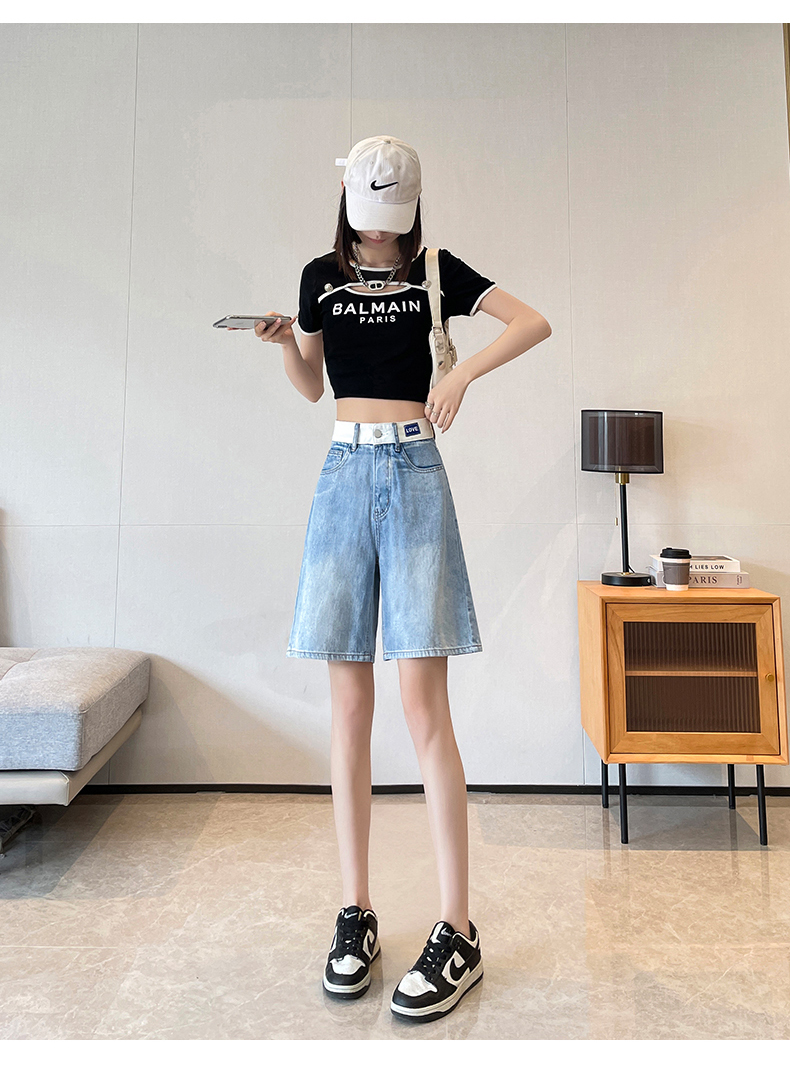 실사 살구 색상 핫걸 넓은 다리 데님 반바지 여성 여름 얇은 스타일 하이웨이스트 슬림해 보이는 루즈핏 작은 키 스트레이트 핫 바지