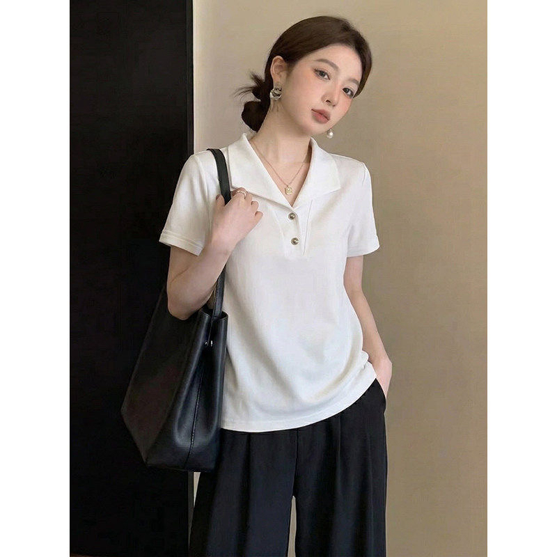 미니멀리즘 바람 다용도 슬림해 보이는 거품 소매 화이트 반팔 셔츠 로드 중 여름 2026 슈퍼 화재 연령 감소 맨위 빅 사이즈 여성 의류