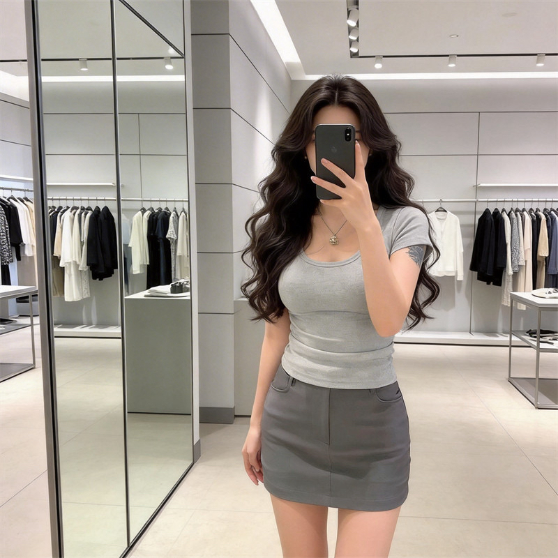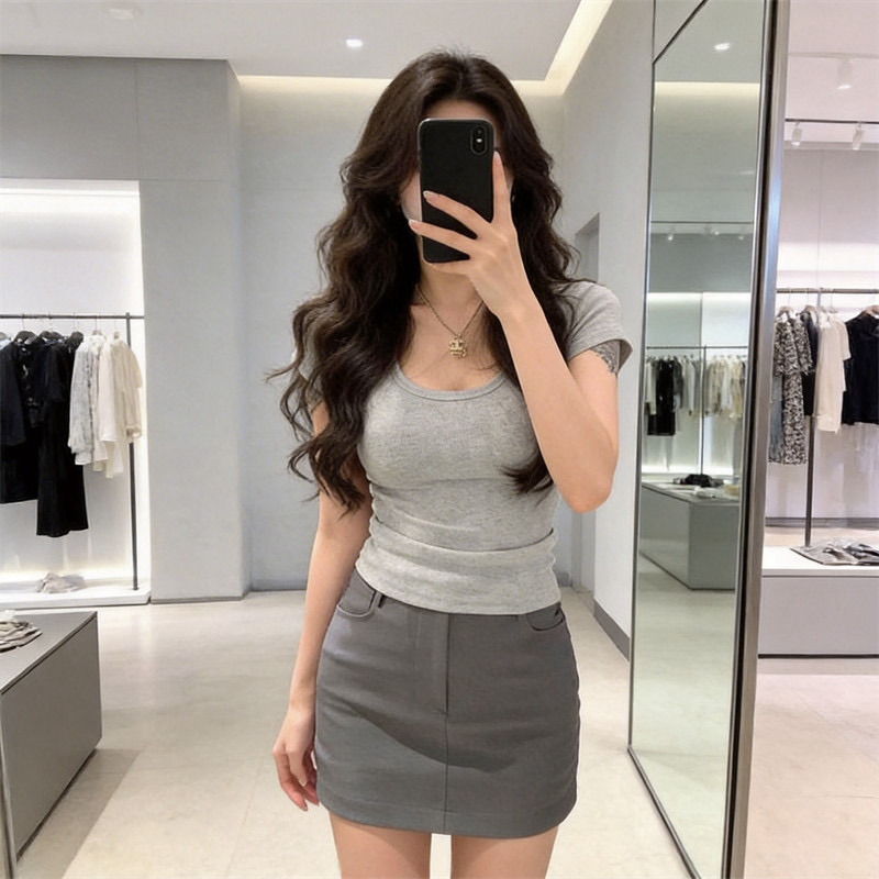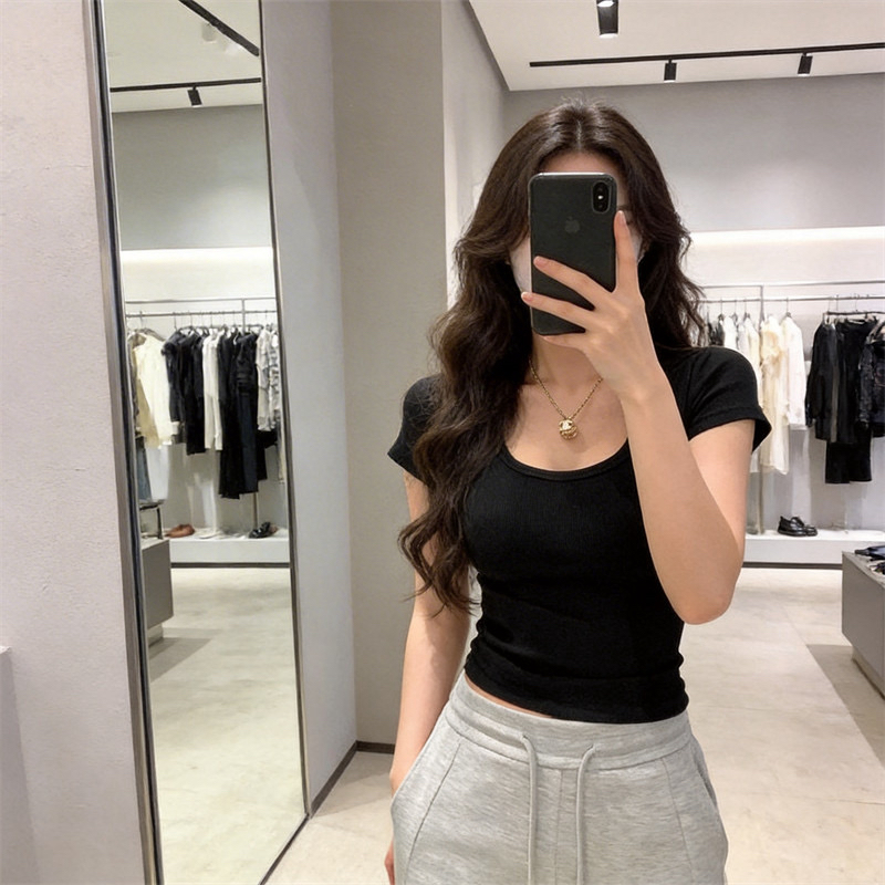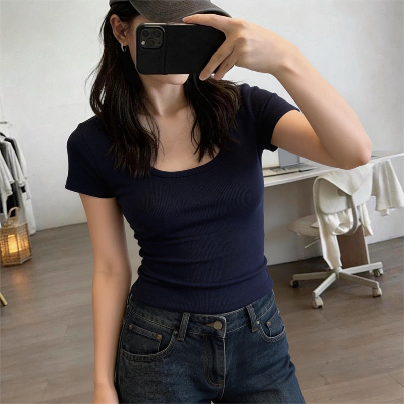 200그램 95 면 5 암모니아 Lun 2026 여름 새로운 한국 스타일 반팔 티셔츠 여성 디자인 센스
