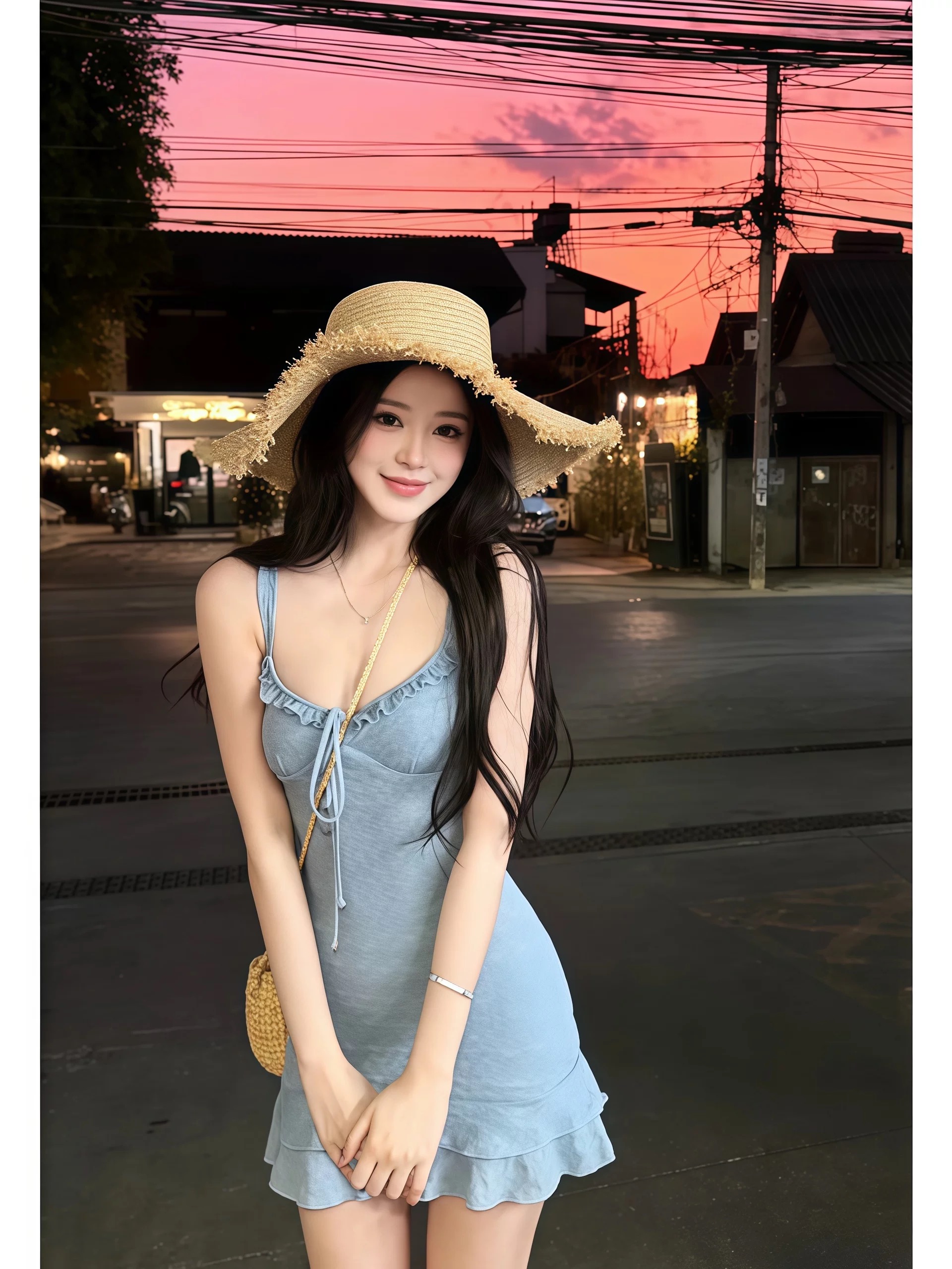 프랑스식 파란색 슬립 드레스 아이들 여름 2026 새로운 해변가 휴가 특별 아름다운 꼬집기 허리 타이트 스커트