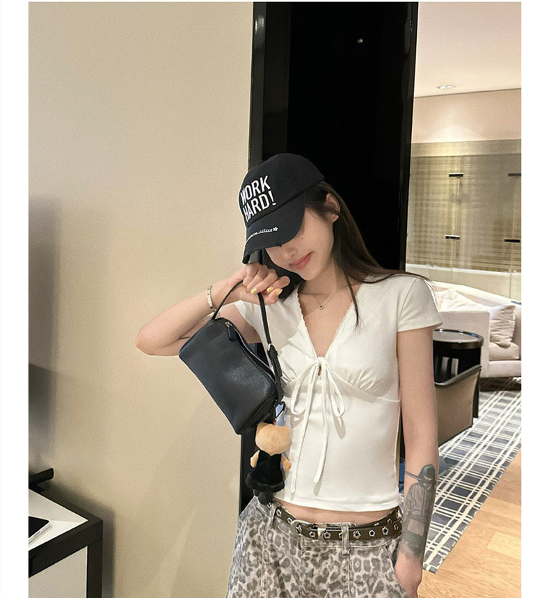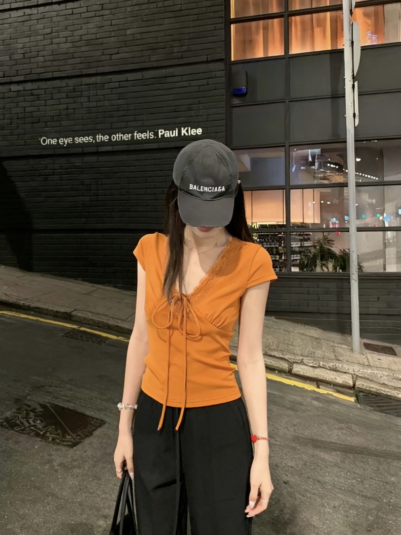 210 그램 순면 한 부서 레이스 레이스 V넥 스트랩 반팔 티셔츠 긍정적 인 어깨 몸매 가꾸기 여름 쇼트 스타일 핫걸 맨위