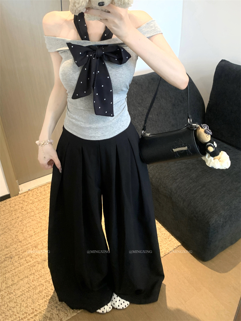 실사 정가 여름 동점 벨트 측면 칼라 반팔 티셔츠 순수한 욕망 출퇴근 작은 대중 디자인 센스 다용도 캐주얼 바지 세트