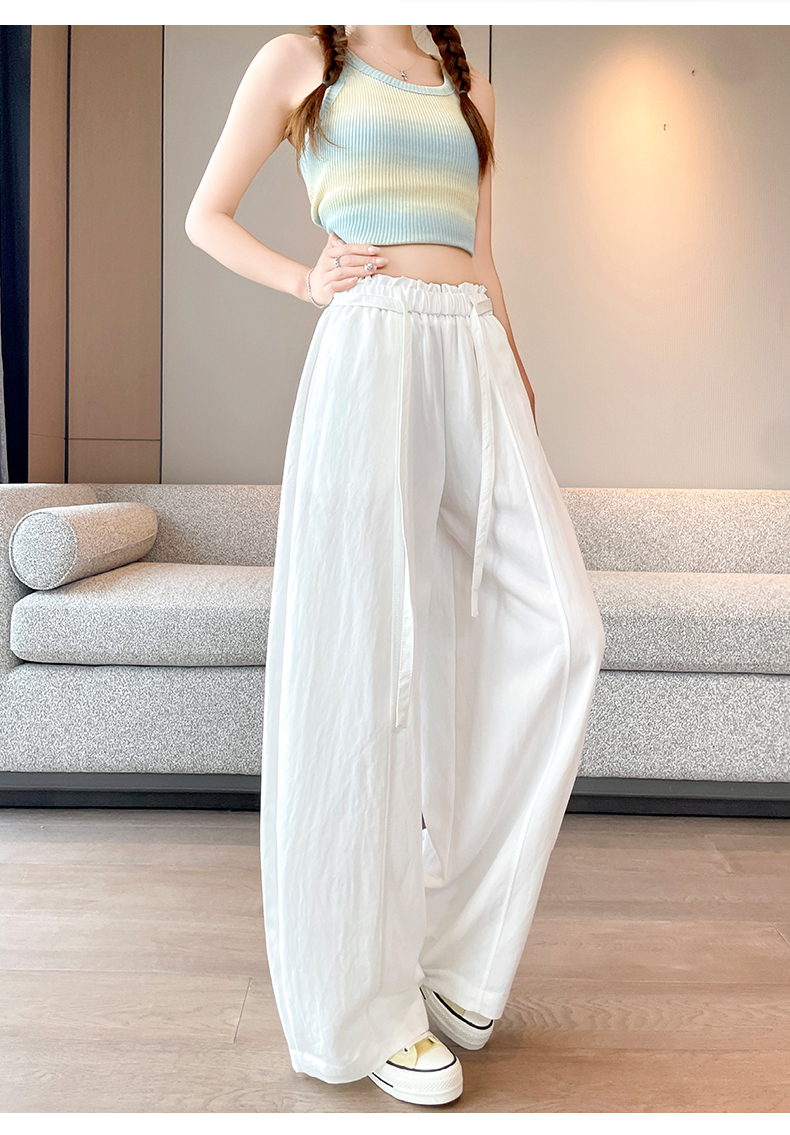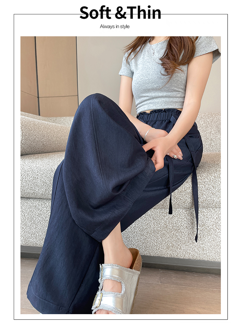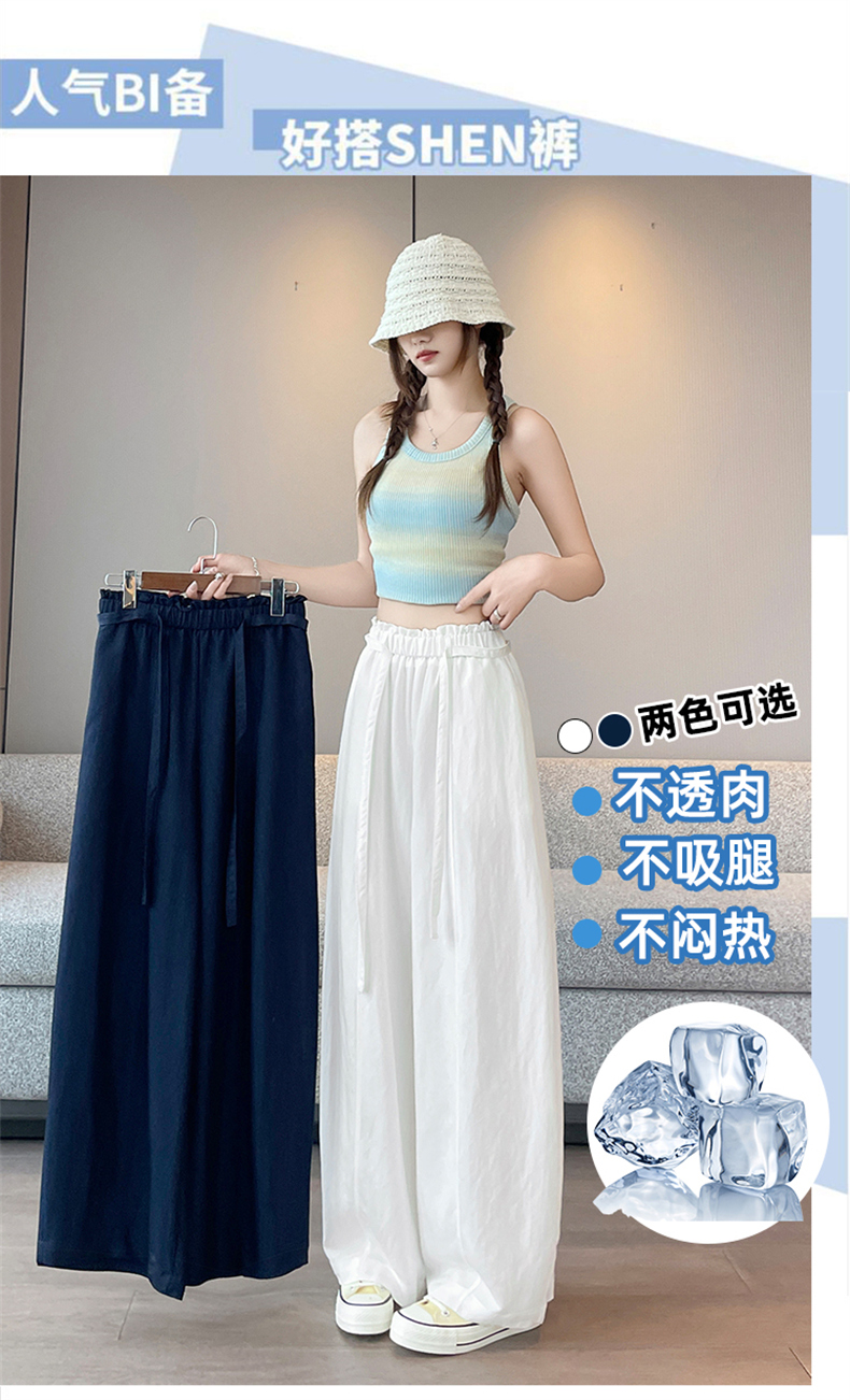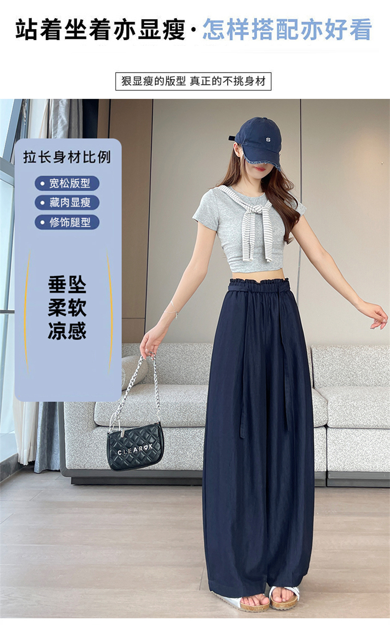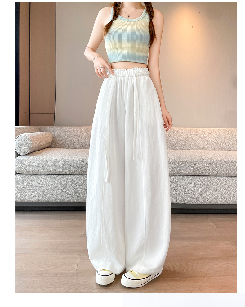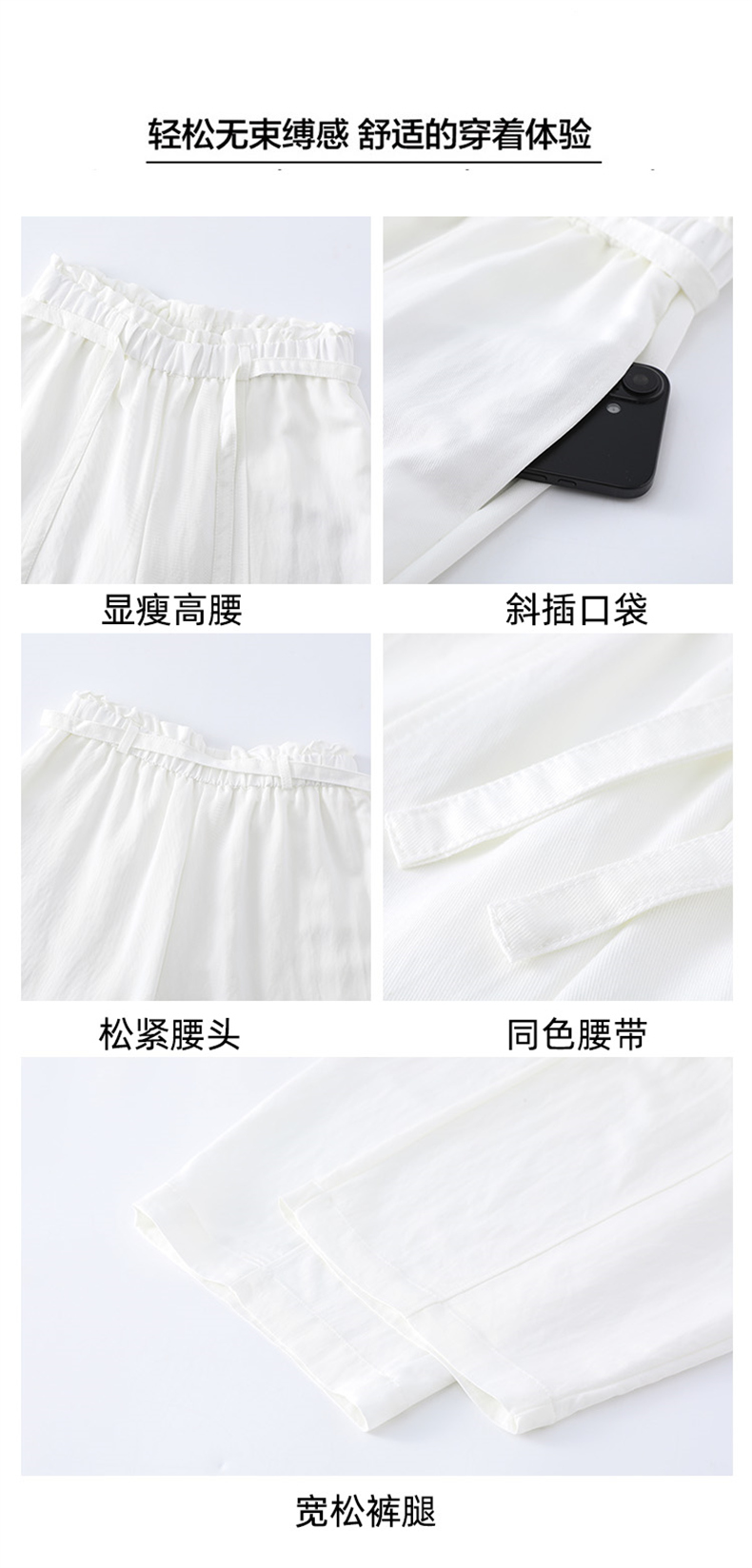 실사 2026 여름 새로운 같이 갔다. 로프 벨트 미니멀리즘 루즈핏 와이드 레그 팬츠 주간 실크 도루 센스 슬림해 보이는 캐주얼 바지
