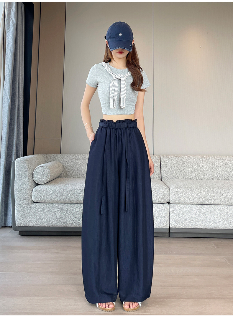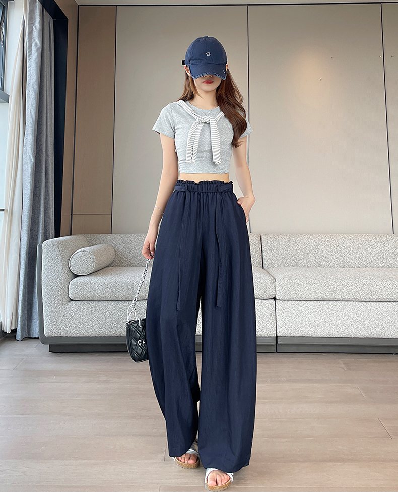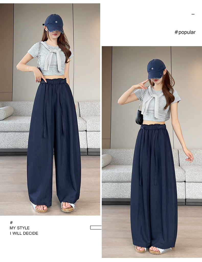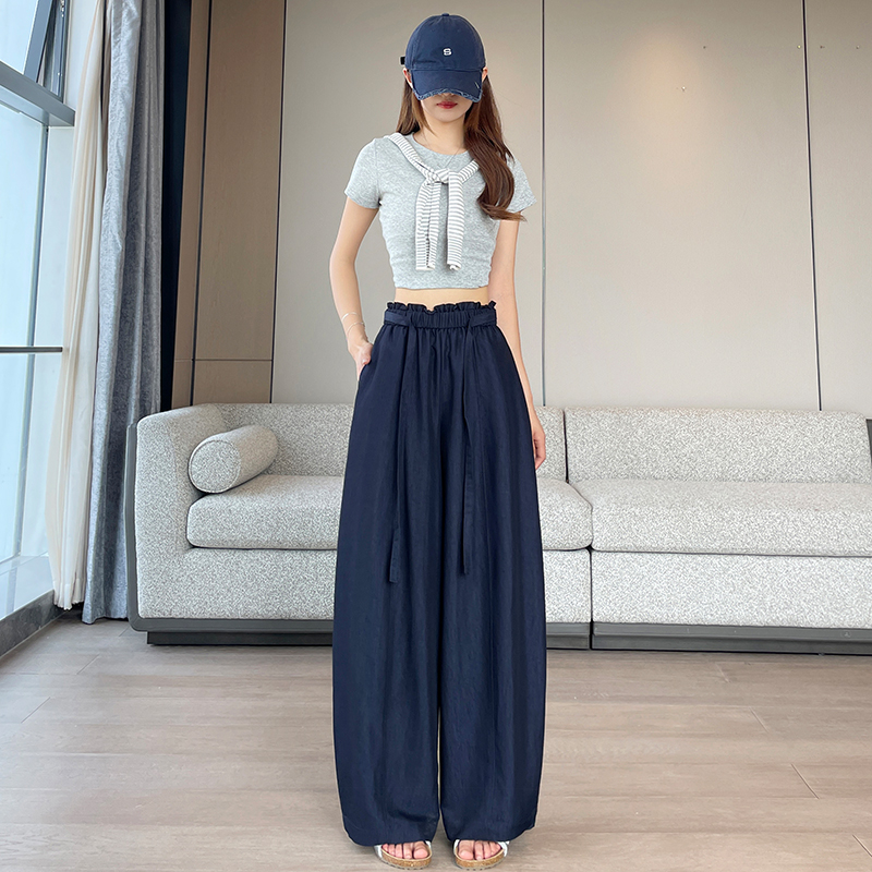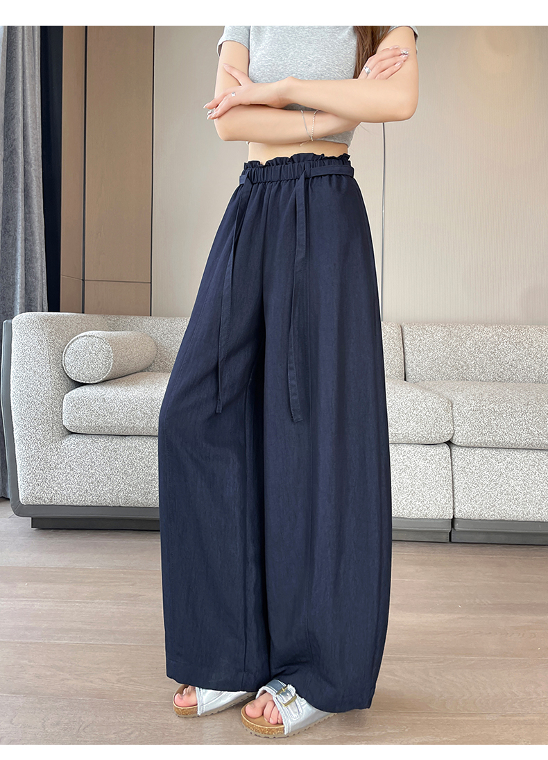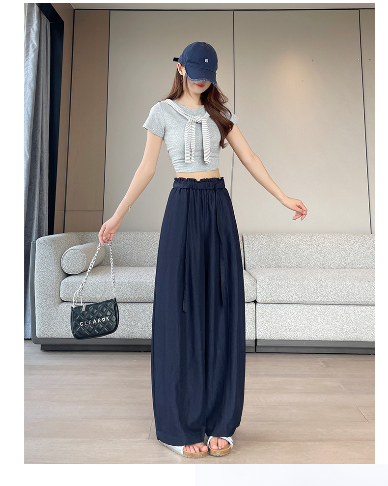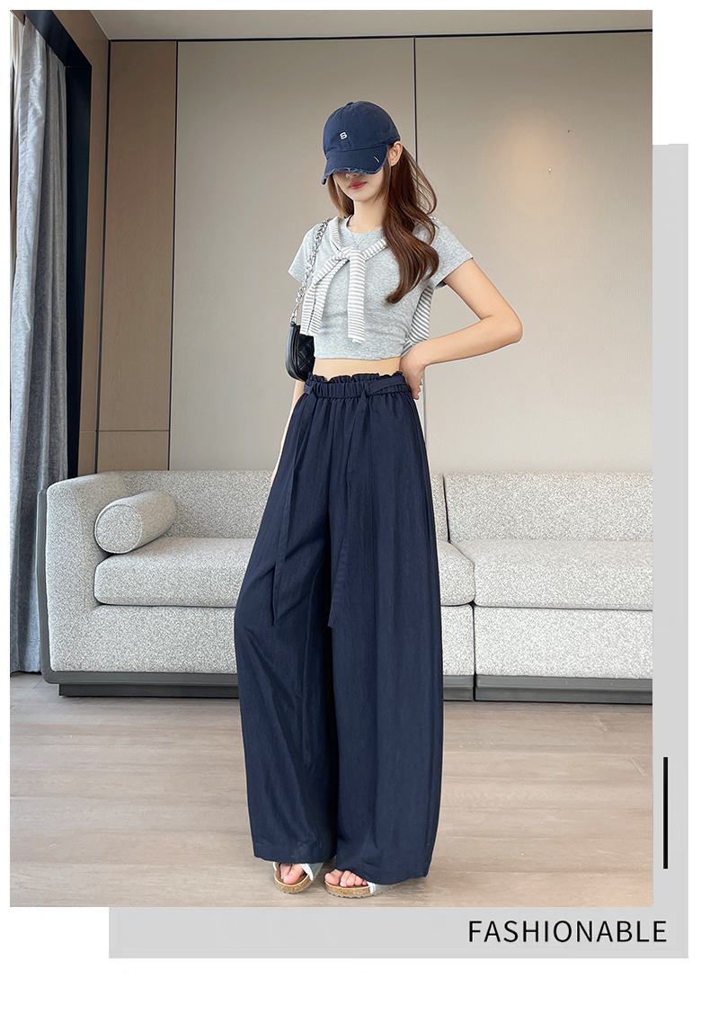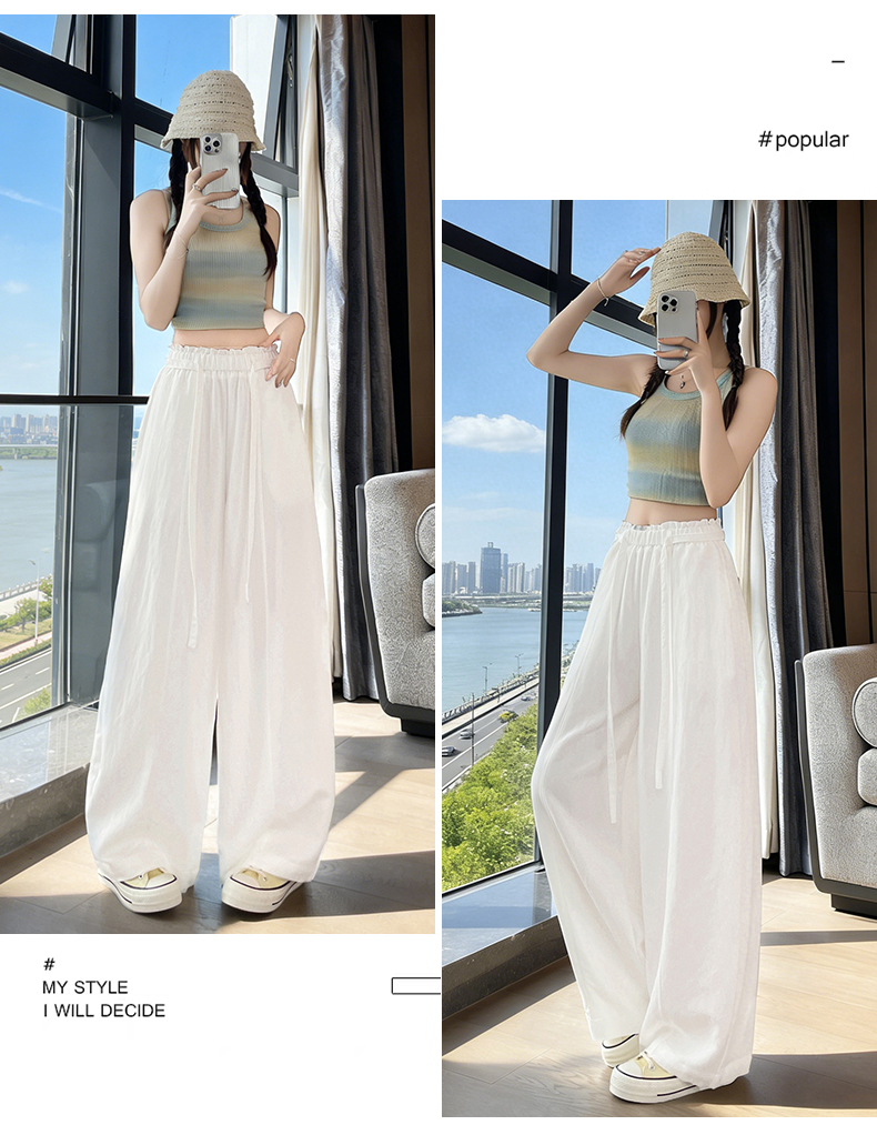 실사 2026 여름 새로운 같이 갔다. 로프 벨트 미니멀리즘 루즈핏 와이드 레그 팬츠 주간 실크 도루 센스 슬림해 보이는 캐주얼 바지