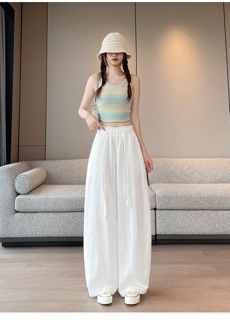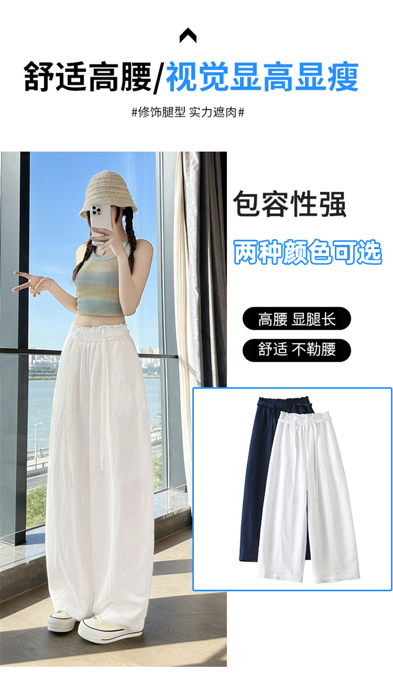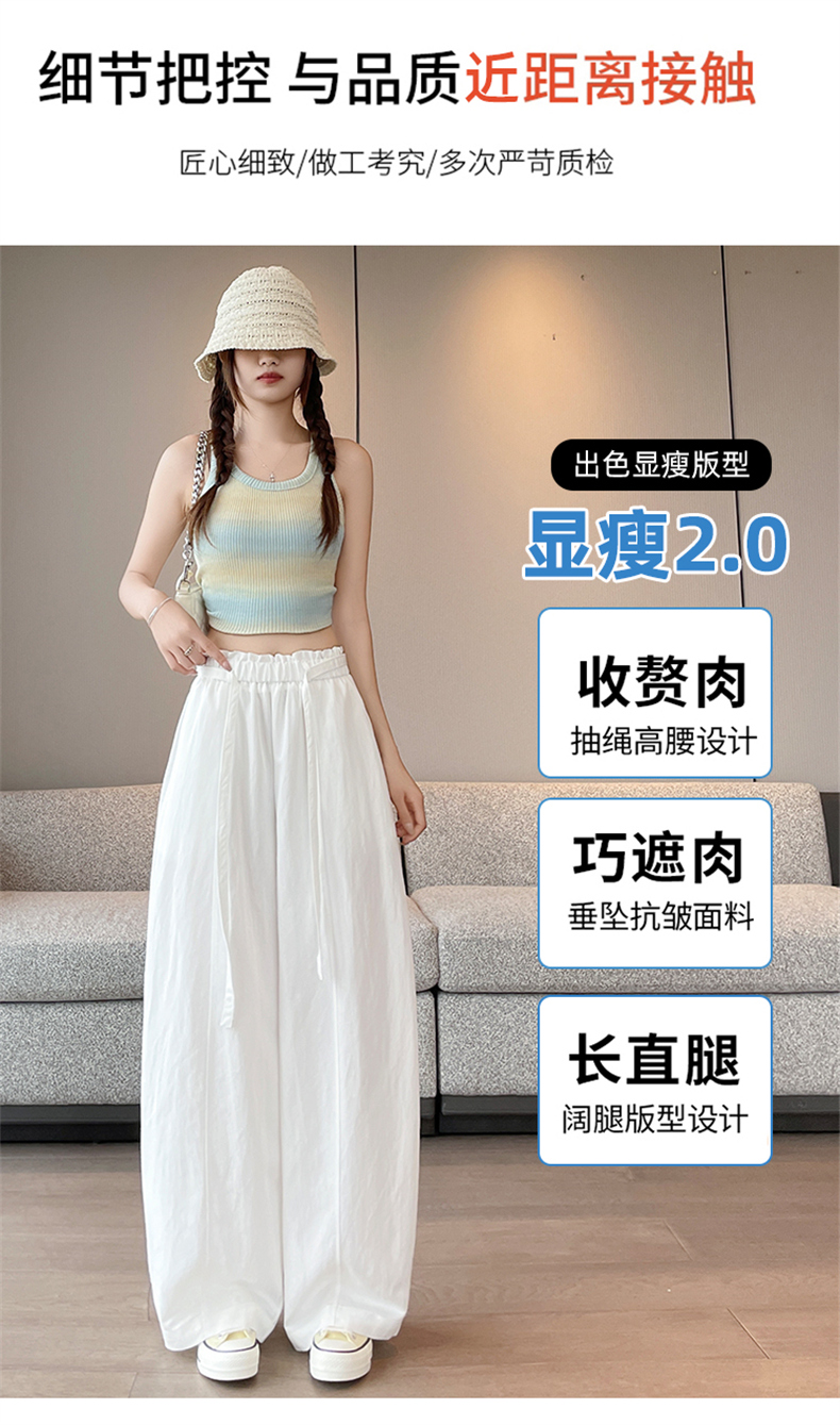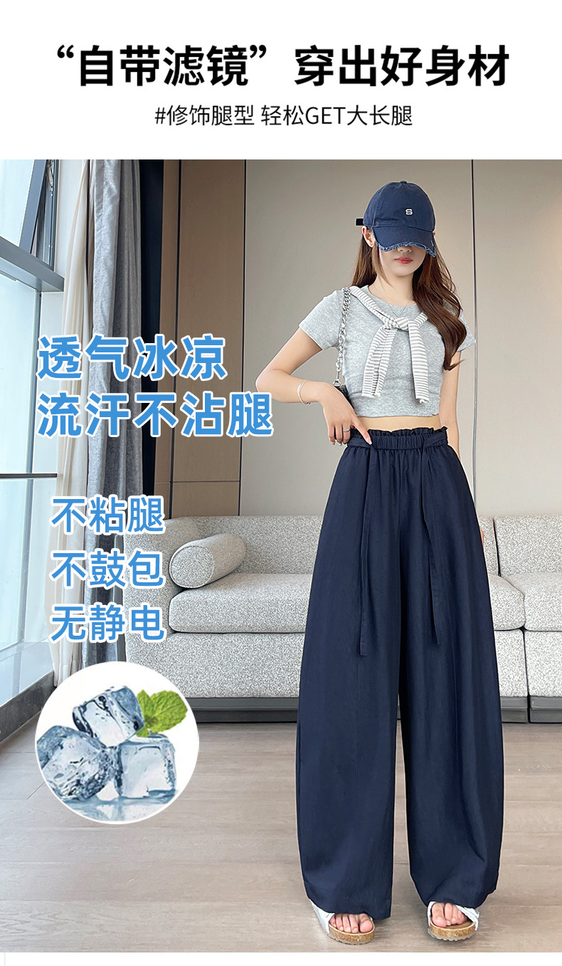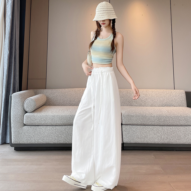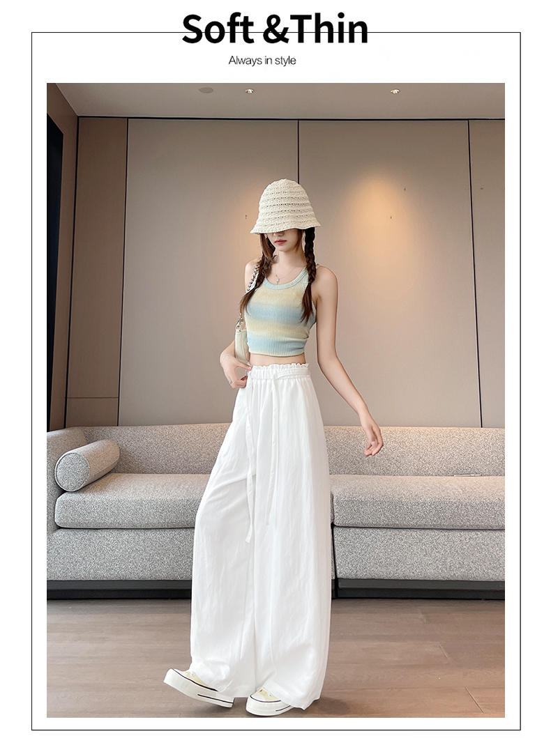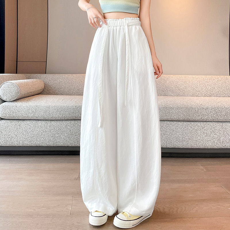 실사 2026 여름 새로운 같이 갔다. 로프 벨트 미니멀리즘 루즈핏 와이드 레그 팬츠 주간 실크 도루 센스 슬림해 보이는 캐주얼 바지
