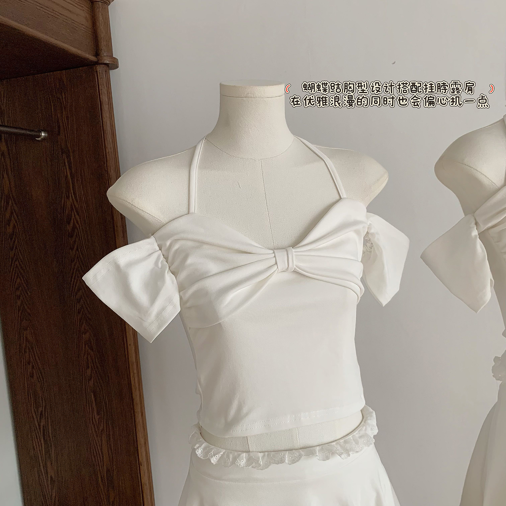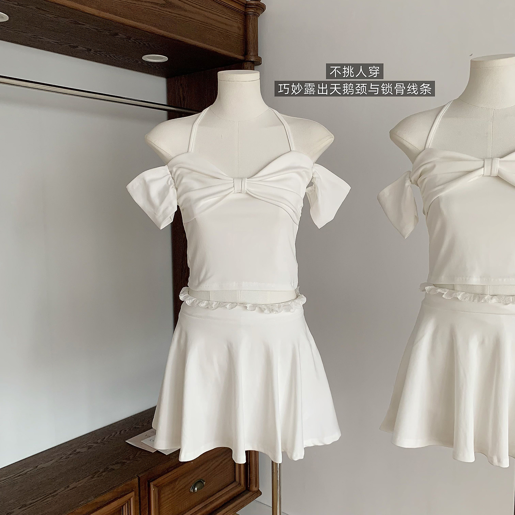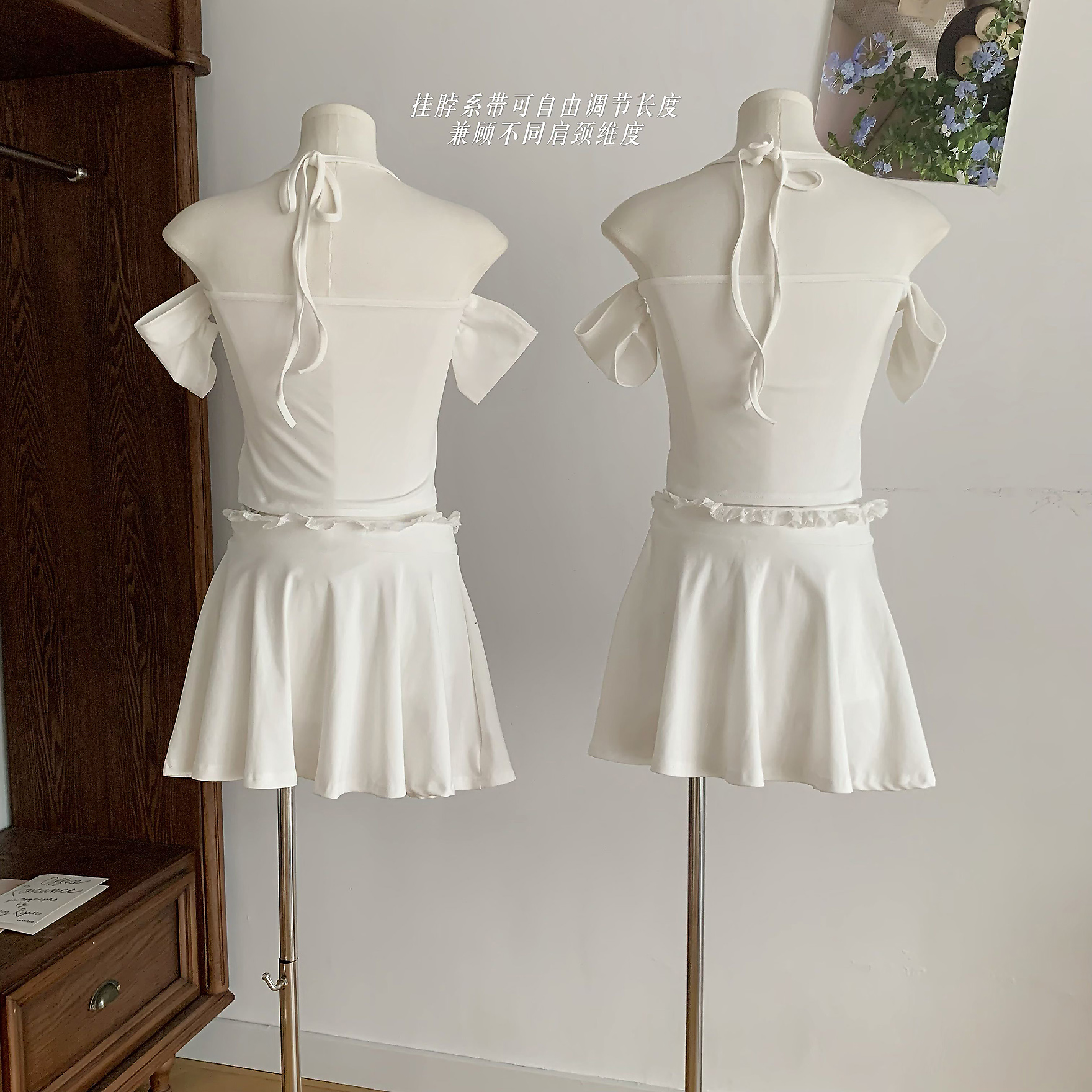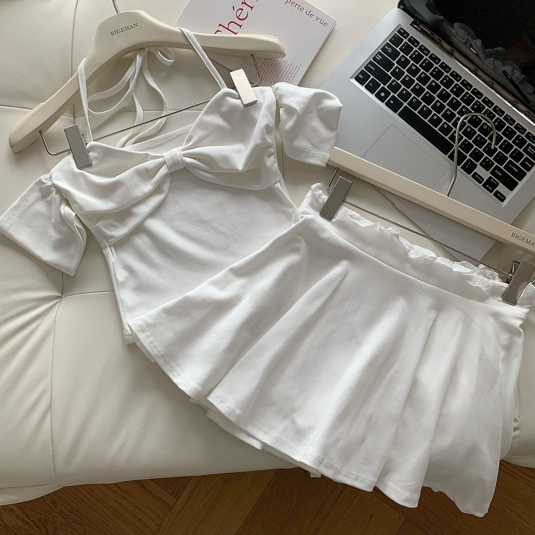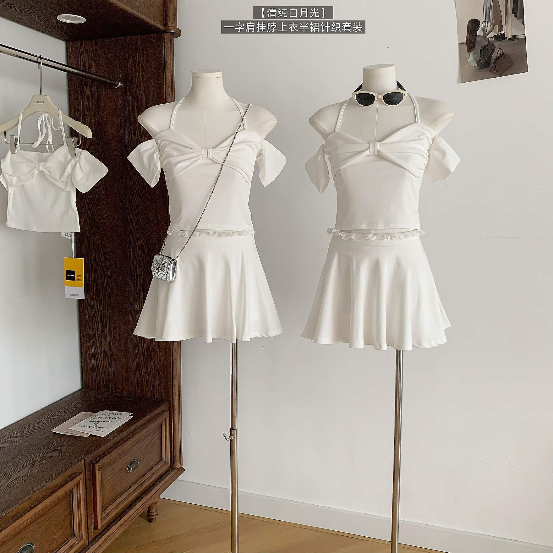 만약 언어 맞춤 순수한 하얀 달빛 순수한 욕망 품격 오프숄더 행침 목 슬립 맨위 반 스커트 니트 투피스 세트