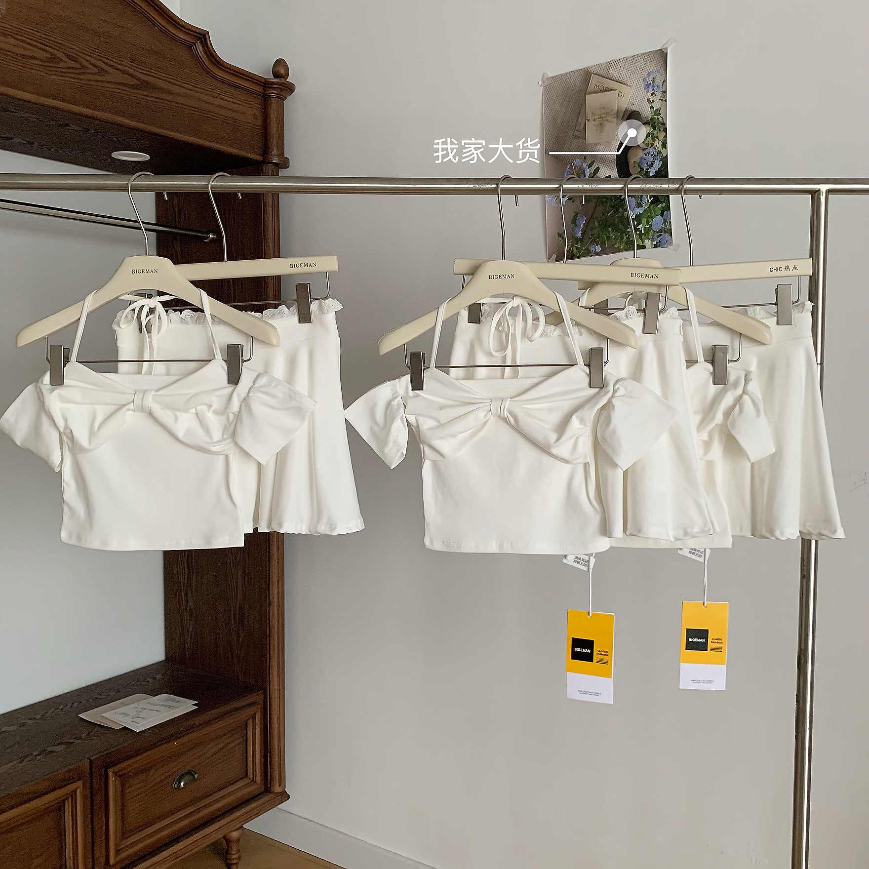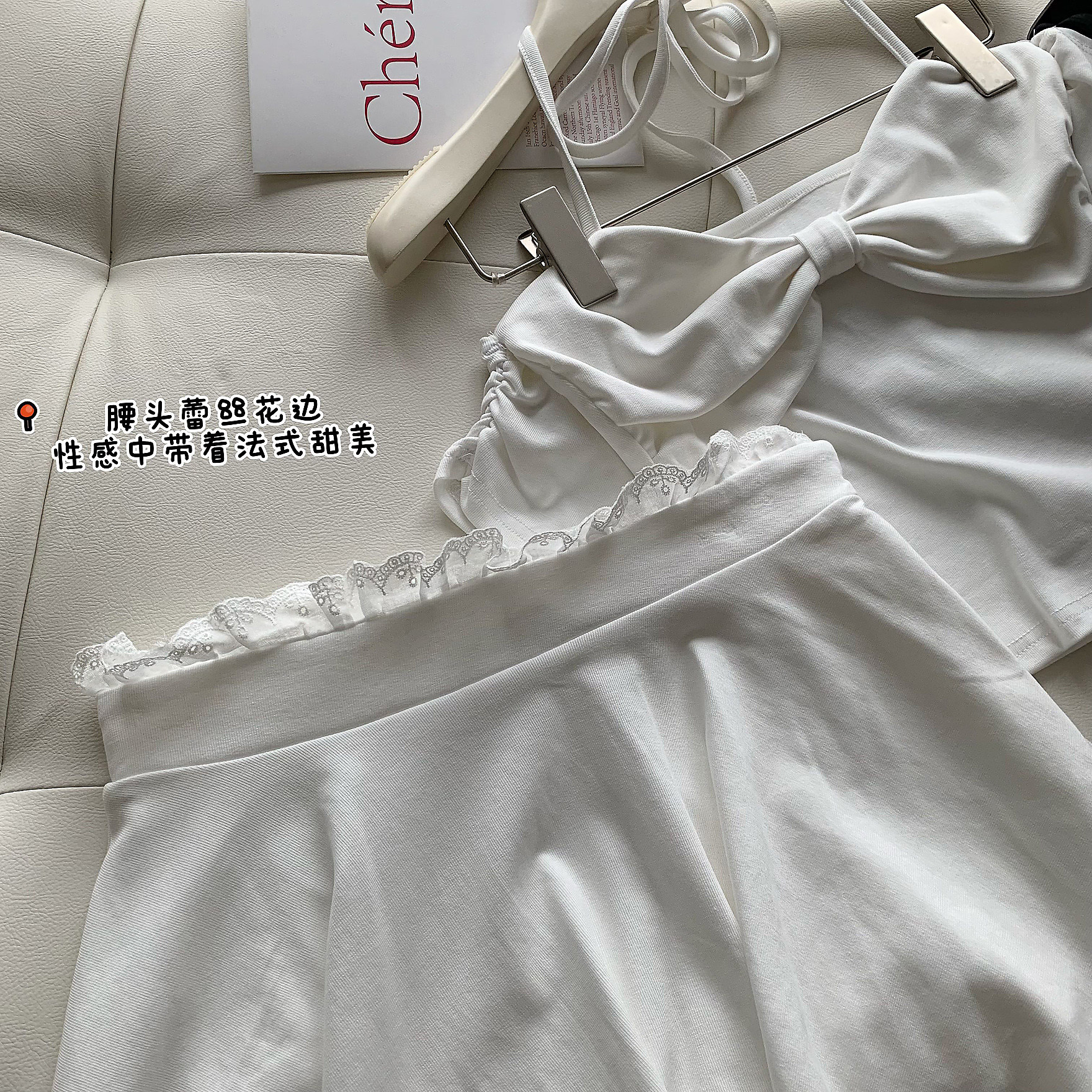 titi 작은 자매 남쪽 법 재스민 행침 목 드레스 여름 섹시함 휴가 바람 작은 키 백리스 미니 스커트