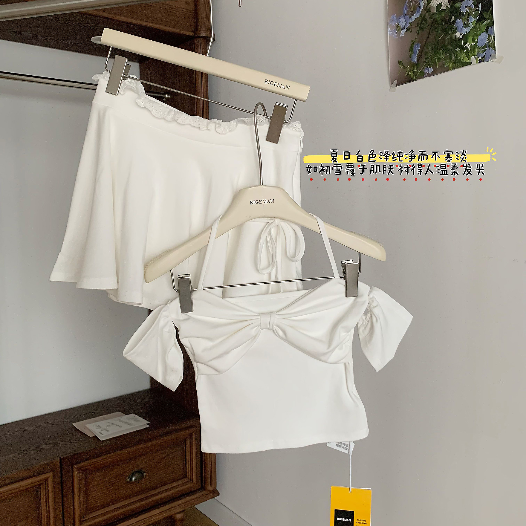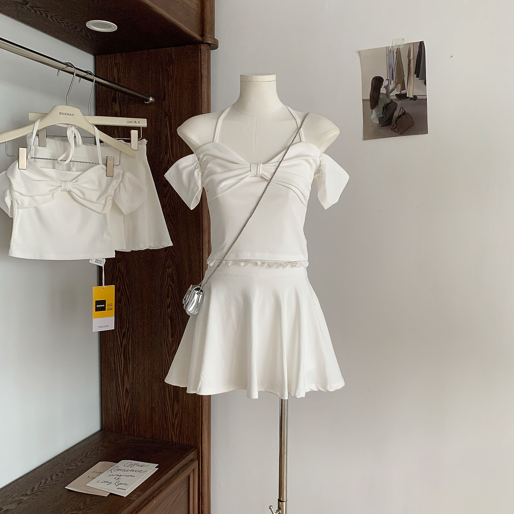 로얄 자매 바람 고급 센스 슈퍼 잘 생긴 오프숄더 맨위 타이트 스커트 투피스 슈트 전체 집합 ootd 착용 가져 가라. 26 여름