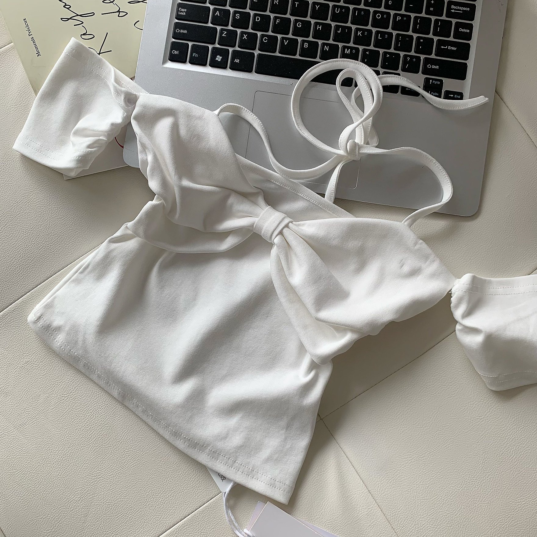 한 바람 chic 전체 집합 여름 ootd 착용 가져 가라. 오프숄더 맨위 와이드 레그 팬츠 어린이 초여름 아름다운 캐주얼 세트