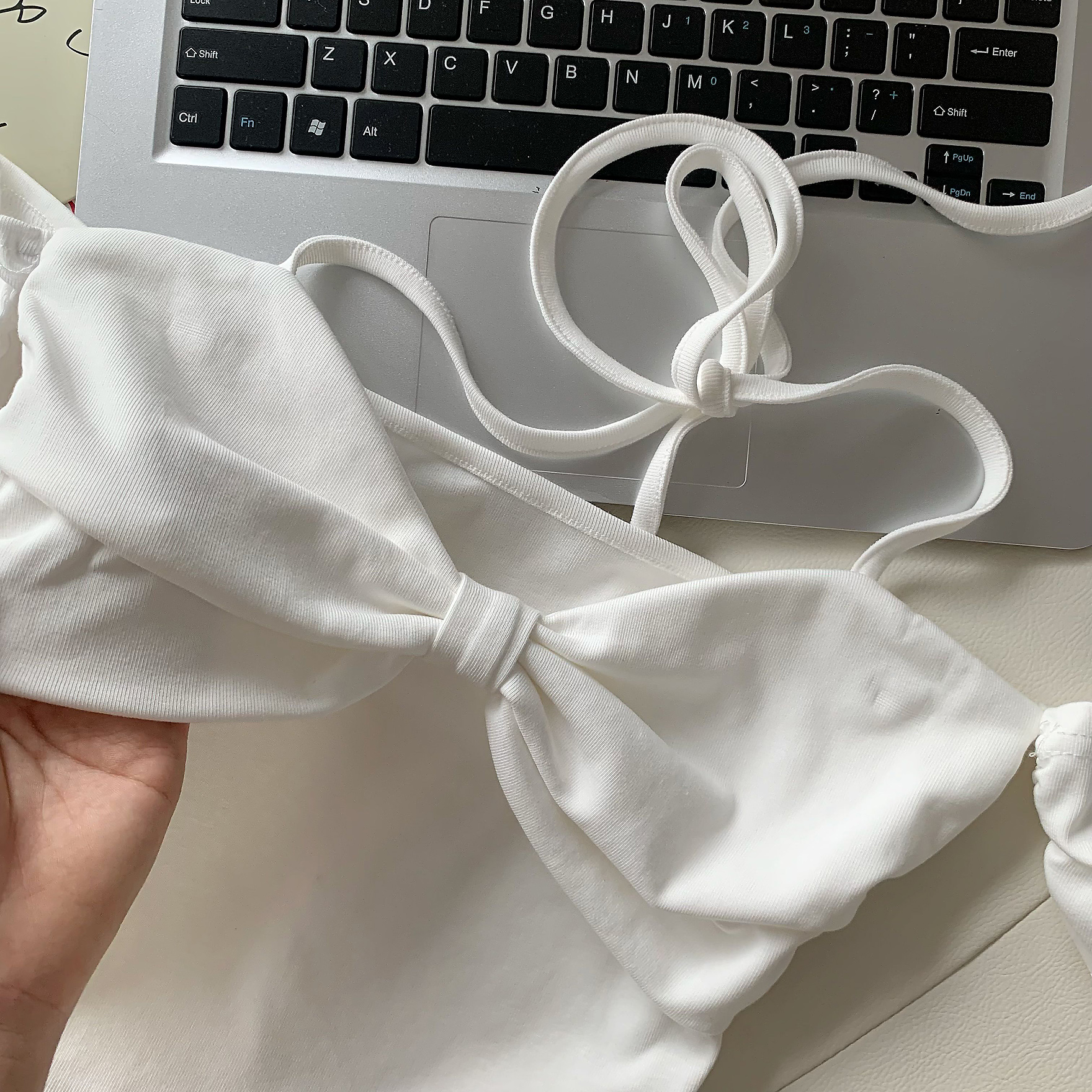 4 27 20 00chill 챠오어 화이트 치자 나무 재스민 리본 목도리 니트 몸매 가꾸기 슬림해 보이는 조끼 맨위