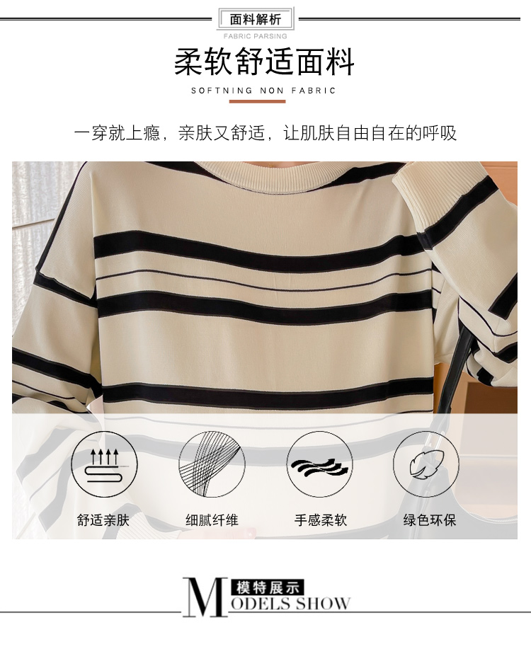 실사 출산 착용 2026 여름 드레스 새로운 스트라이프 빅 사이즈 루즈핏 연령 감소 슬림해 보이는 품격 중간 길이 드레스