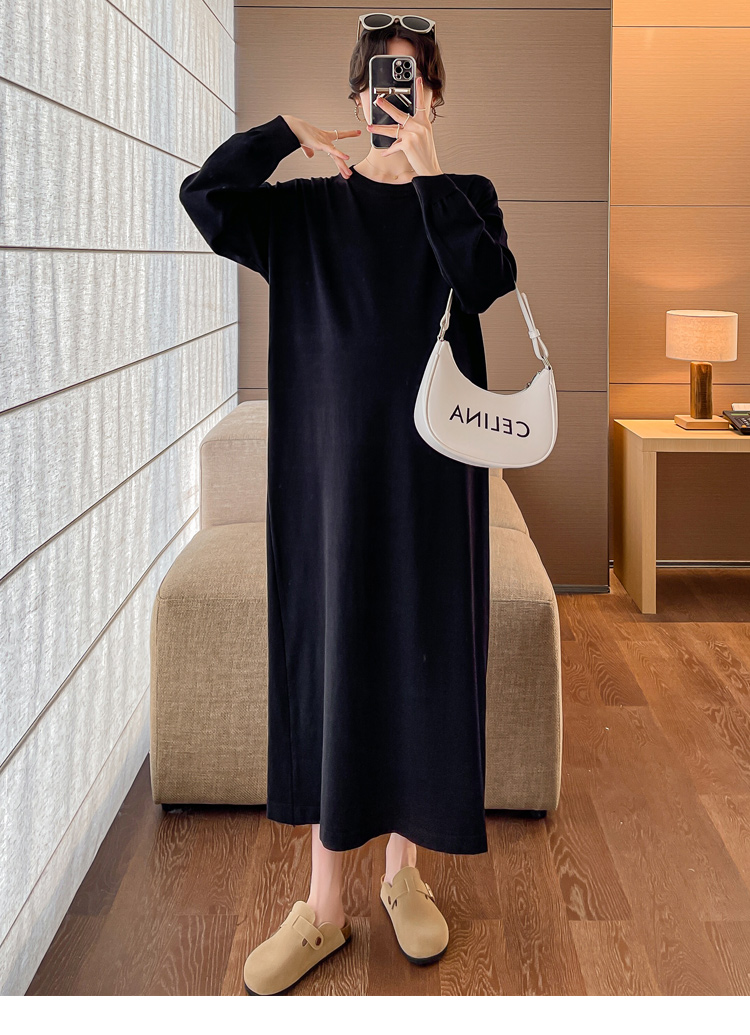 실사 높은 품질 섹션 새로운 임산부 봄 드레스 패션 롱 코트 후드티 루즈핏 슬림해 보이는 캐주얼 후드 드레스