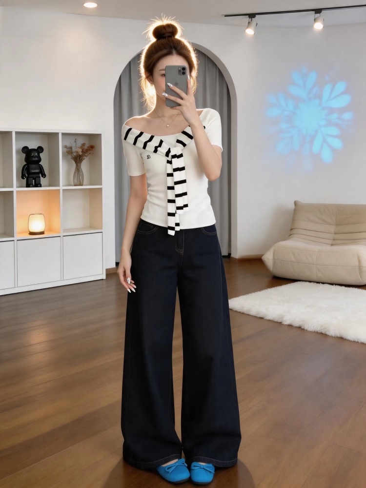 한 부서 세트 여성 2026 여름 디자인 센스 슈퍼 잘 생긴 허리 수축 슬림해 보이는 반팔 맨위 청바지 두 조각 여성 세트