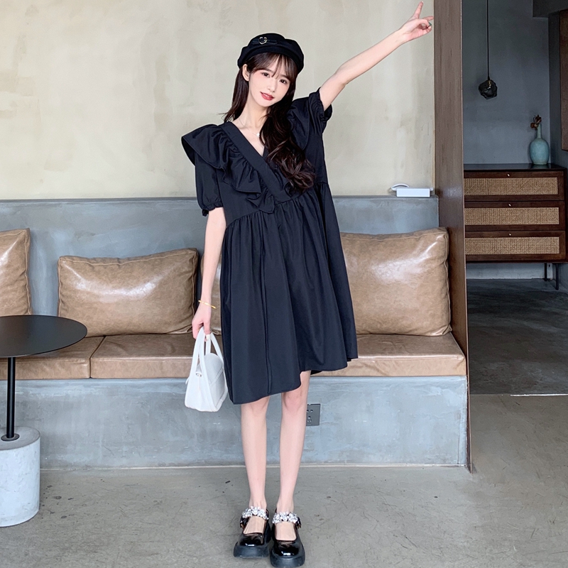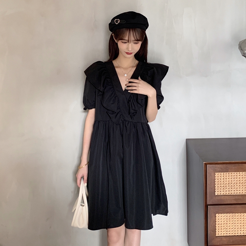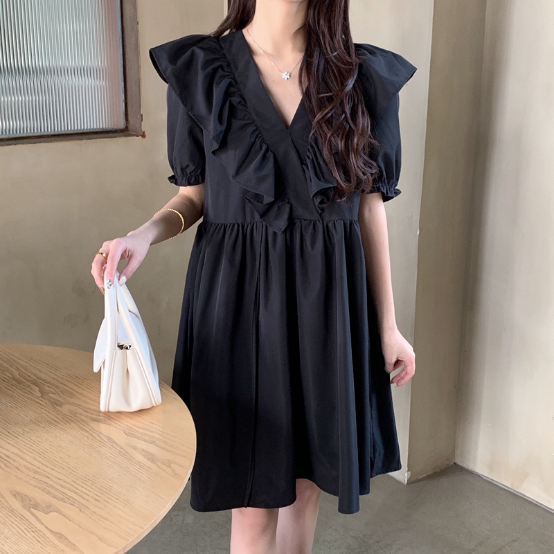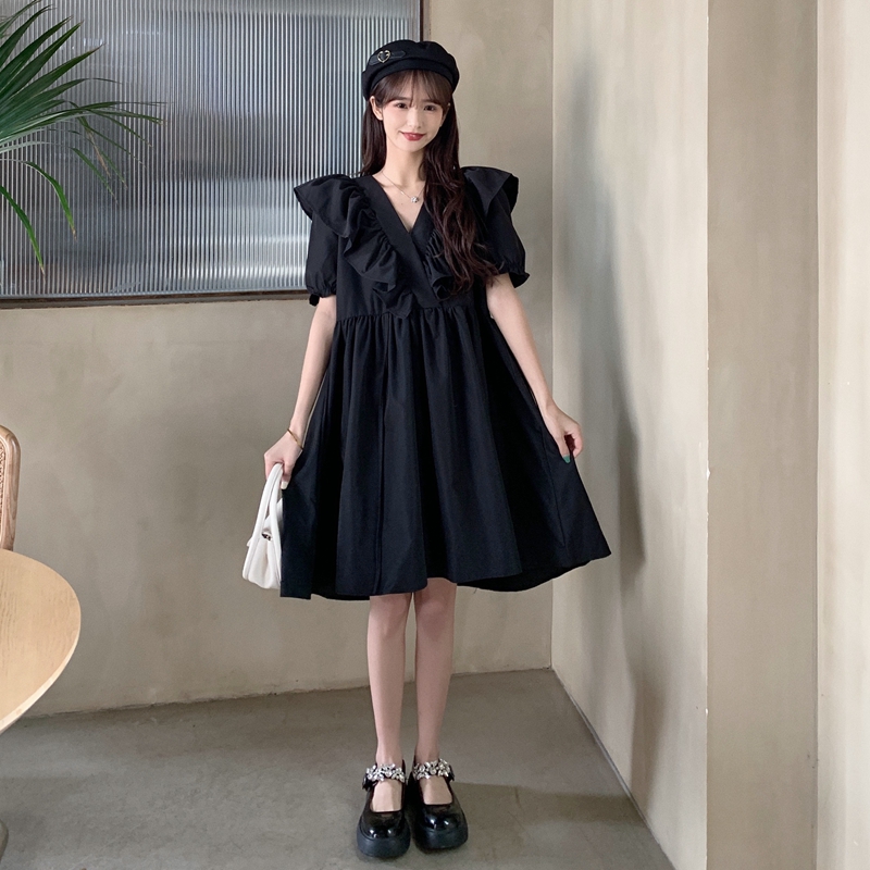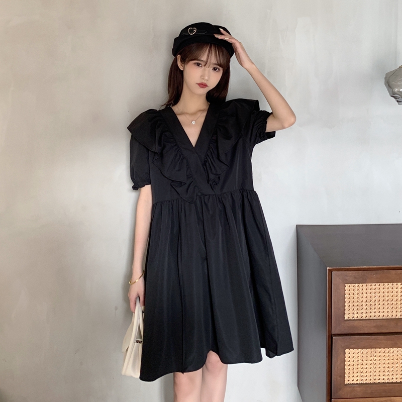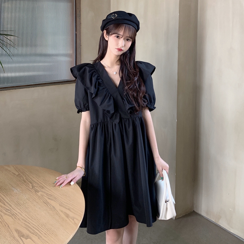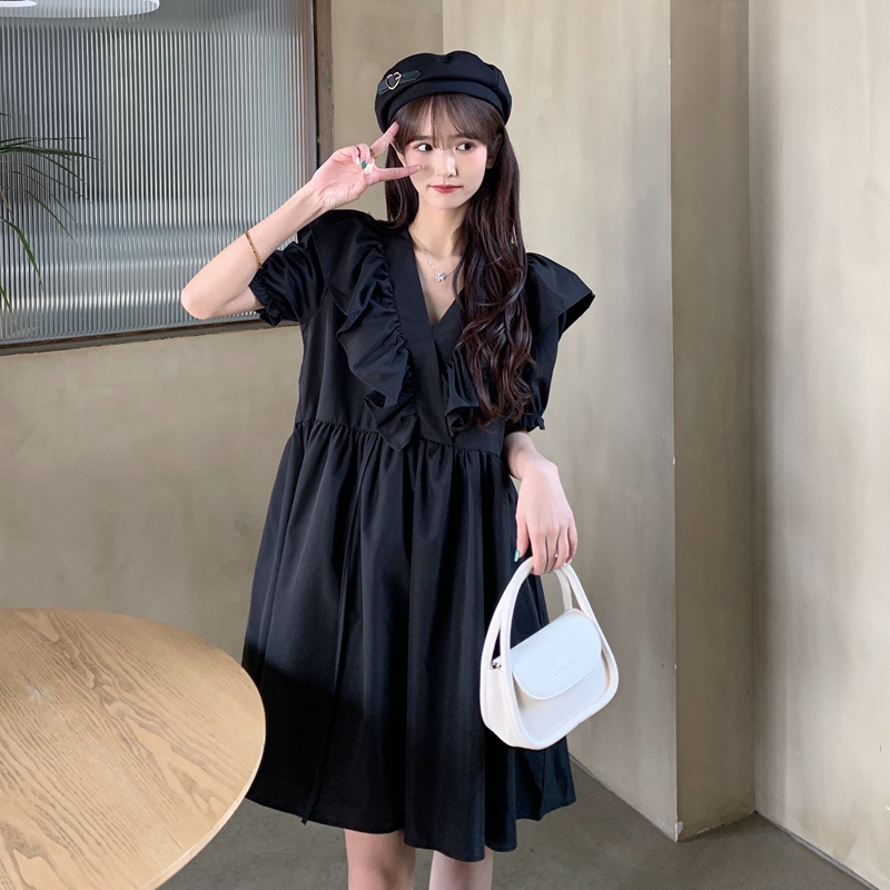 실사 여름 빅 사이즈 지방 mm 드레스 수 있습니다. 달콤한 수 있습니다. 소금 치마 거품 소매 트임 작은 검은 드레스 m-4xl200 근