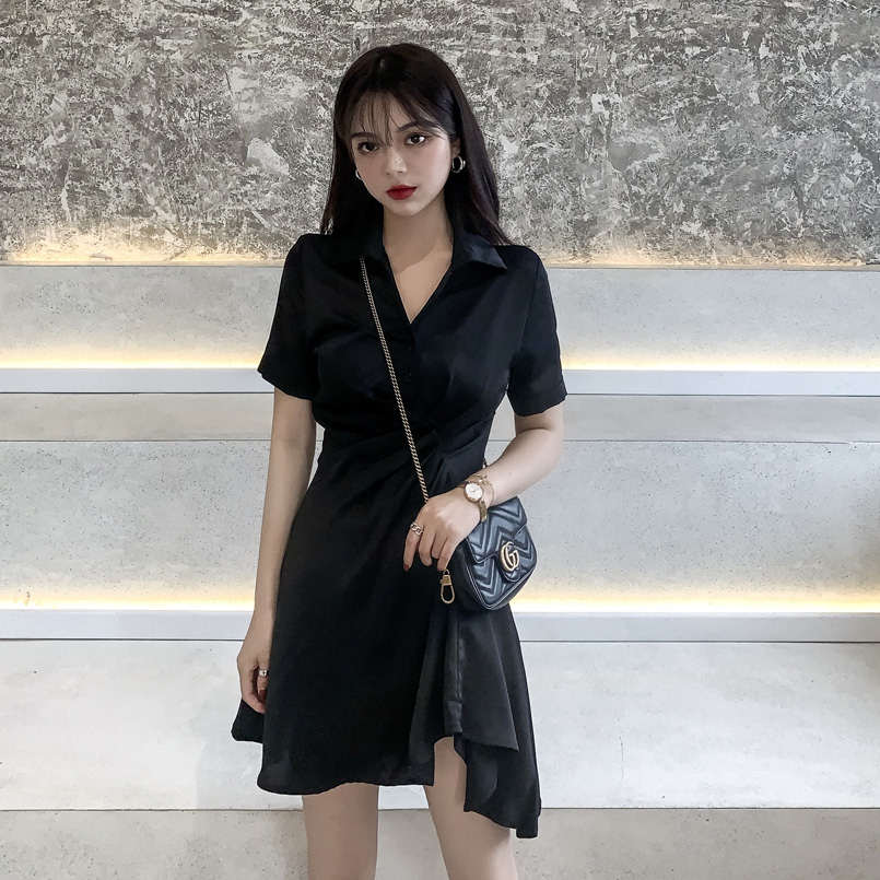 실사 여름 빅 사이즈 지방 mm 드레스 수 있습니다. 달콤한 수 있습니다. 소금 치마 거품 소매 트임 작은 검은 드레스 m-4xl200 근