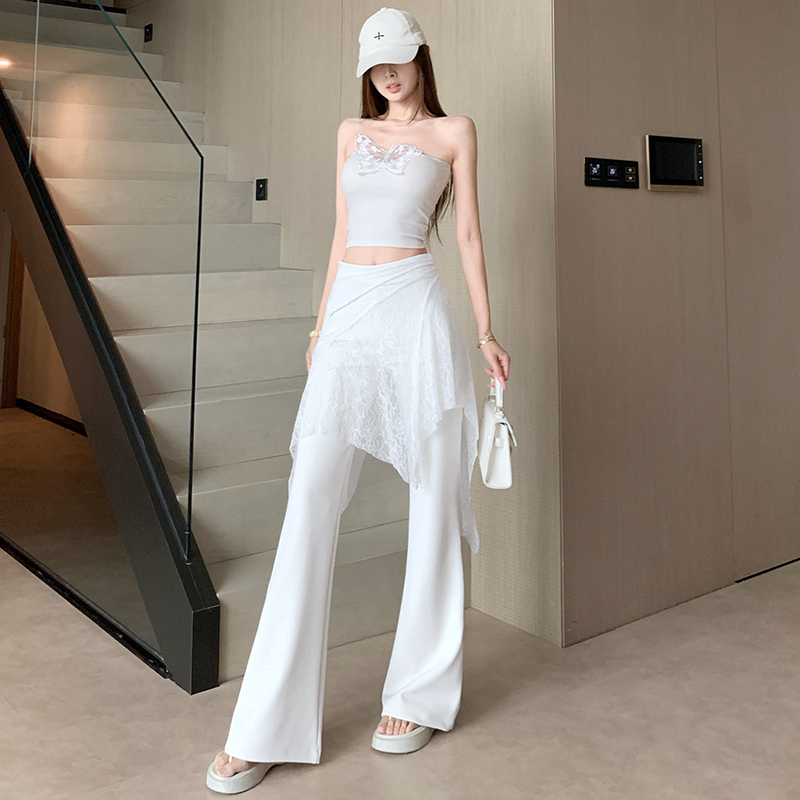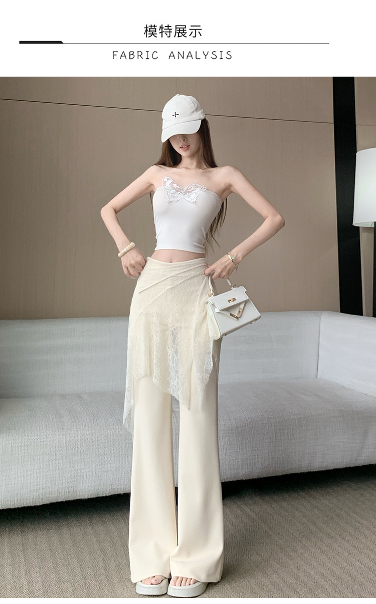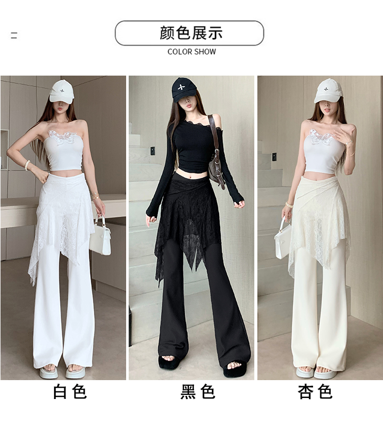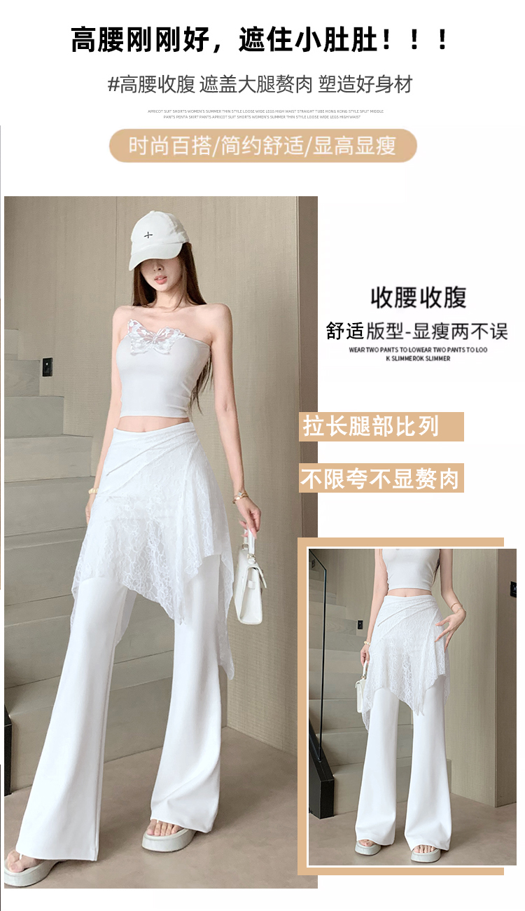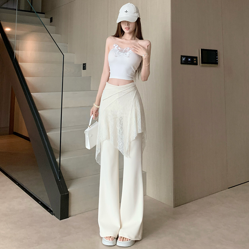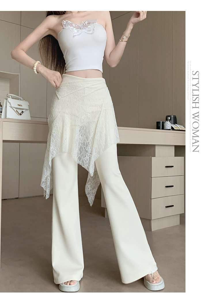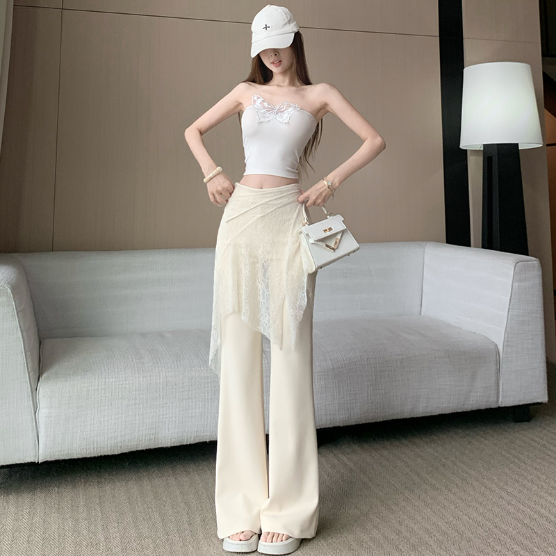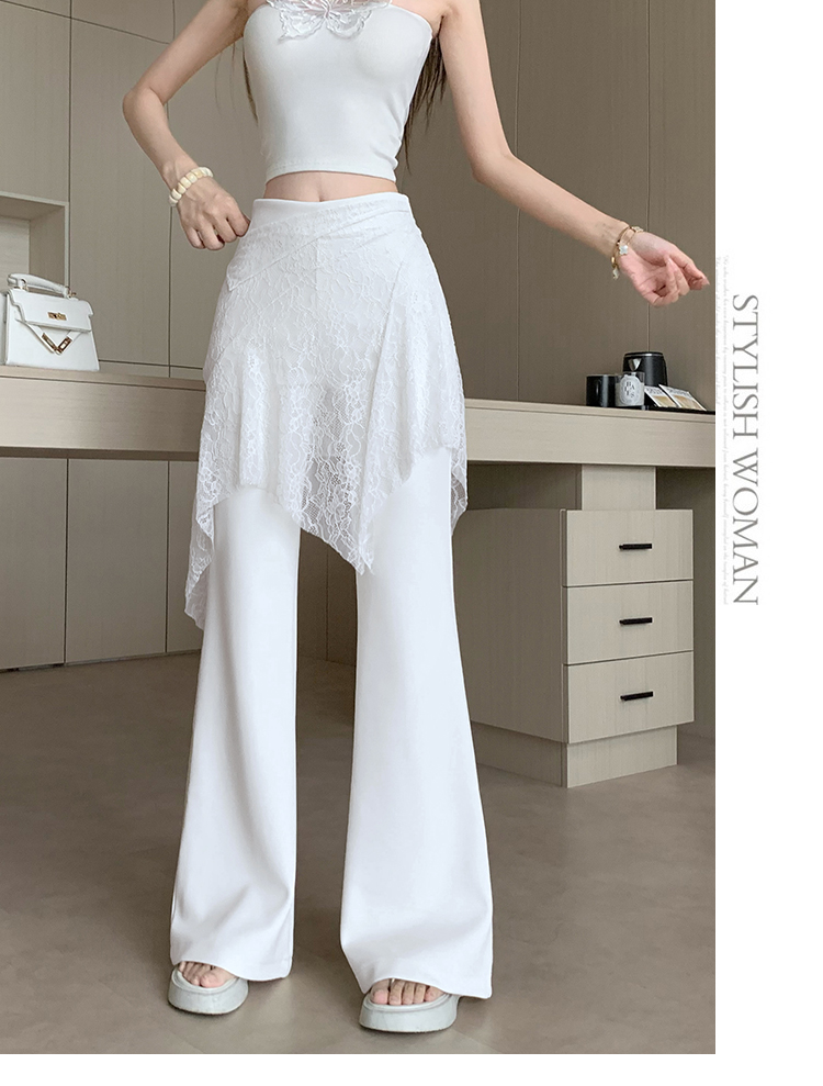 화이트 레이스 방귀 커튼 부츠컷 바지 여성 여름 얇은 스타일 페이크 레이어드 패치워크 하이웨이스트 슬림해 보이는 몸매 가꾸기 바닥 청소 캐주얼 바지