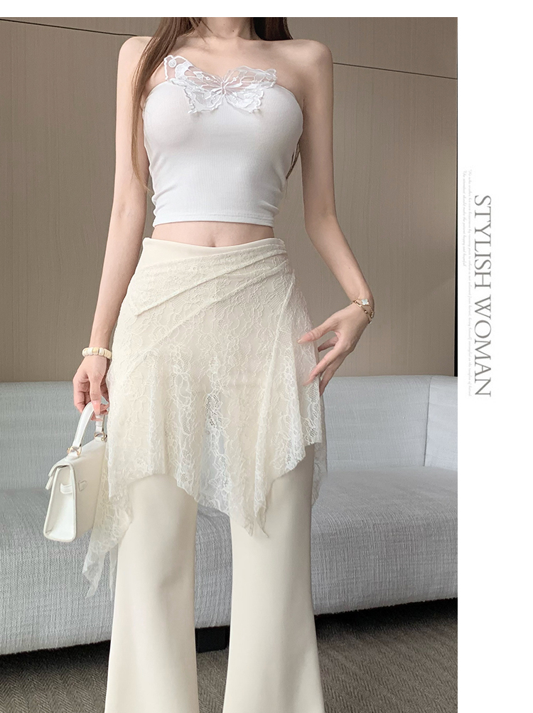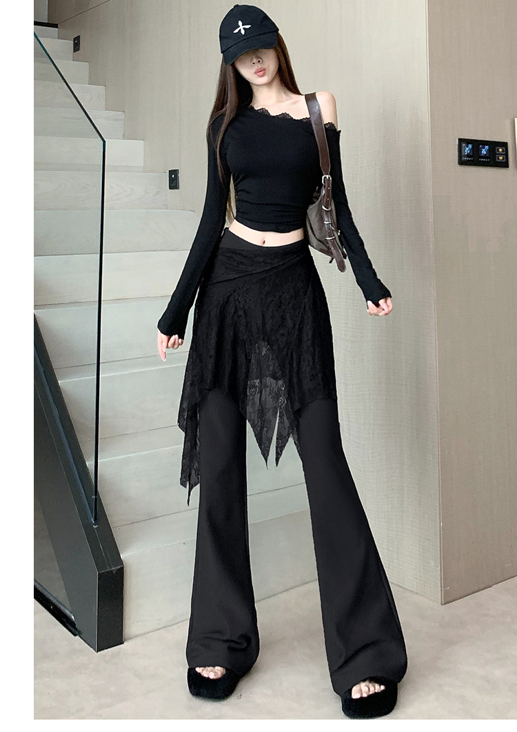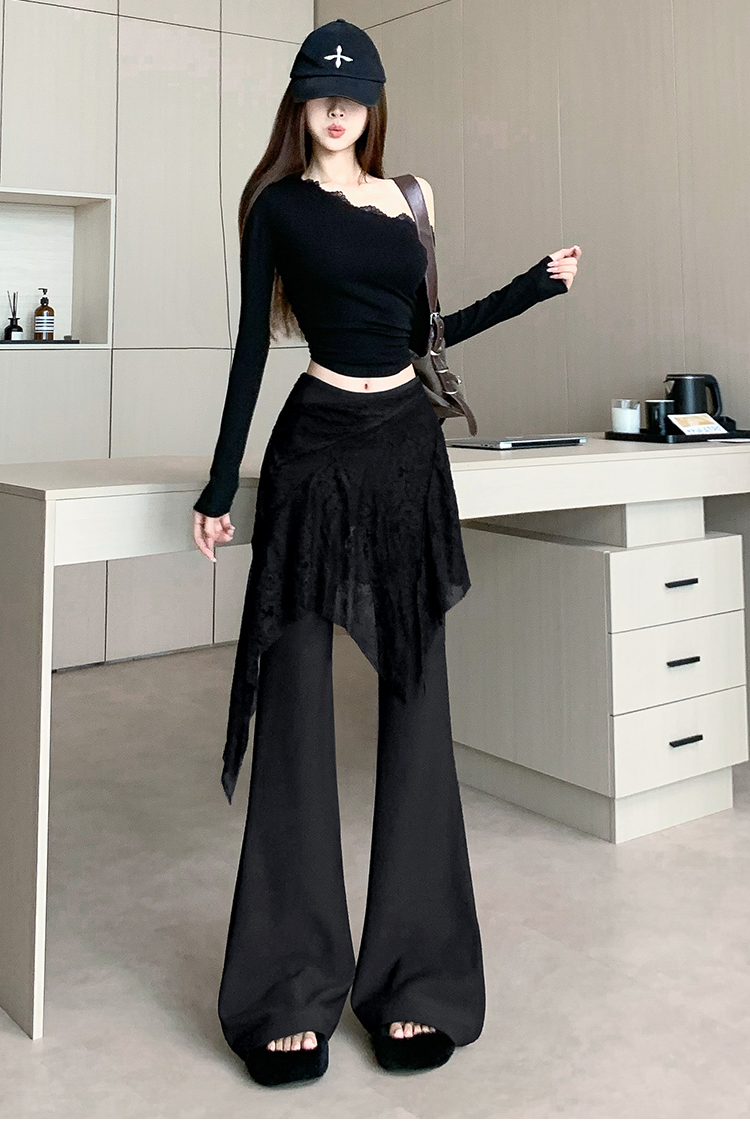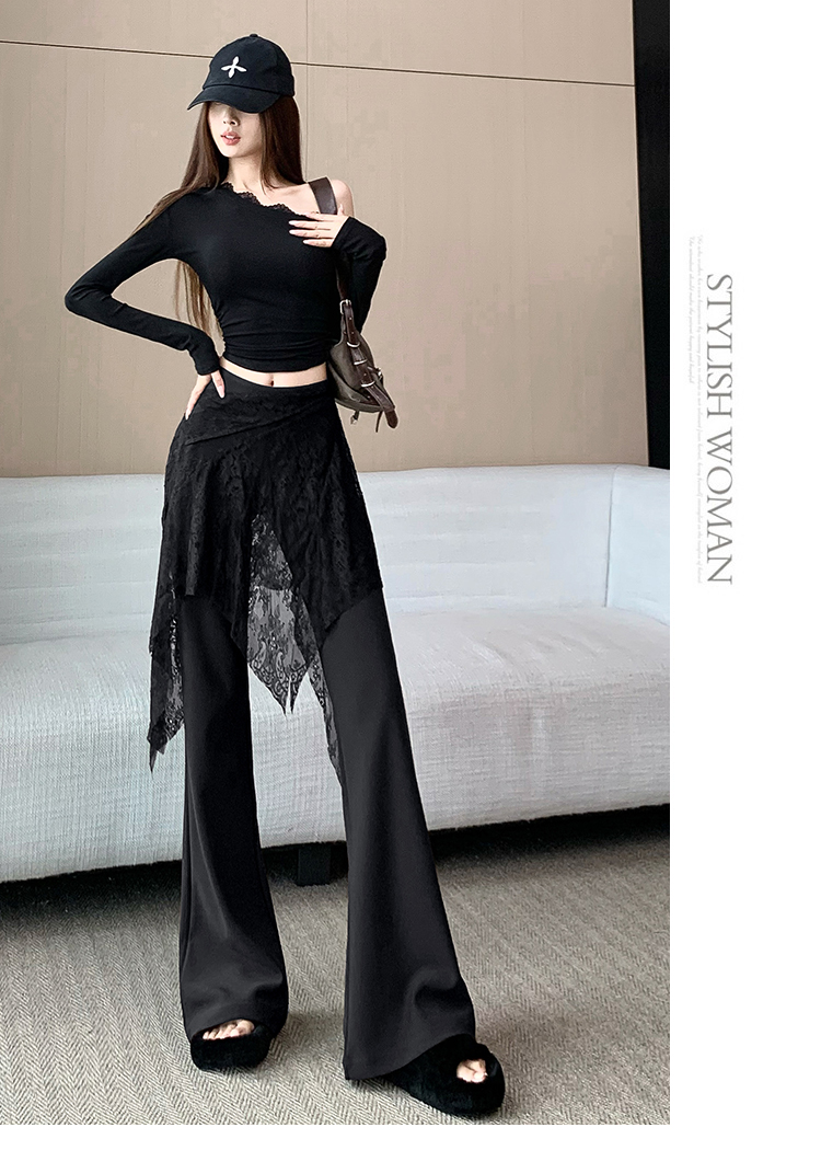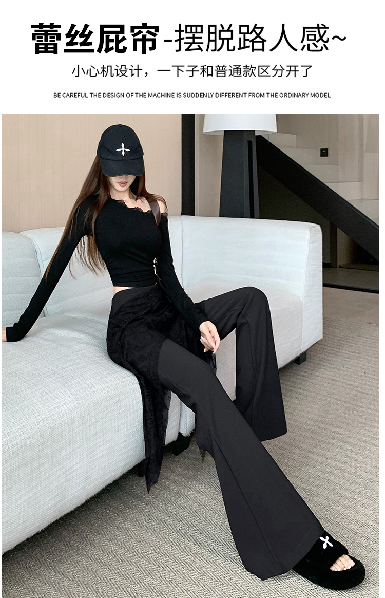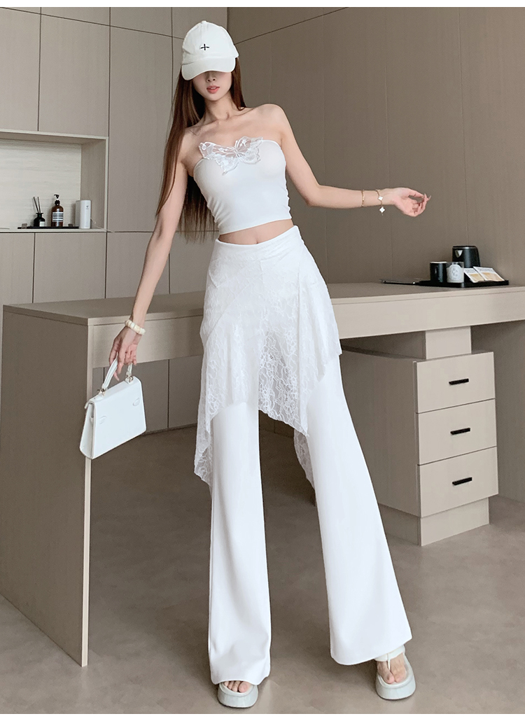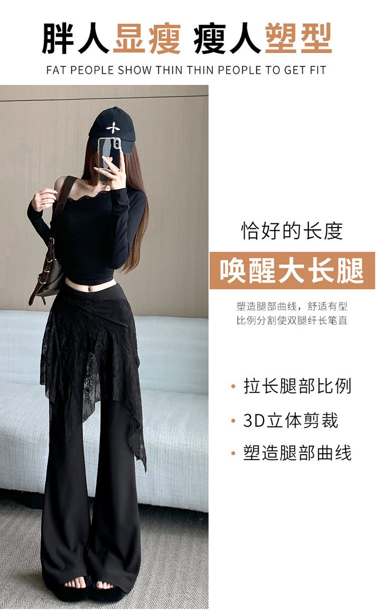 화이트 레이스 방귀 커튼 부츠컷 바지 여성 여름 얇은 스타일 페이크 레이어드 패치워크 하이웨이스트 슬림해 보이는 몸매 가꾸기 바닥 청소 캐주얼 바지