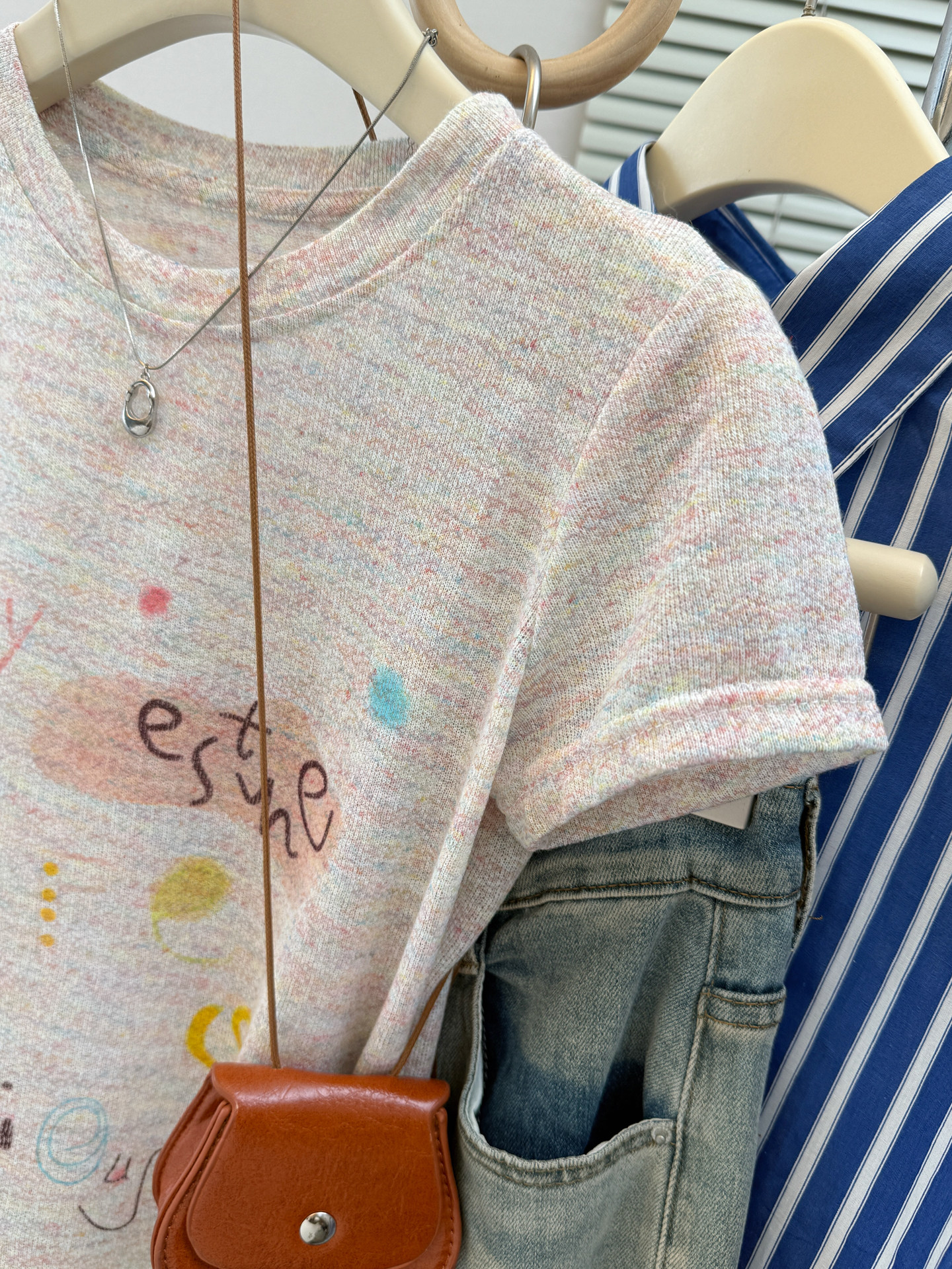 21 순면 210 그램 2026 년 봄 여름 드레스 반팔 티셔츠 여성 한국 스타일 프린트
