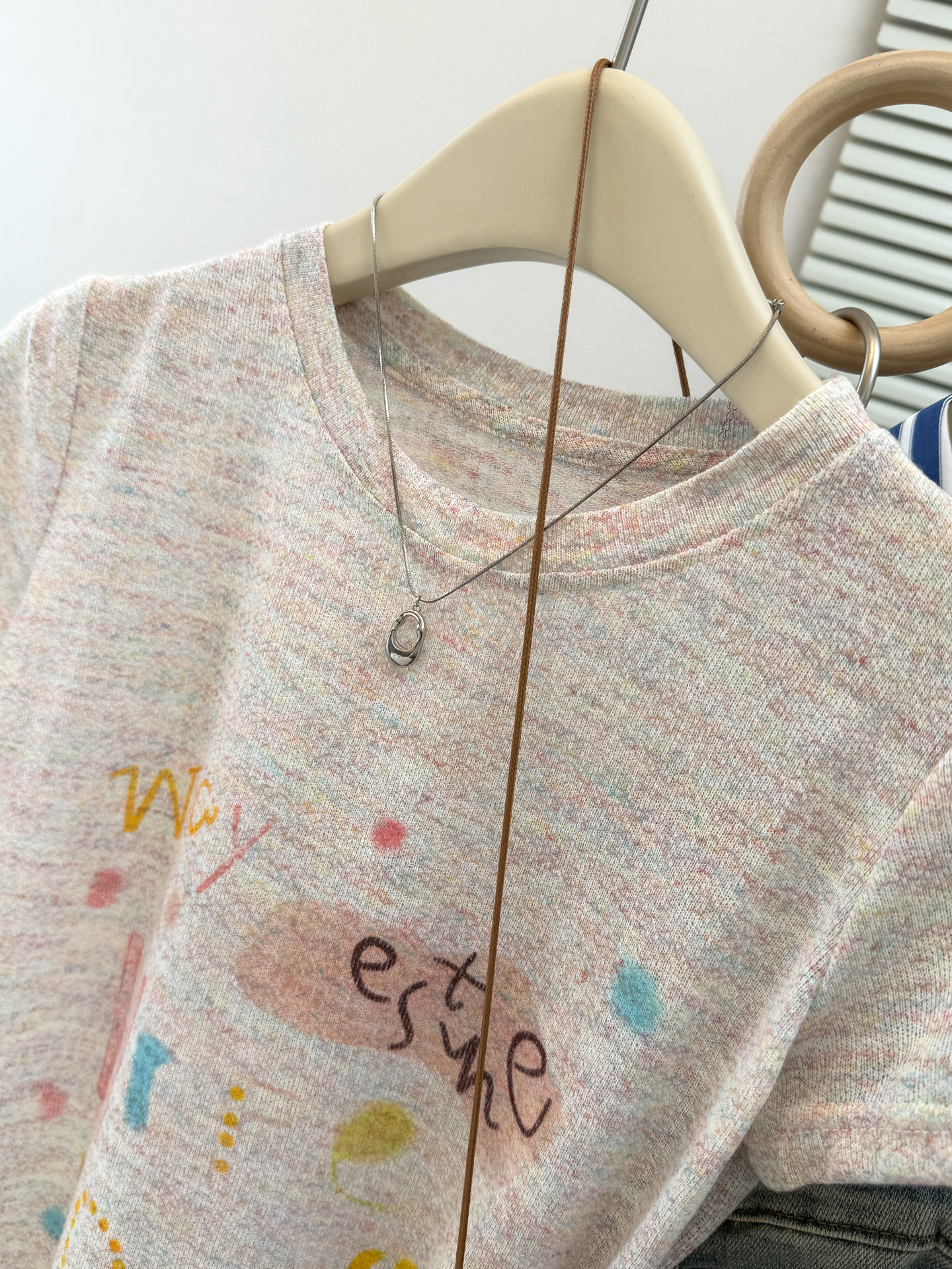 실사 레트로 페인팅 낙서 알파벳 반팔 티셔츠 여성 여름 디자인 센스 Chic 몸매 가꾸기 슬림해 보이는 다용도 맨위