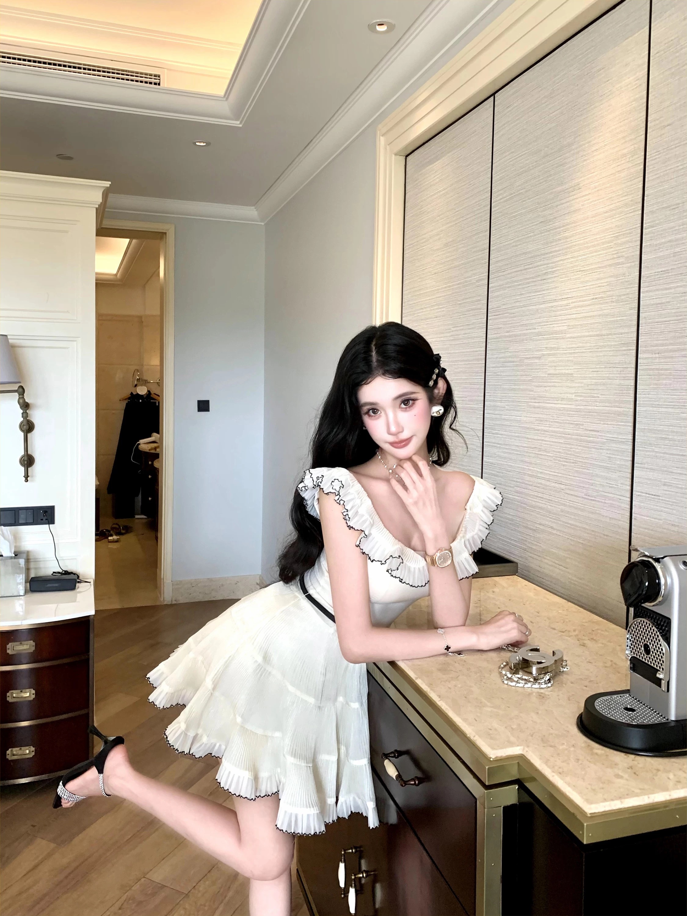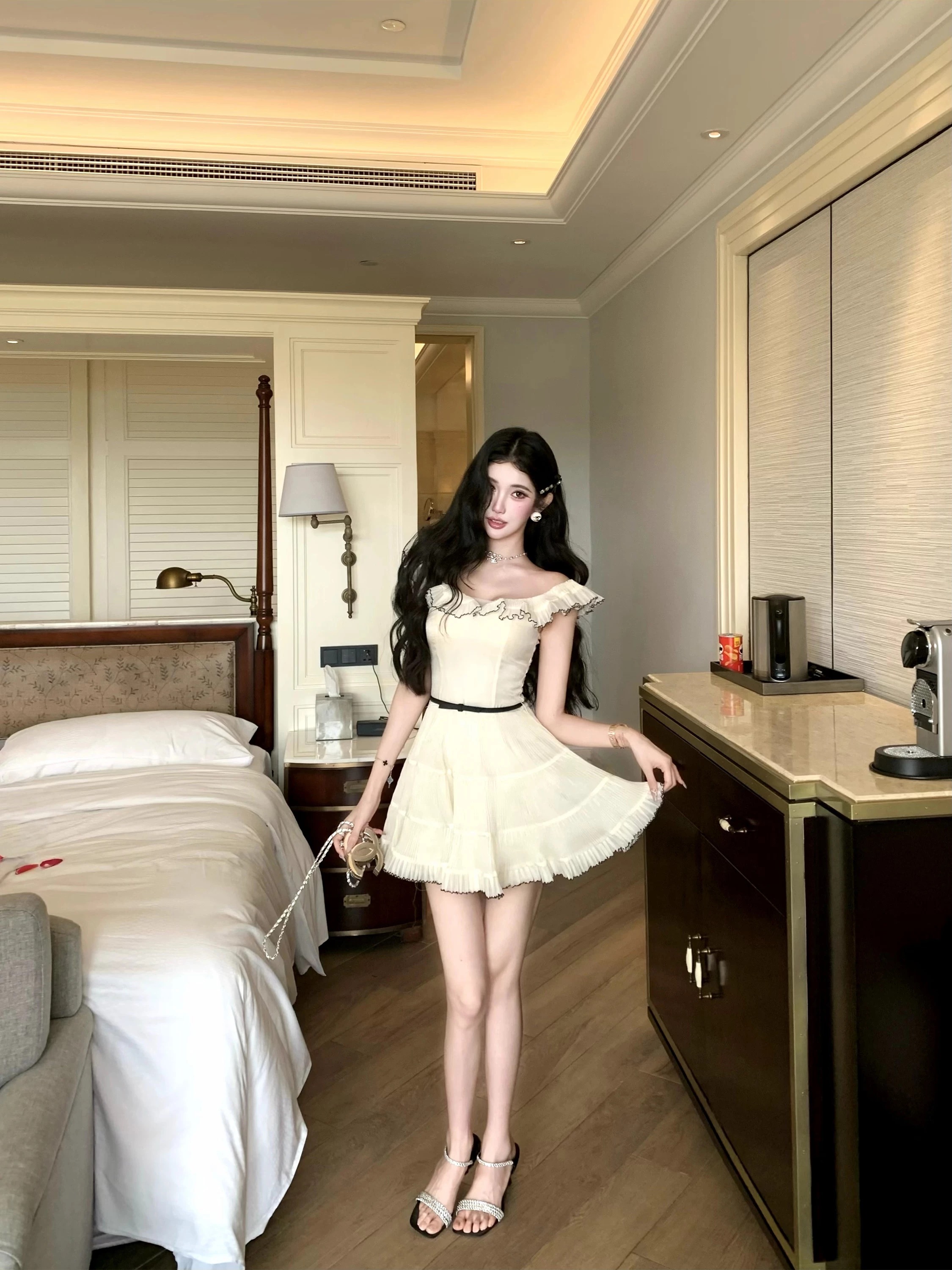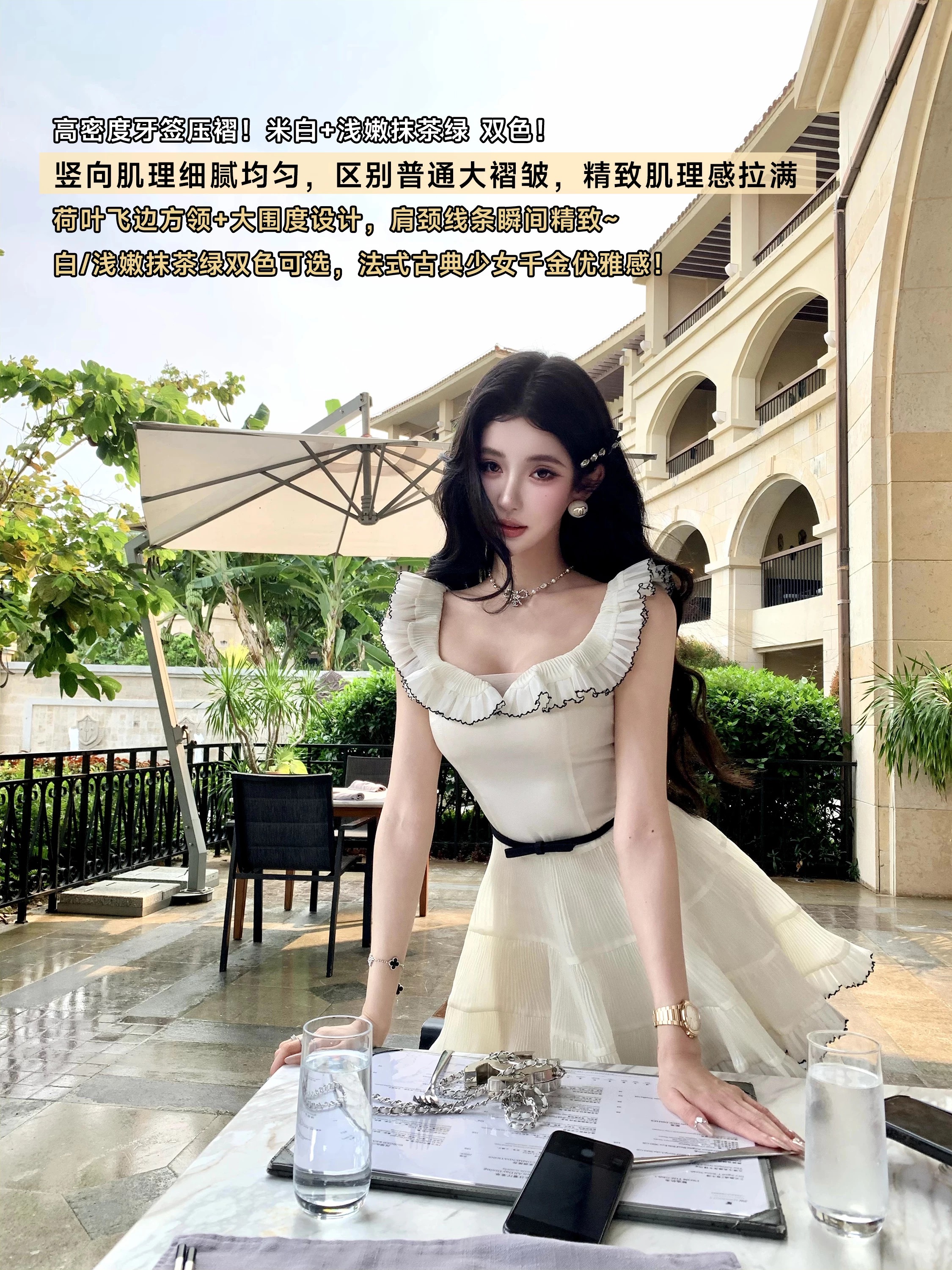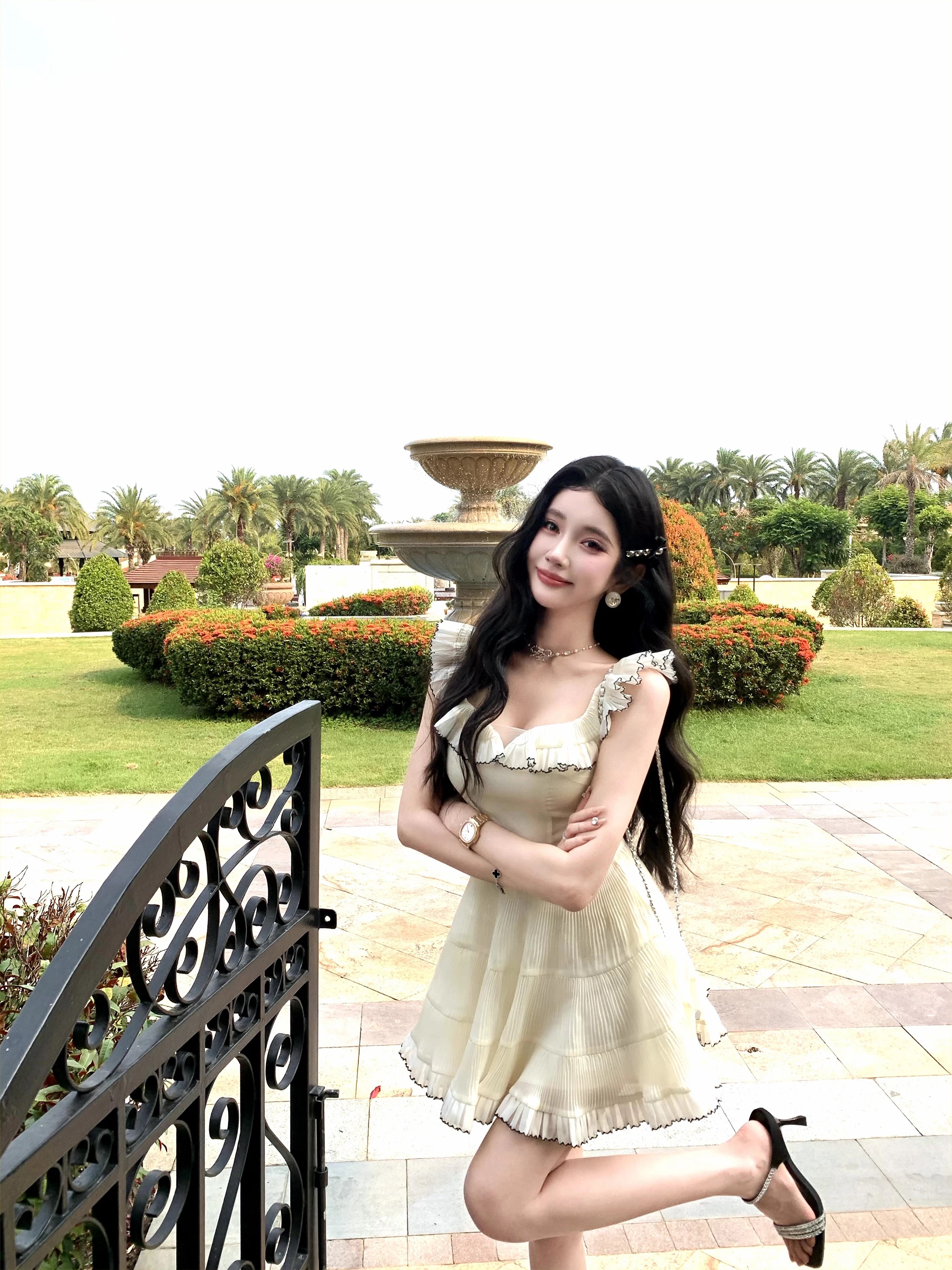 자오 이슬 생각하기 같은 단락 레이스 자수 천 금빛 바람 프랑스식 우아함 허리 수축 공주 드레스 여름 퍼프 슬립 드레스