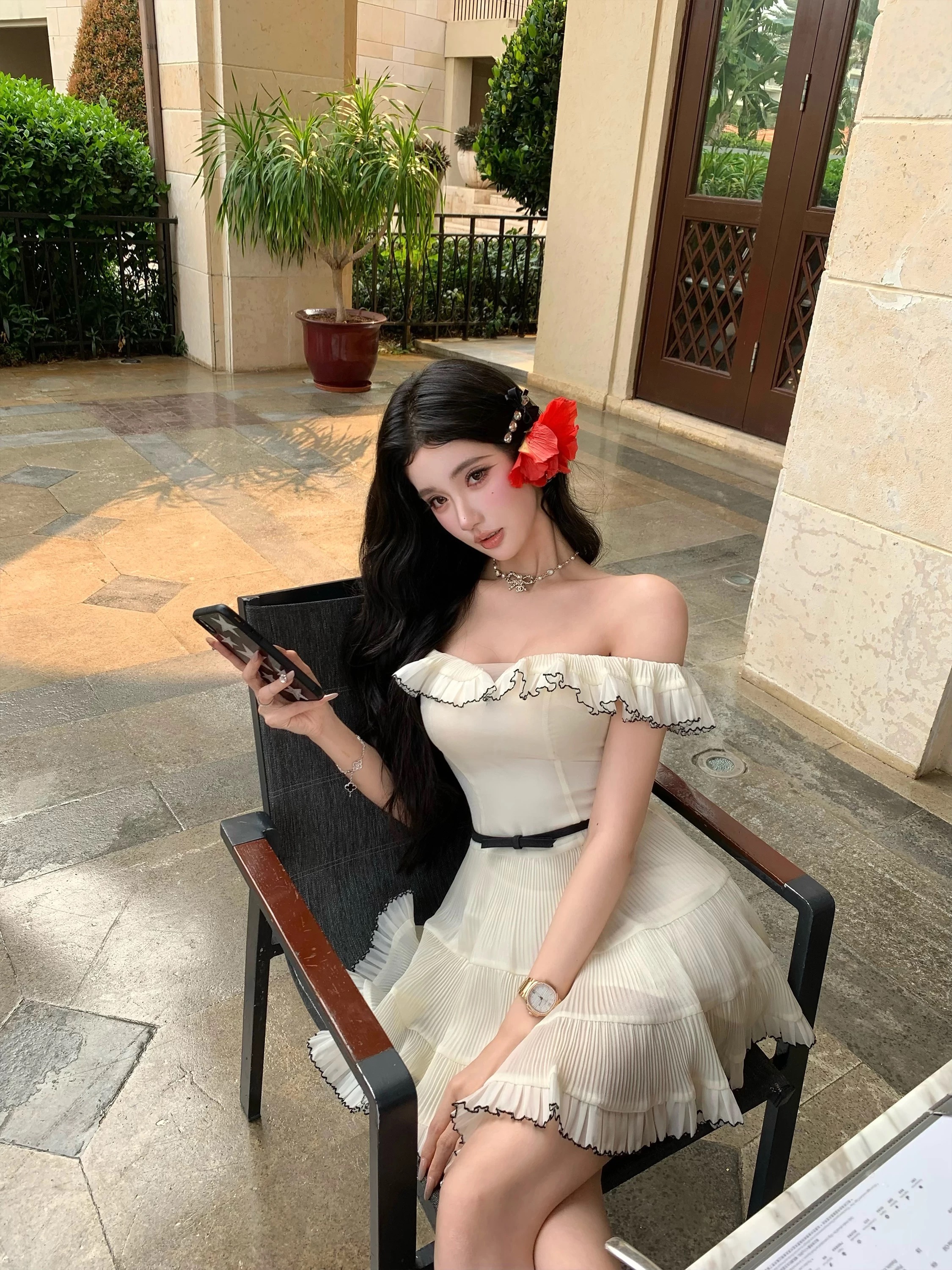 프랑스식 아름다운 프릴 꽃무늬 슬립 여성 드레스 여름 해변가 휴가 품격 몸매 가꾸기 타이트 스커트 길다 치마