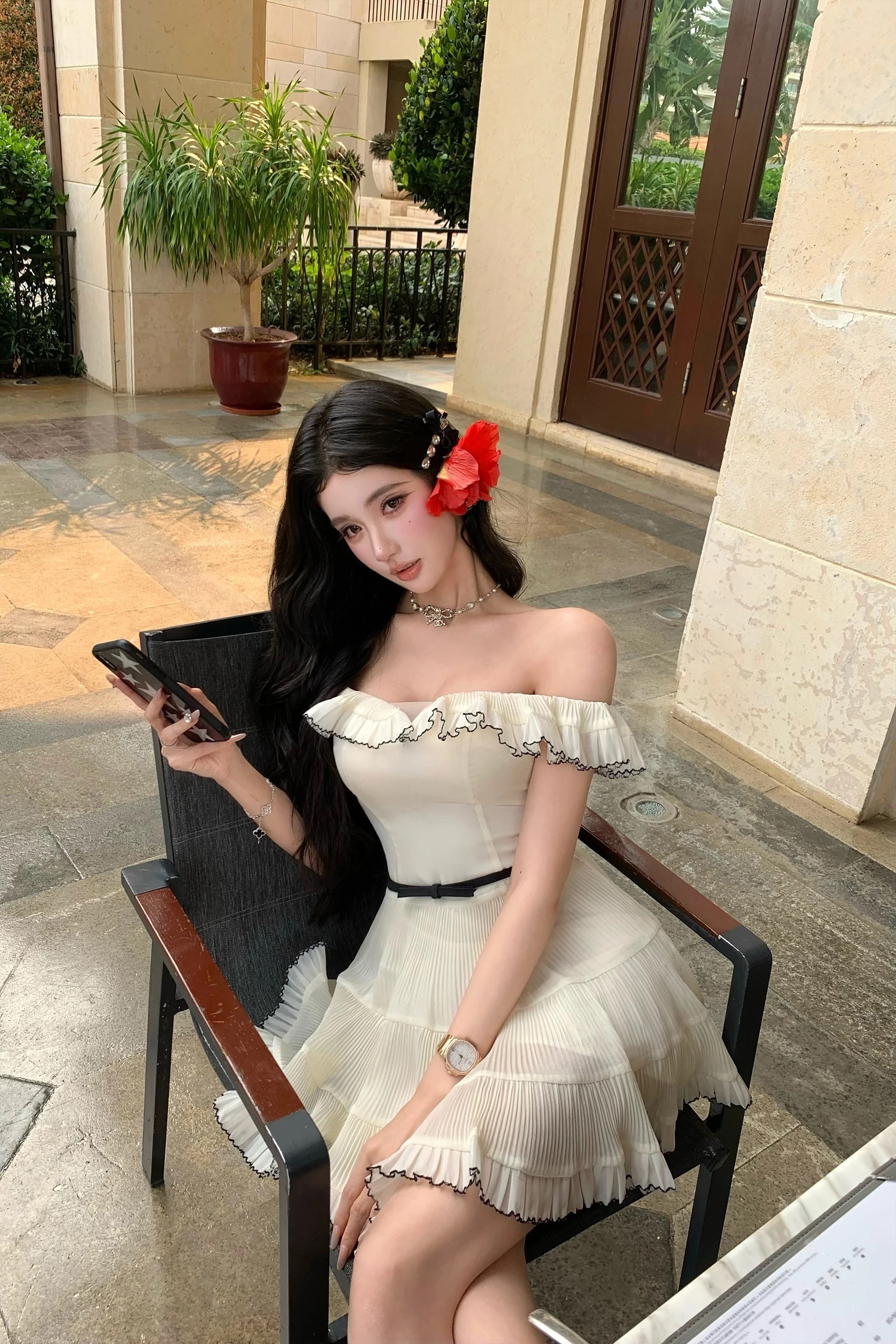 angelicaka 맞춤 프랑스식 오프숄더 거품 소매 화이트 달콤함 레이스 쇼트 스타일 쉬폰 톱