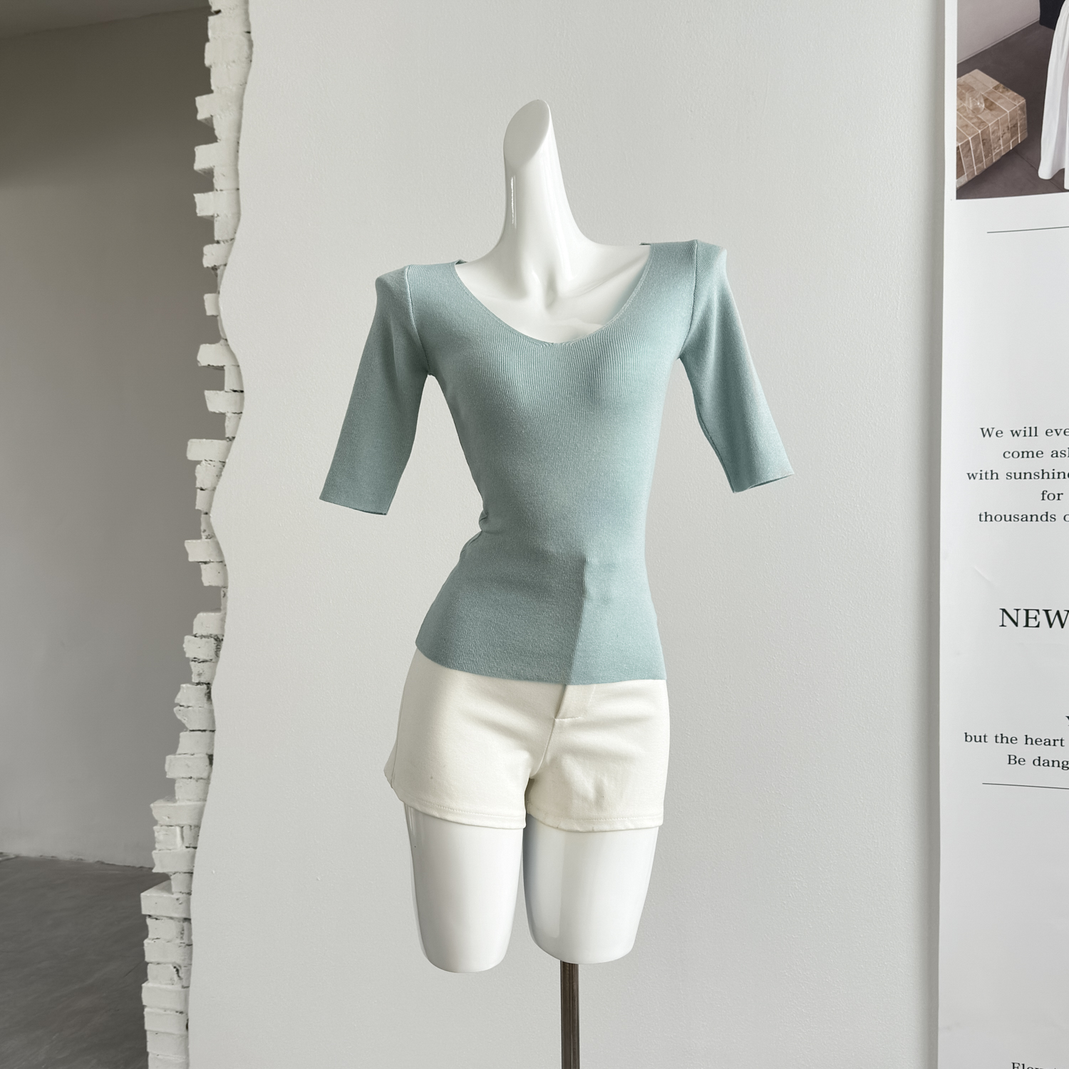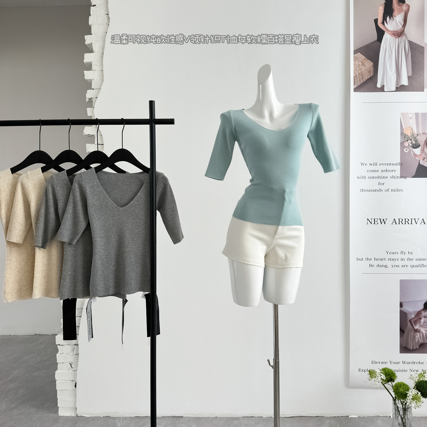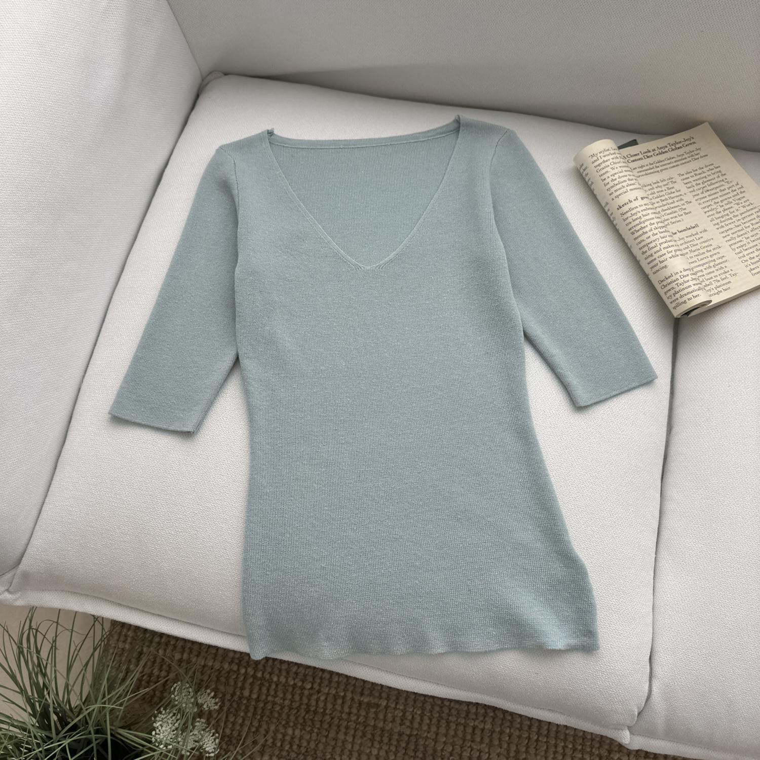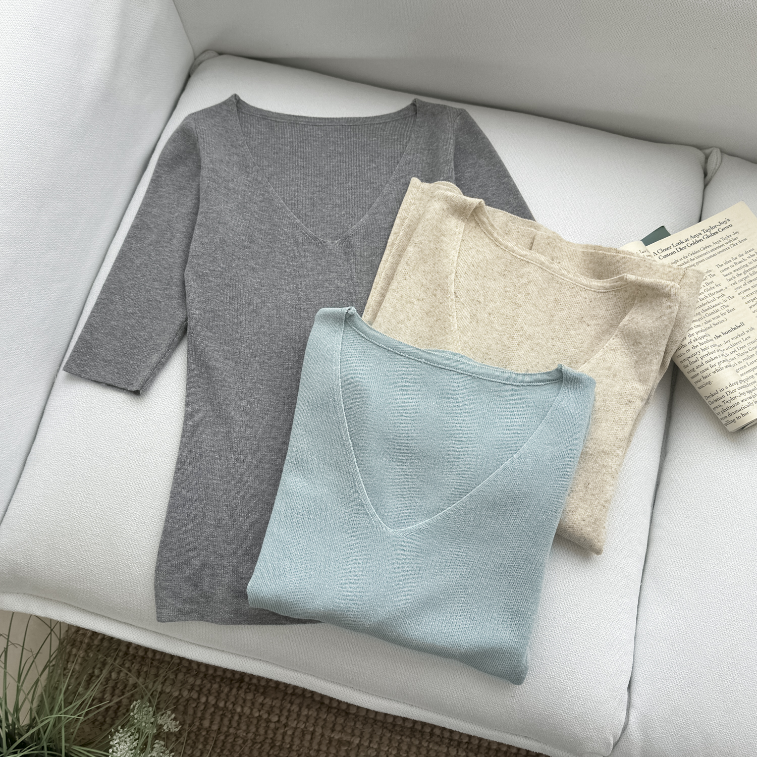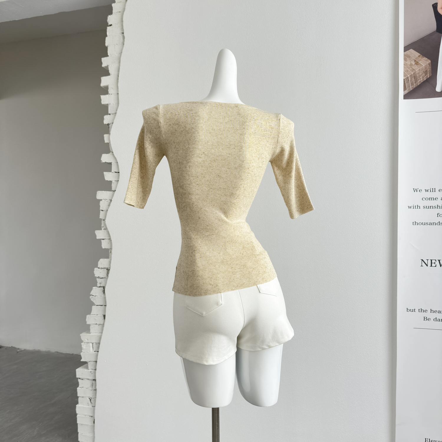 jmshop 부드러운 보이는 순수한 욕망 섹시함 V넥 주간 실크 아마 니트 티셔츠 여성 부드러운 찹쌀 다용도 슬림해 보이는 맨위