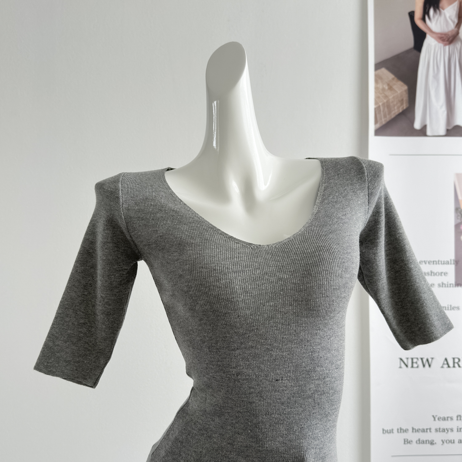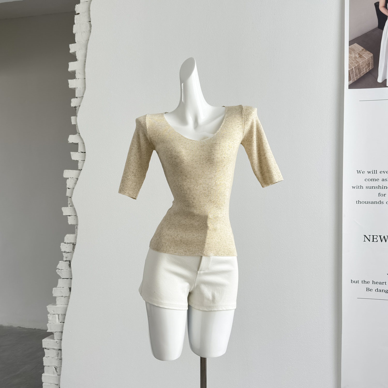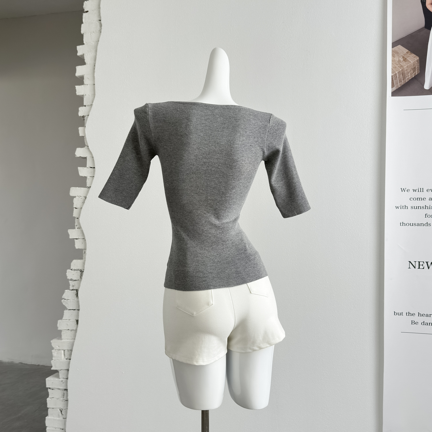 fart shop 클래식 재현 라이 경기 서울 빅 브이 넥 중간 소매 마이크로 루즈핏 티셔츠 여성 봄 여름 허리 수축 맨위