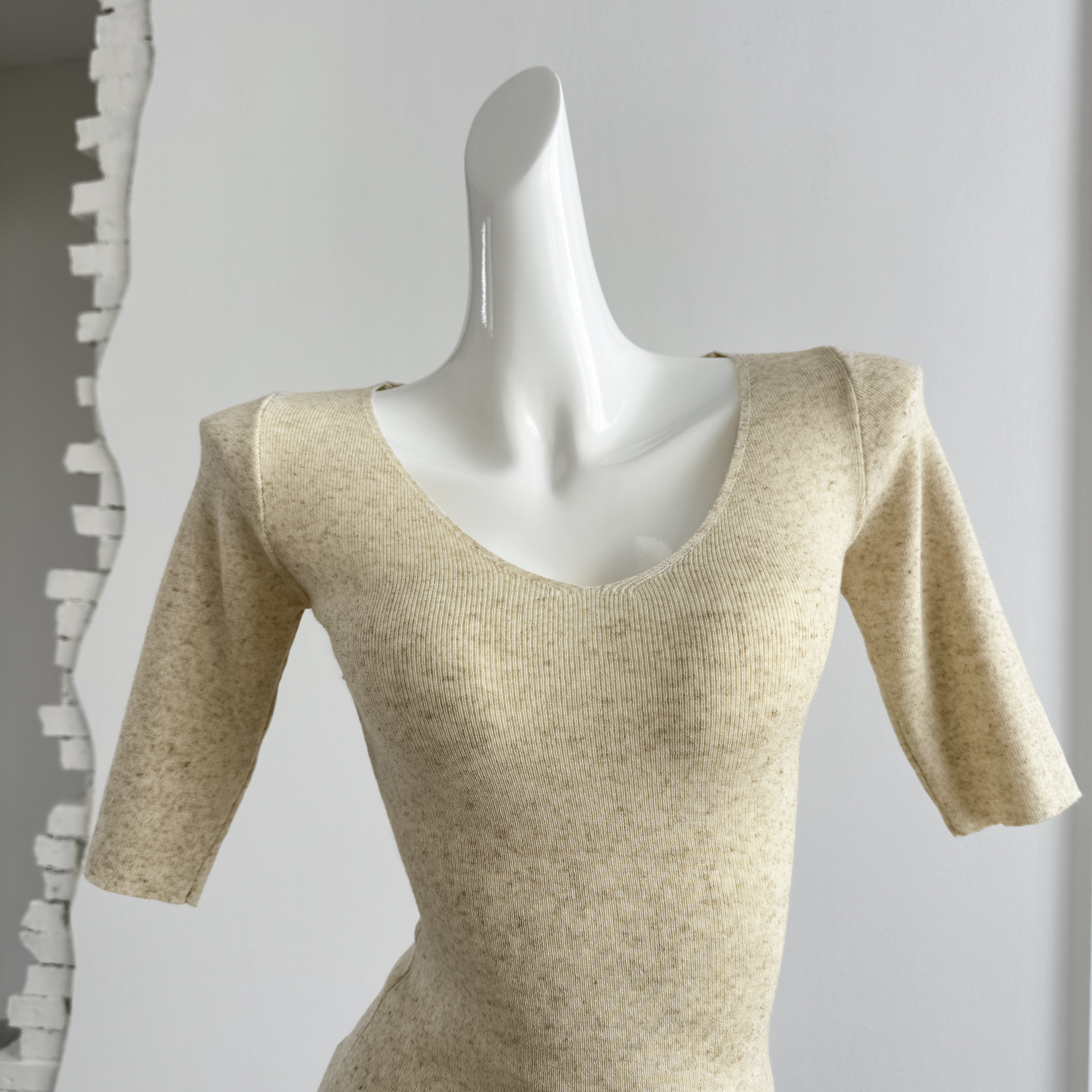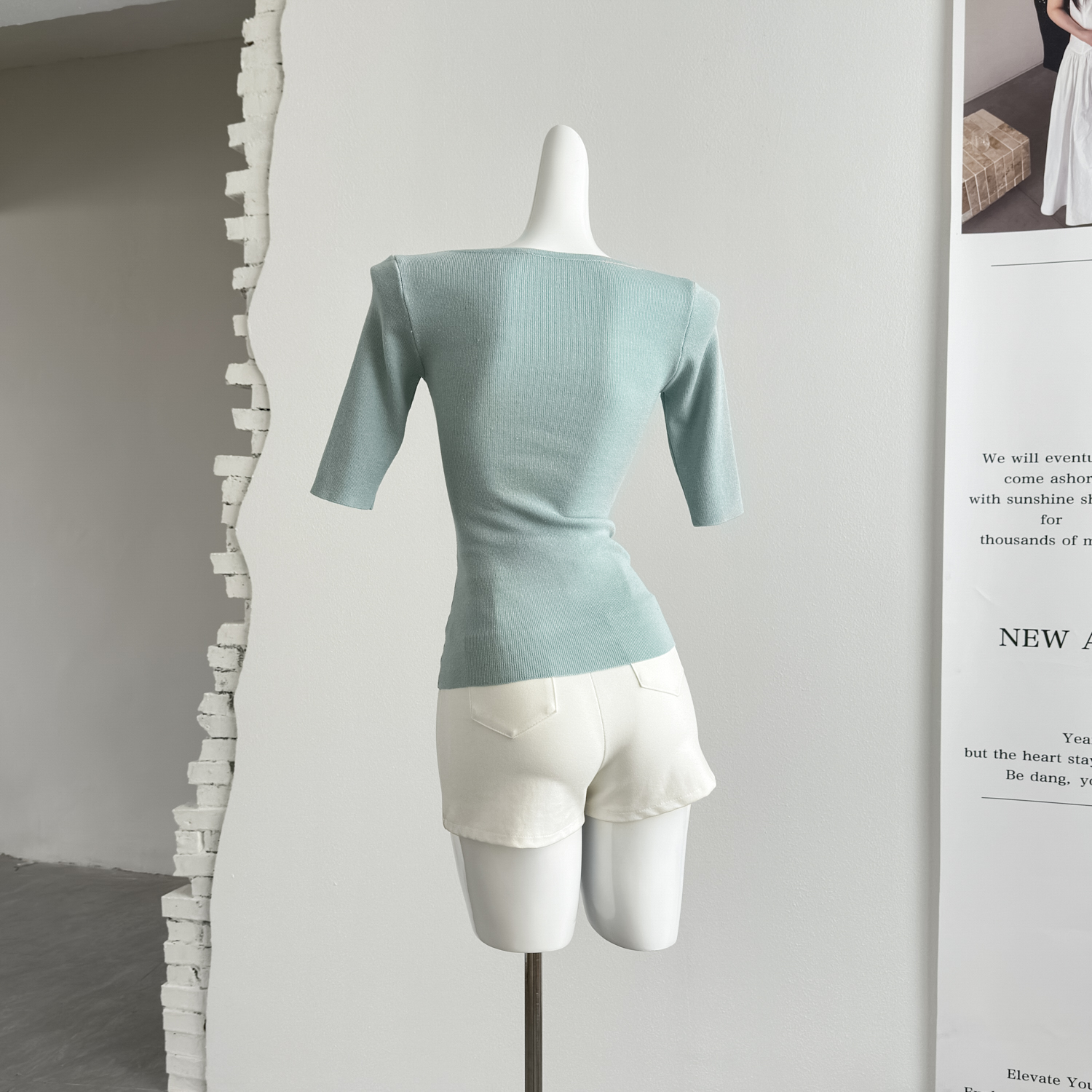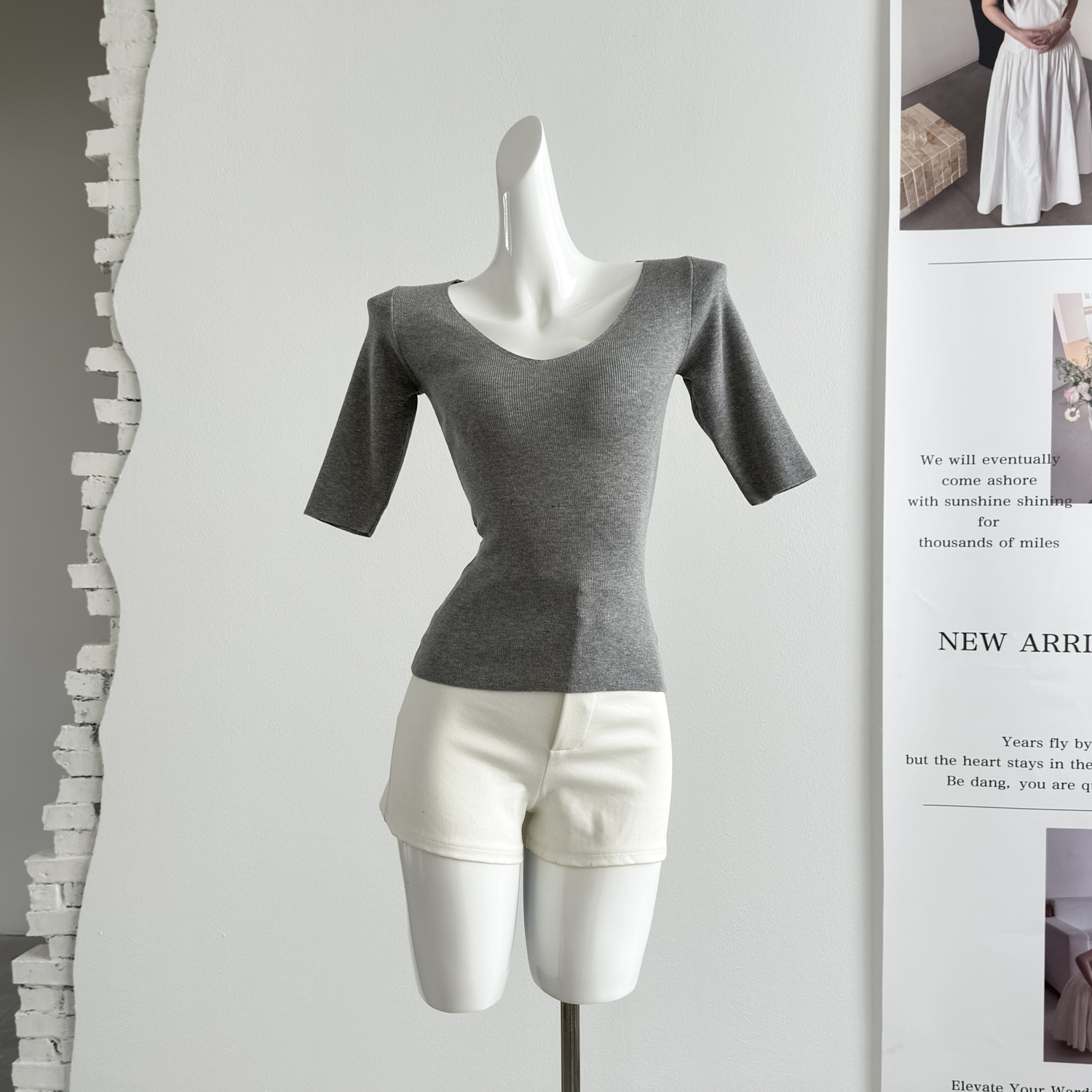 fart shop 클래식 재현 라이 경기 서울 빅 브이 넥 중간 소매 마이크로 루즈핏 티셔츠 여성 봄 여름 허리 수축 맨위