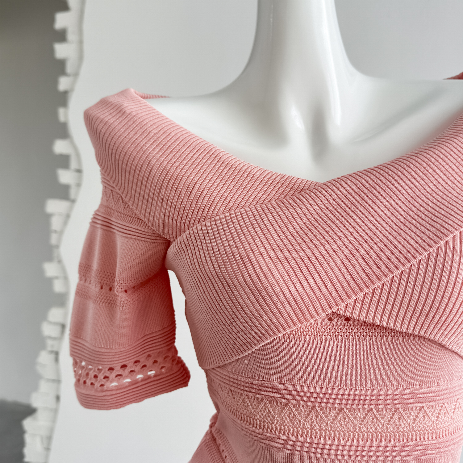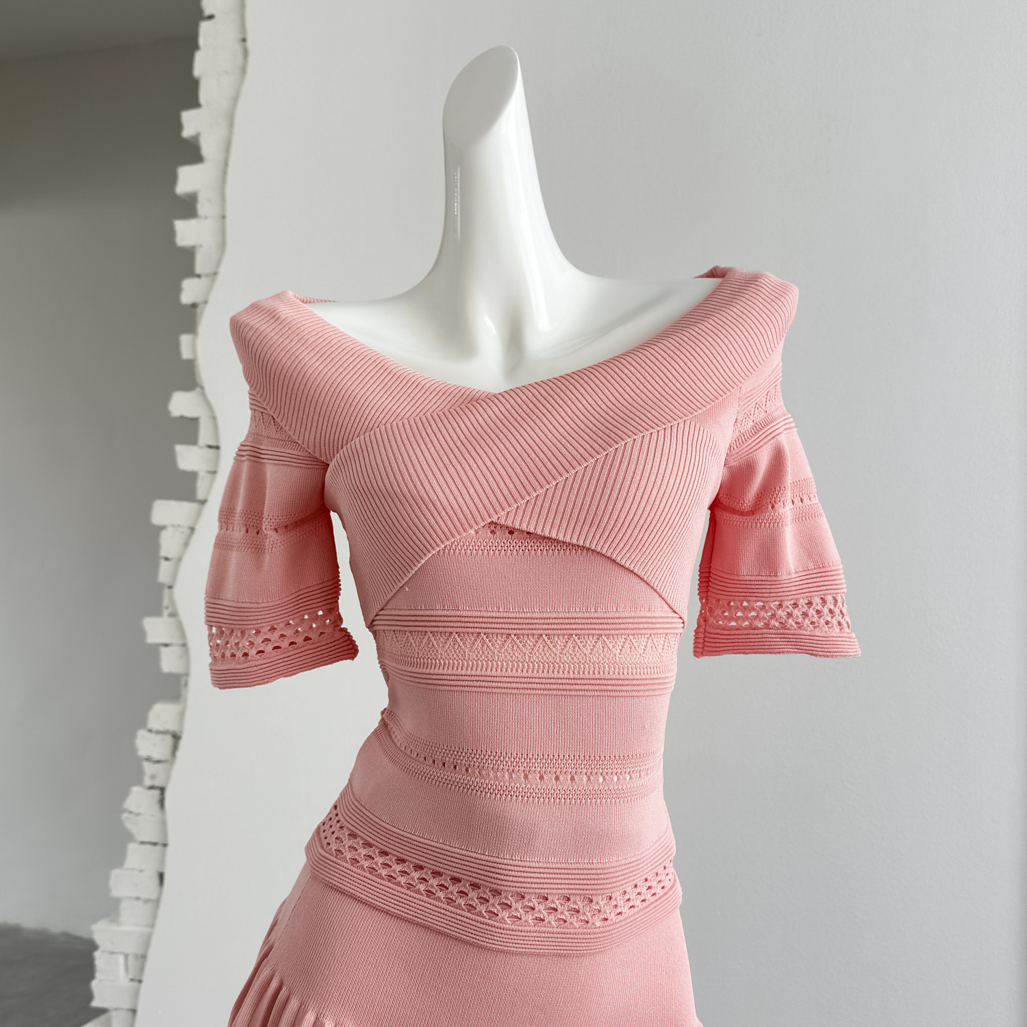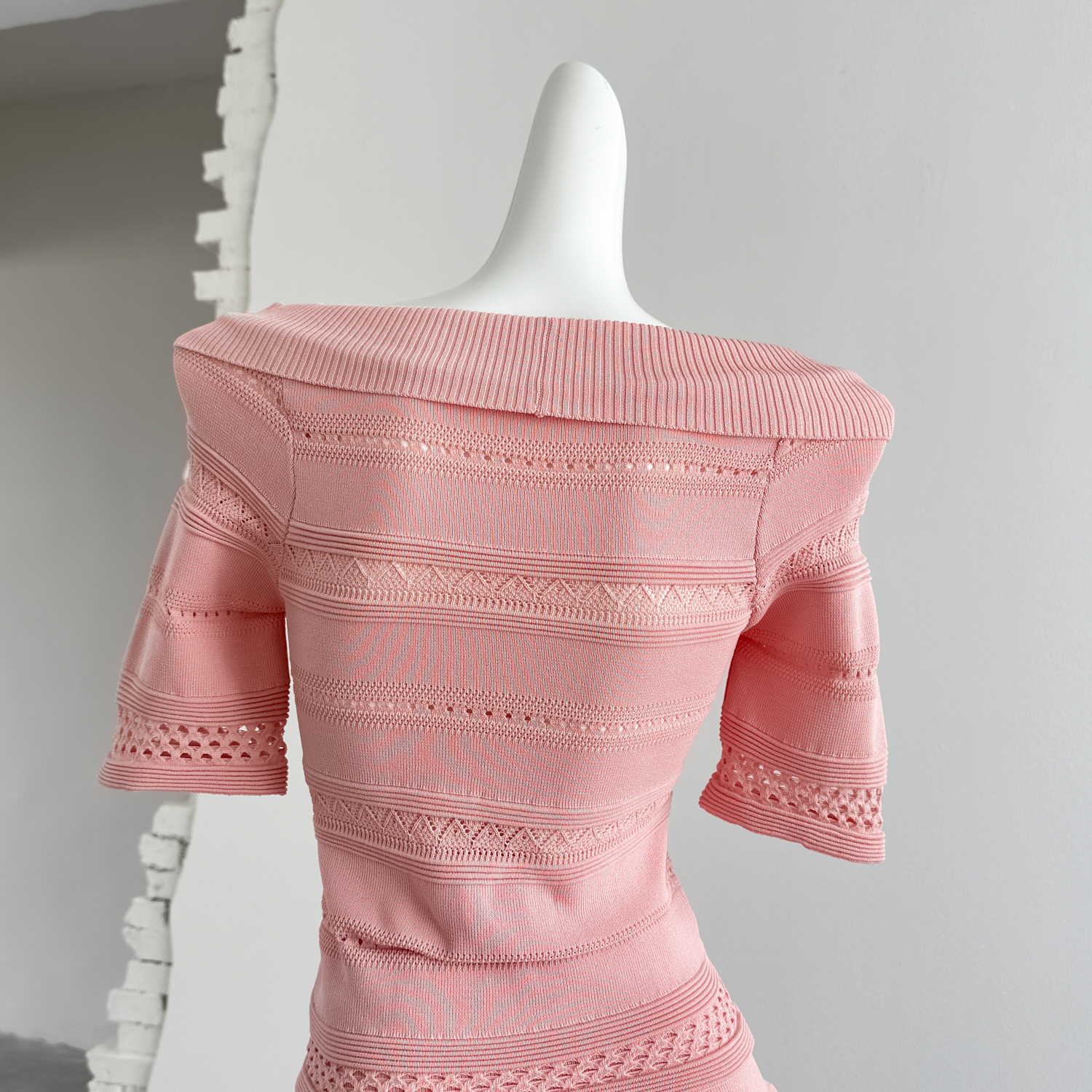 먼지 덩 덩 니트 행침 목 여성 드레스 2026 봄 새로운 섹시함 홀로우 아웃 타이트 스커트 허리 수축 치마