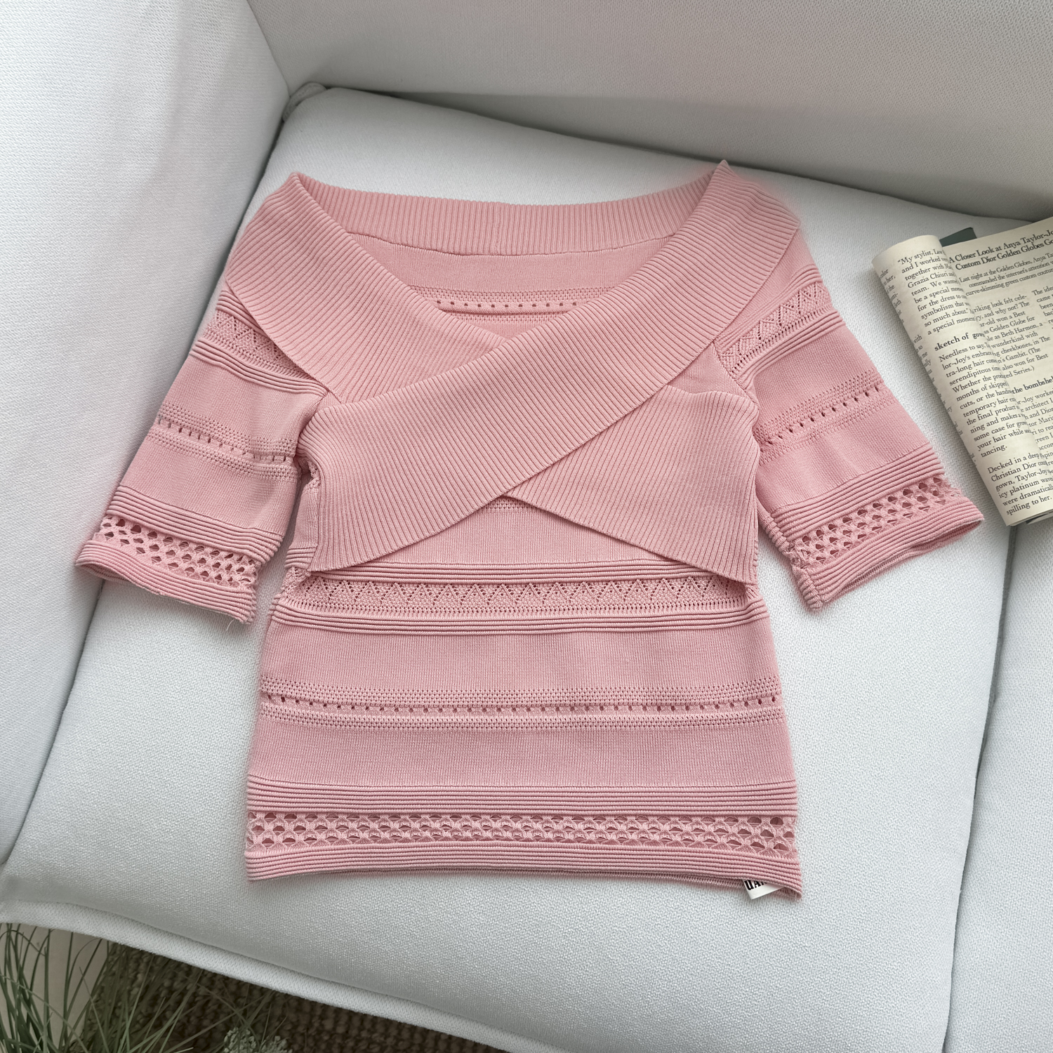 jmshop 부드러운 보이는 순수한 욕망 섹시함 V넥 주간 실크 아마 니트 티셔츠 여성 부드러운 찹쌀 다용도 슬림해 보이는 맨위