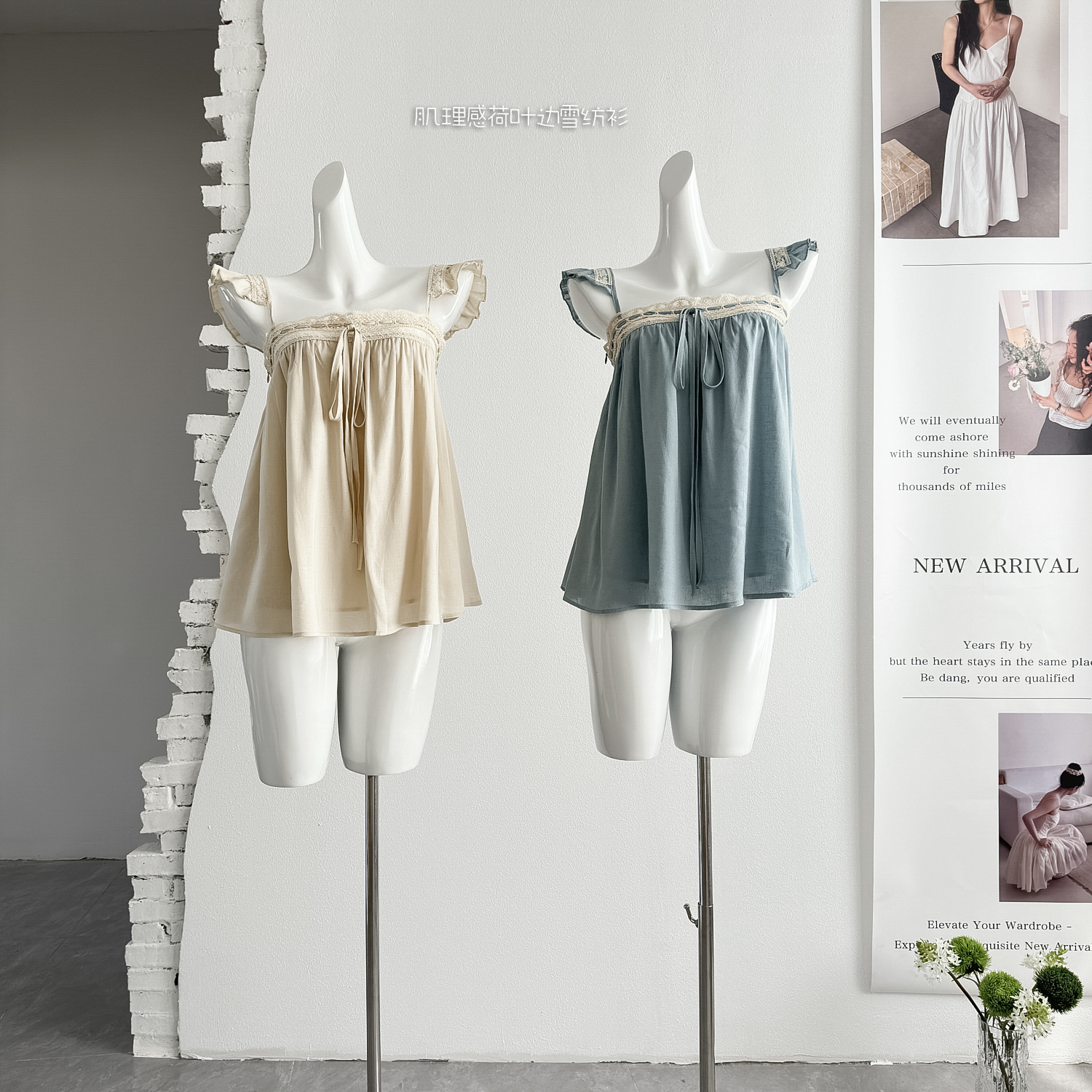 wuuus 향나무 믹스 재스민 ~ 중 바람 100 라미 작은 날다 소매 레이스 배색 캐미솔