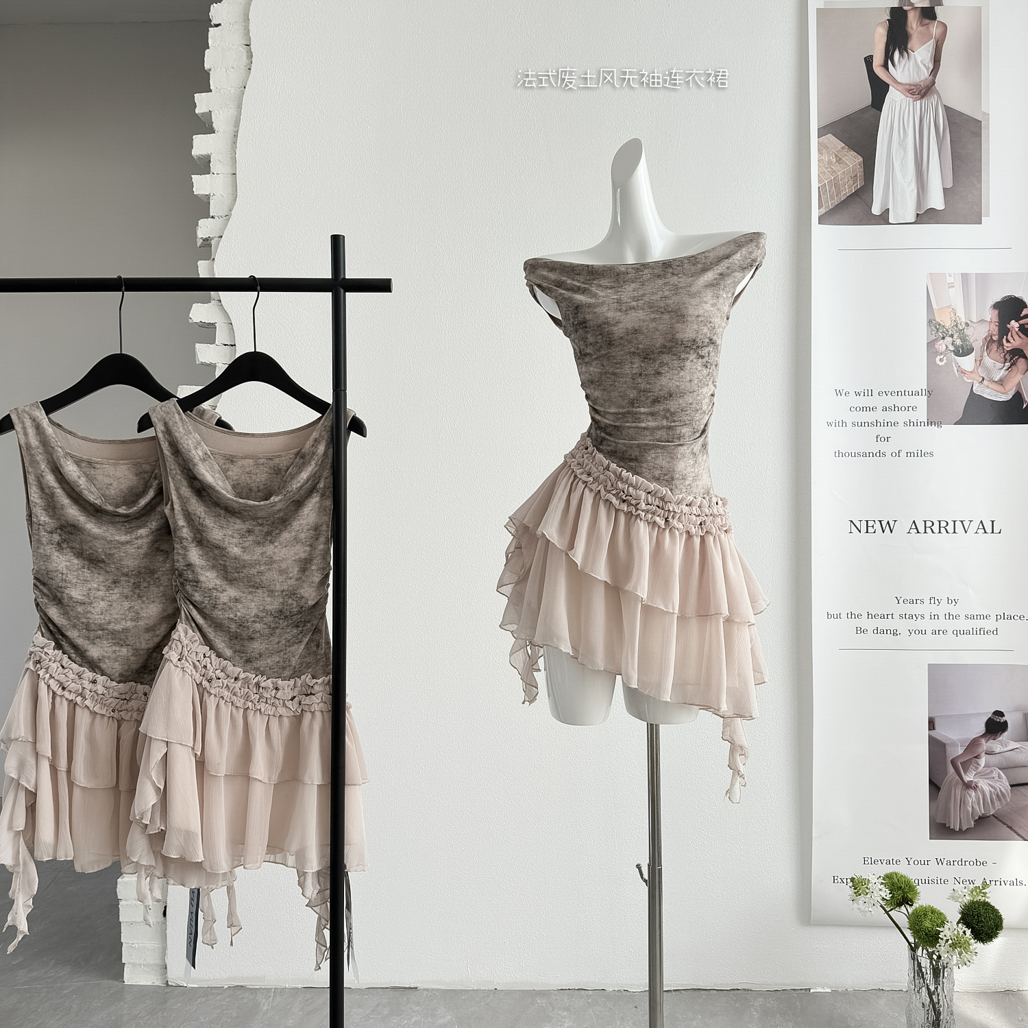 huohuo 안개 염색 리플 달콤하지만 끈적 거리지 않음 2026 봄 여름 새로운 여성 불규칙 리본 몸매 가꾸기 드레스